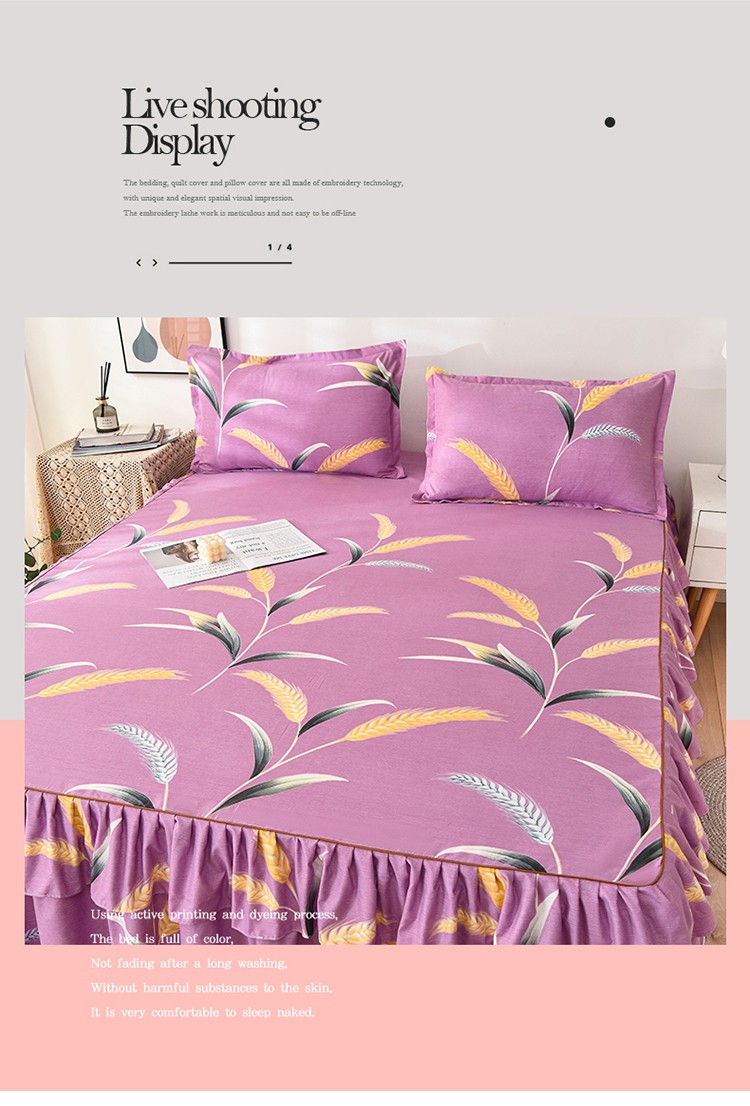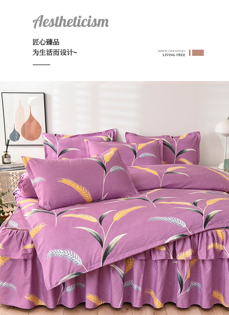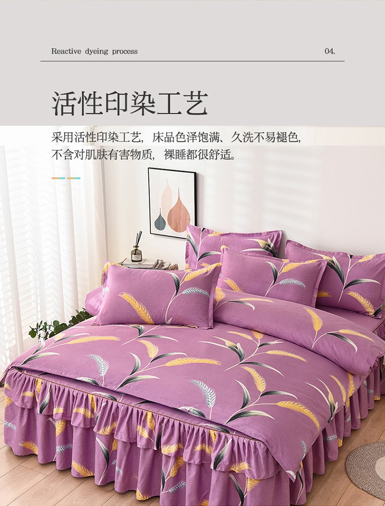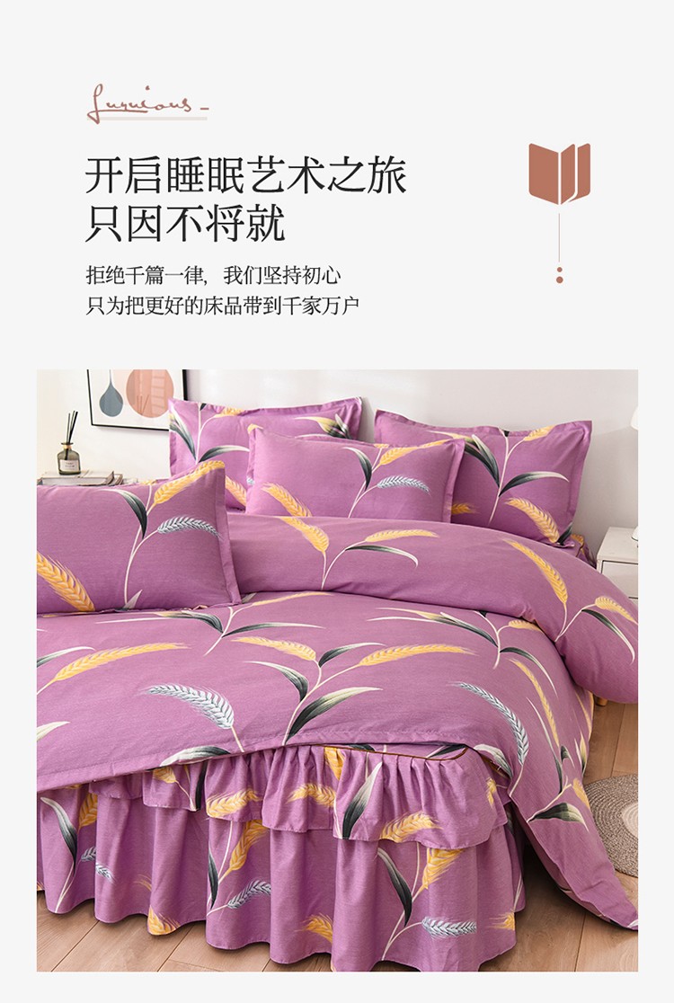 代芙 2022新款加厚磨毛双边床裙四件套 麦穗
