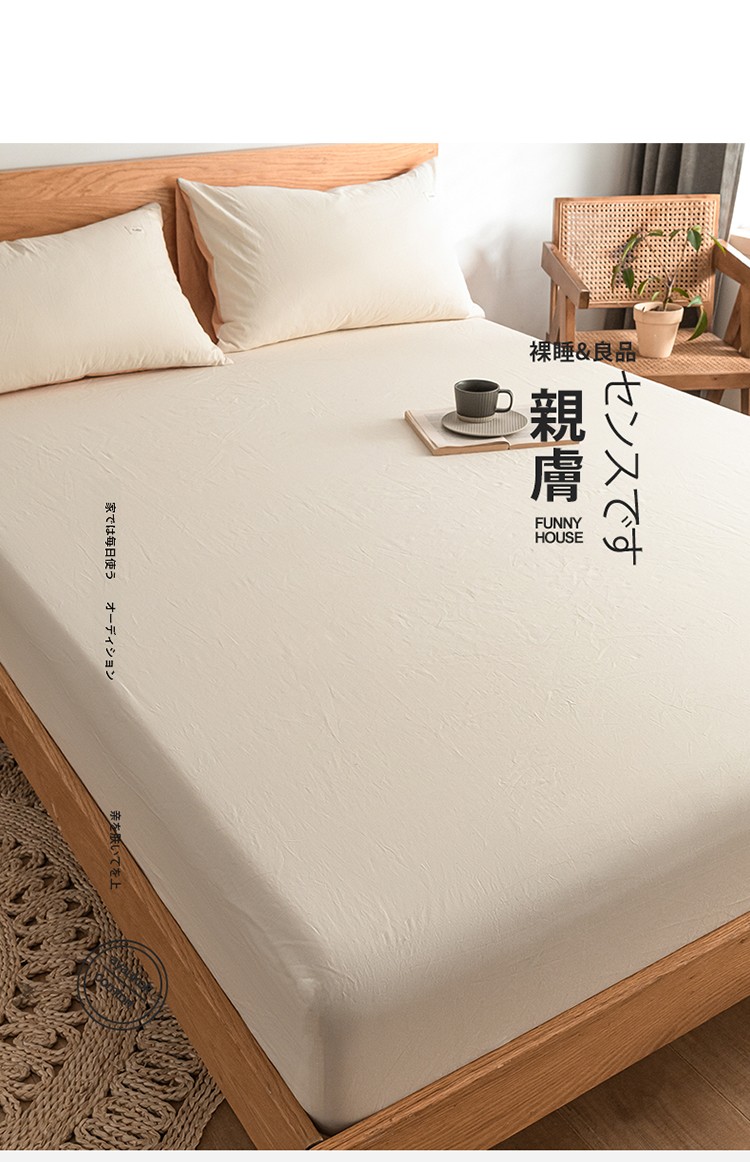 蓝巢 2022新款全棉色织水洗棉单床笠 奶白