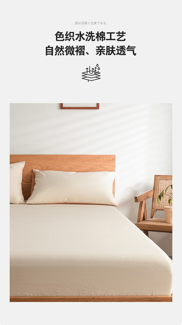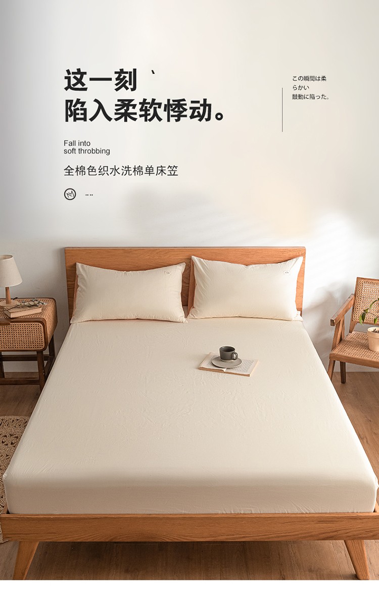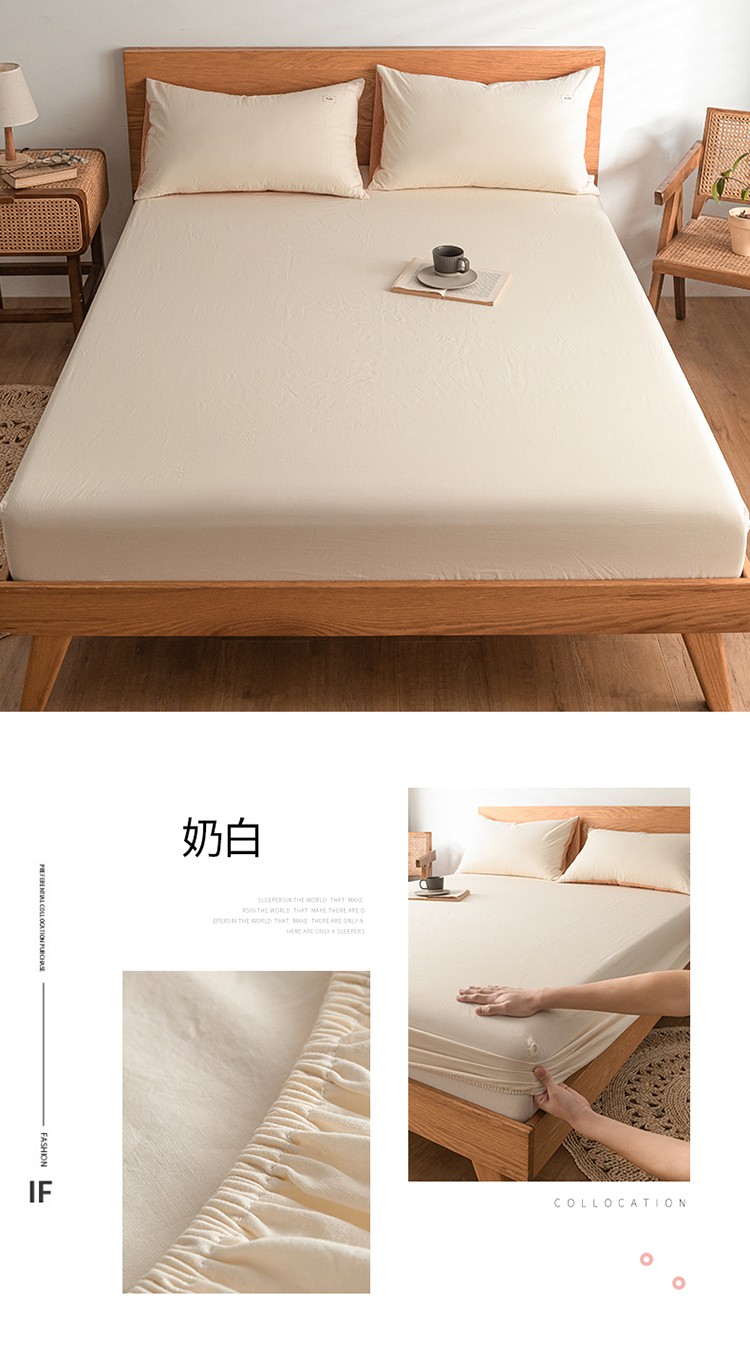 • 91家纺网 家纺一手货源 找家纺 蓝巢 2022新款全棉色织水洗棉单床笠 奶白