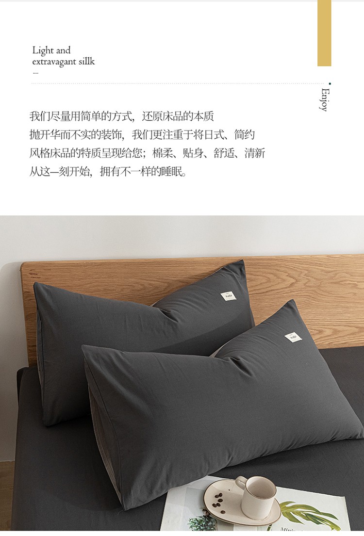 蓝巢家纺 2022新款全棉色织水洗棉单枕套 深灰浅灰