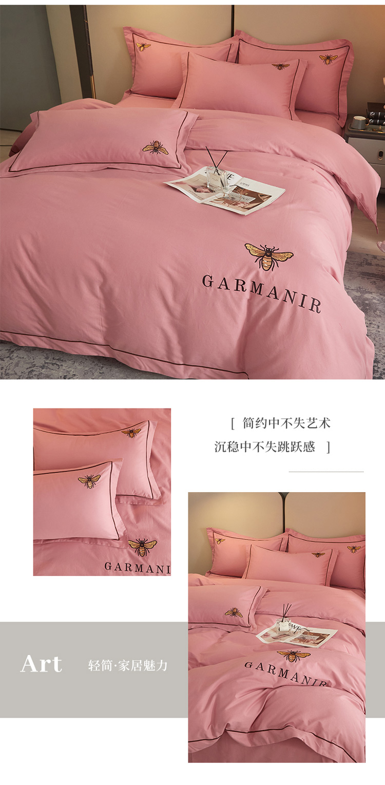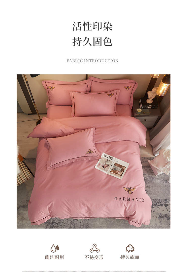(总)启航家居 2025直播爆款全棉纯色磨毛刺绣四件套古欧时尚系列,古欧时尚宾利蓝,古欧时尚豆沙,古欧时尚浅橙,古欧时尚优雅紫,古欧时尚珍珠白