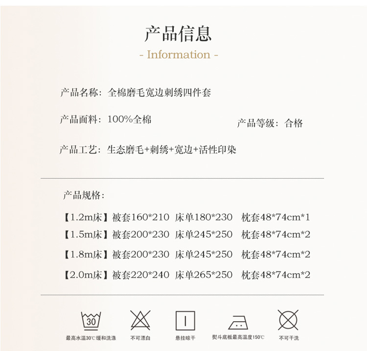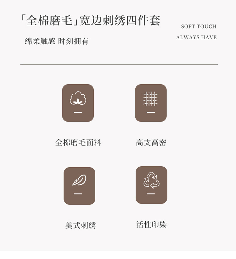 商品名称:启航家居2025新款全棉磨毛宽边刺绣四件套英伦潮派系列 英伦潮派-豆沙