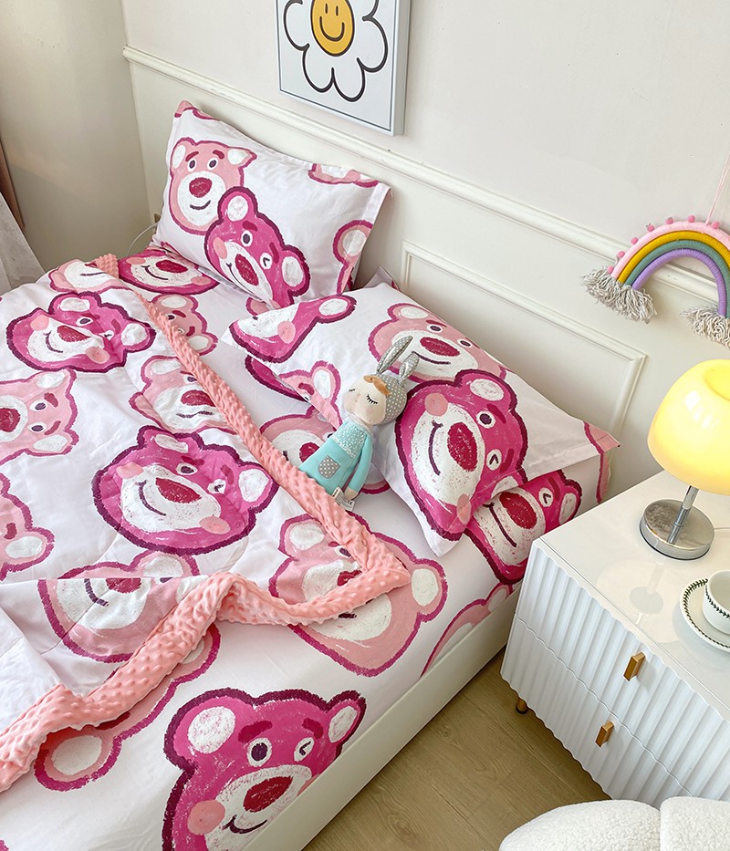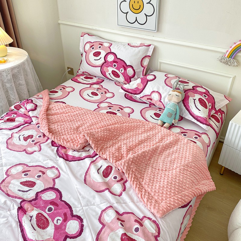 一米阳光 2022新款迪士尼豆豆绒夏被四件套 草莓熊
