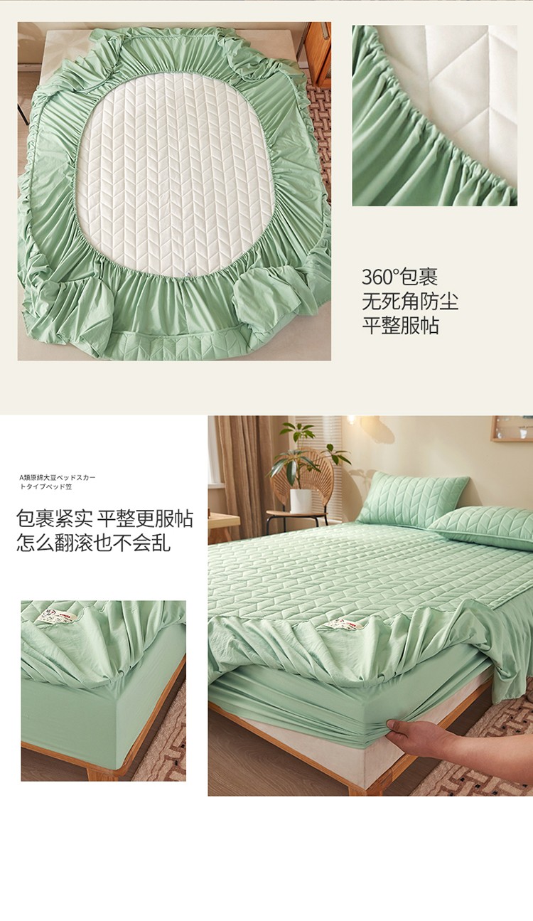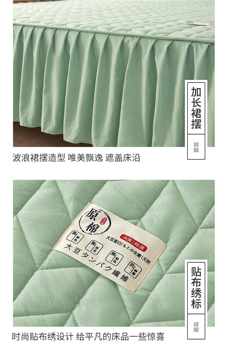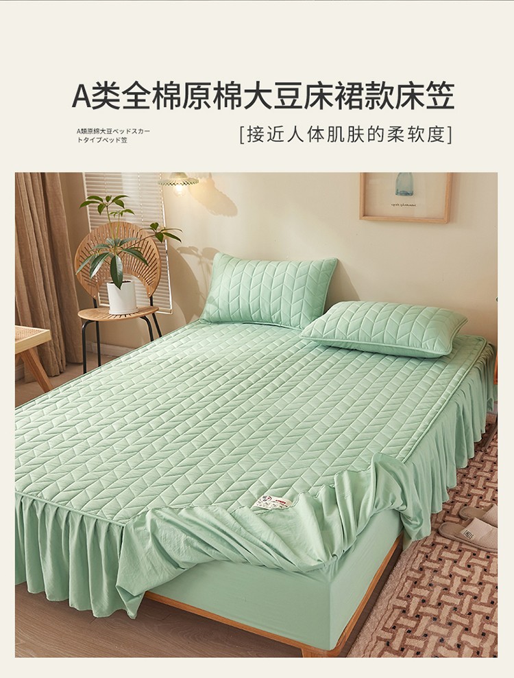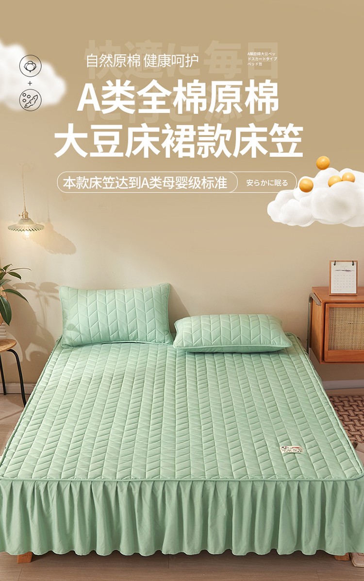 2022新款A类原棉大豆夹棉床裙款床笠全棉原棉床笠小麦格抹茶