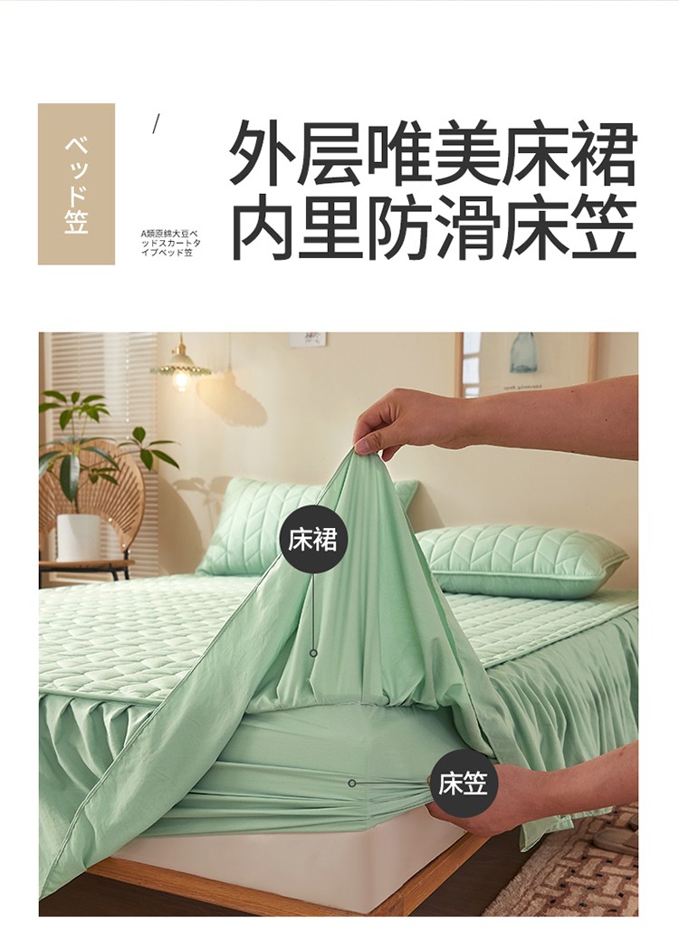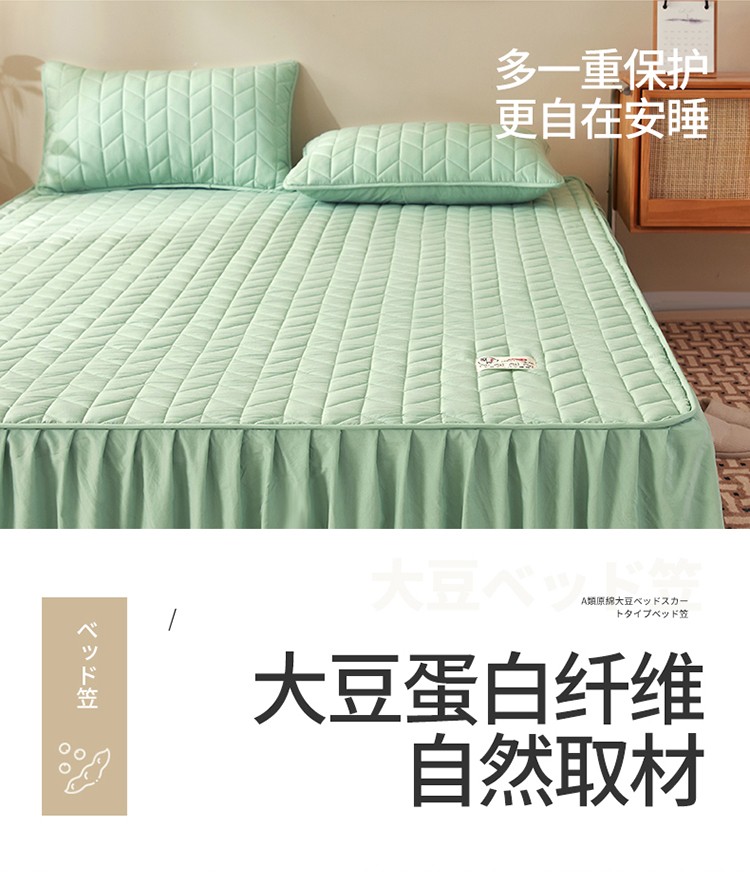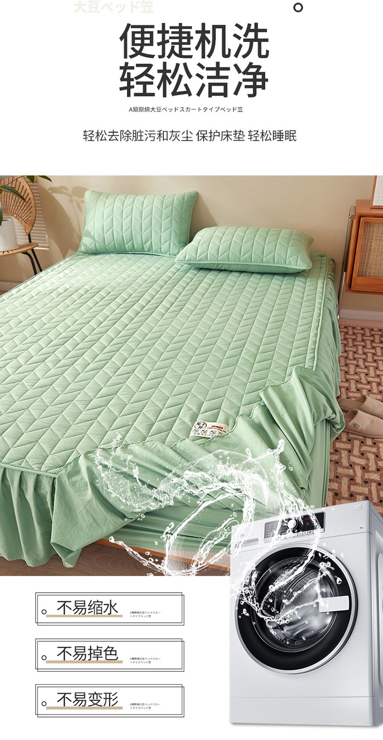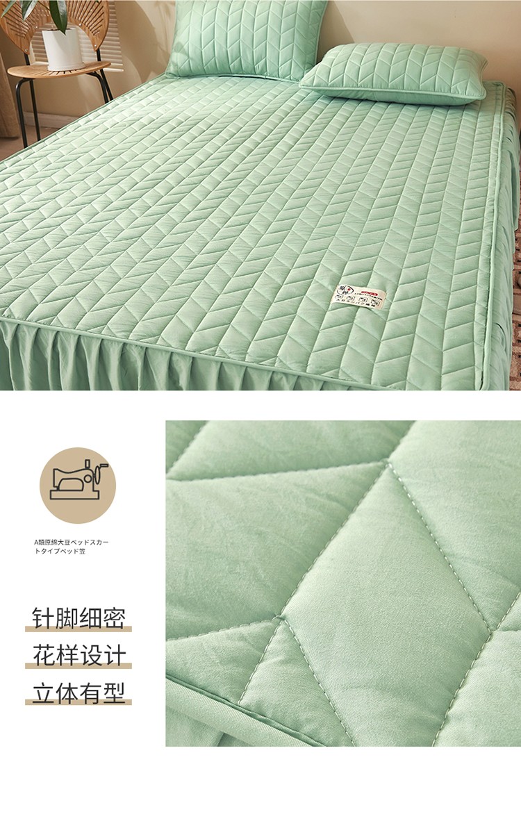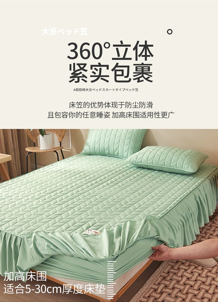 2022新款A类原棉大豆夹棉床裙款床笠全棉原棉床笠小麦格抹茶
