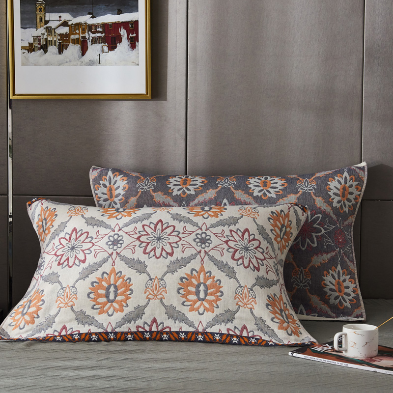 当前位置: 91家纺网 > 商品网购 > 床上用品 > 枕巾 > 朴尔 2022年新款波西米亚风全棉四层纱布枕巾一对装 连理枝黄