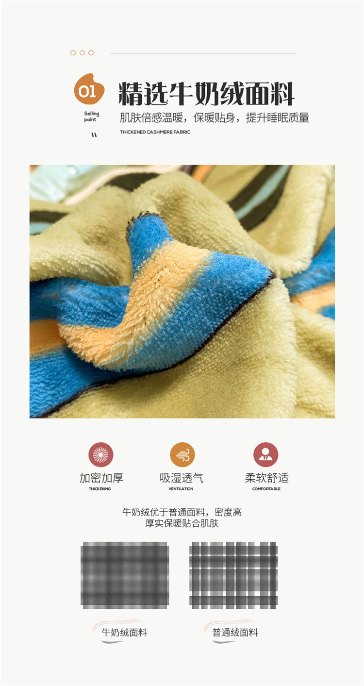 商品名称:桃子家居 2022新款ins轻奢简约北欧加厚牛奶绒系列四件套 多彩竖条