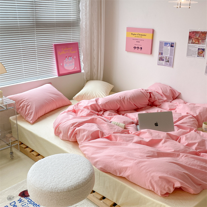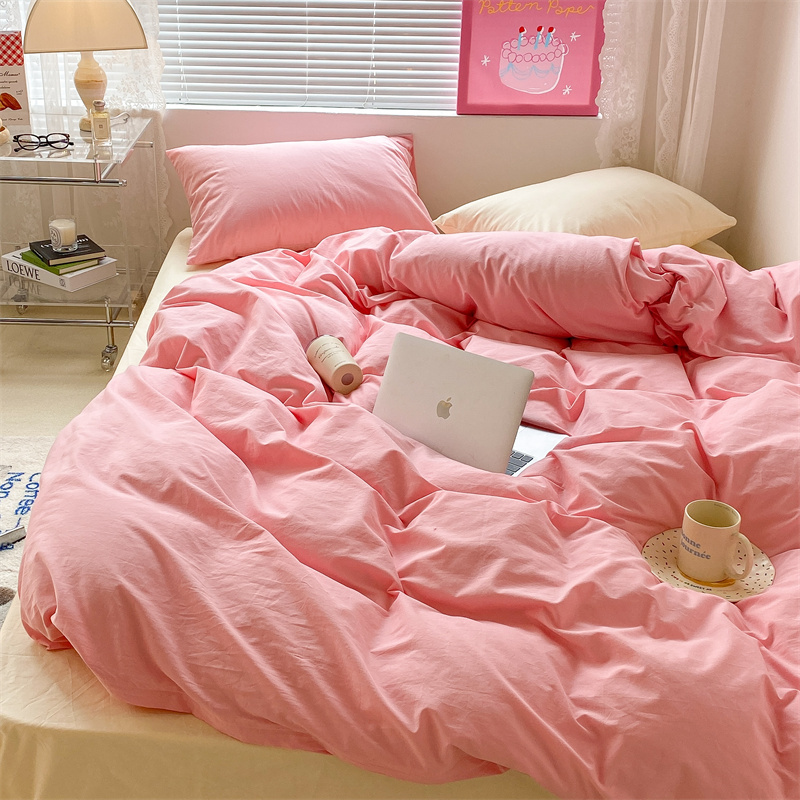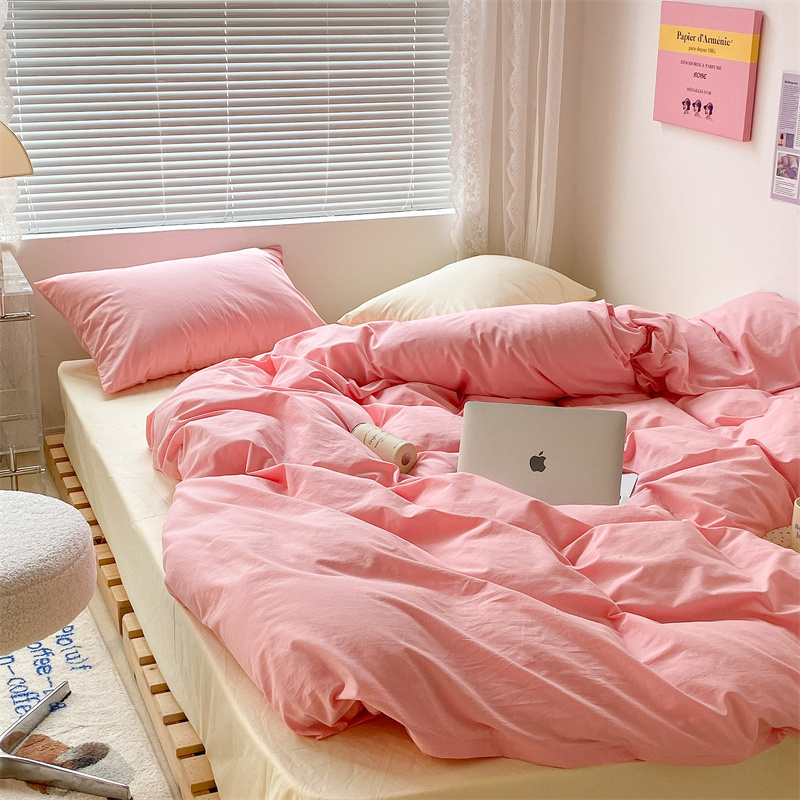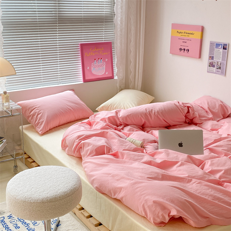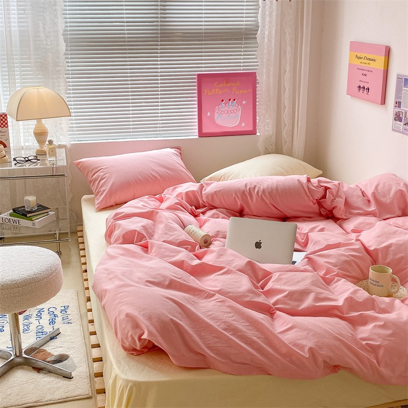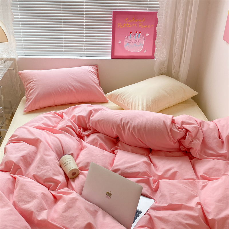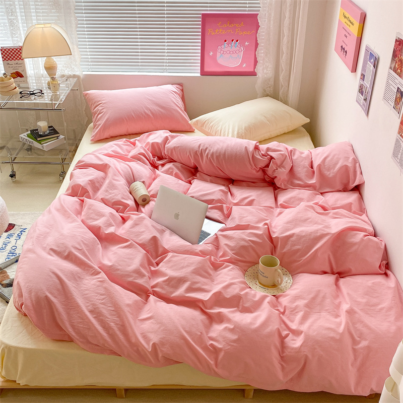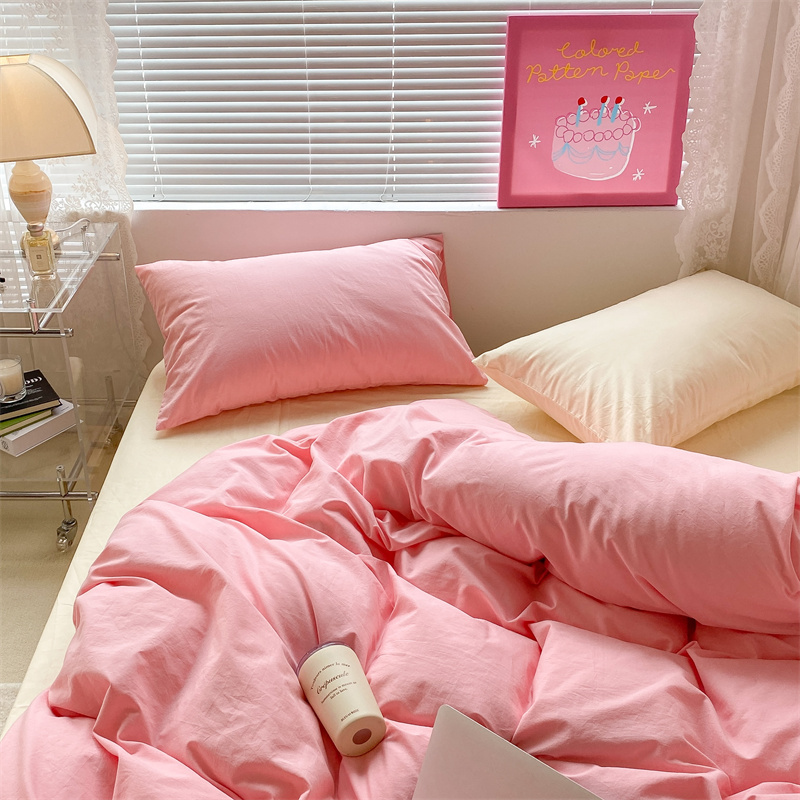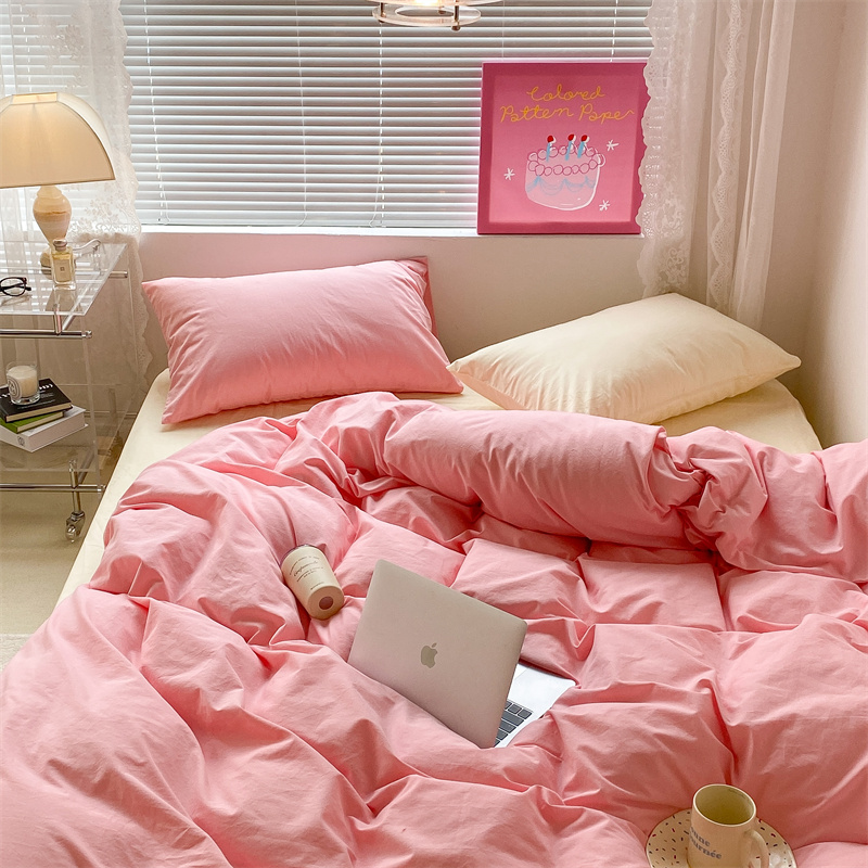 昔可 2022新款40支13372全棉水洗棉混搭四件套 莓莓粉拼奶黄