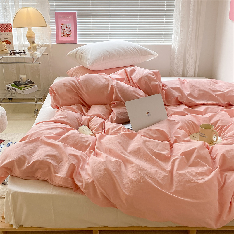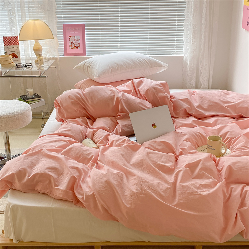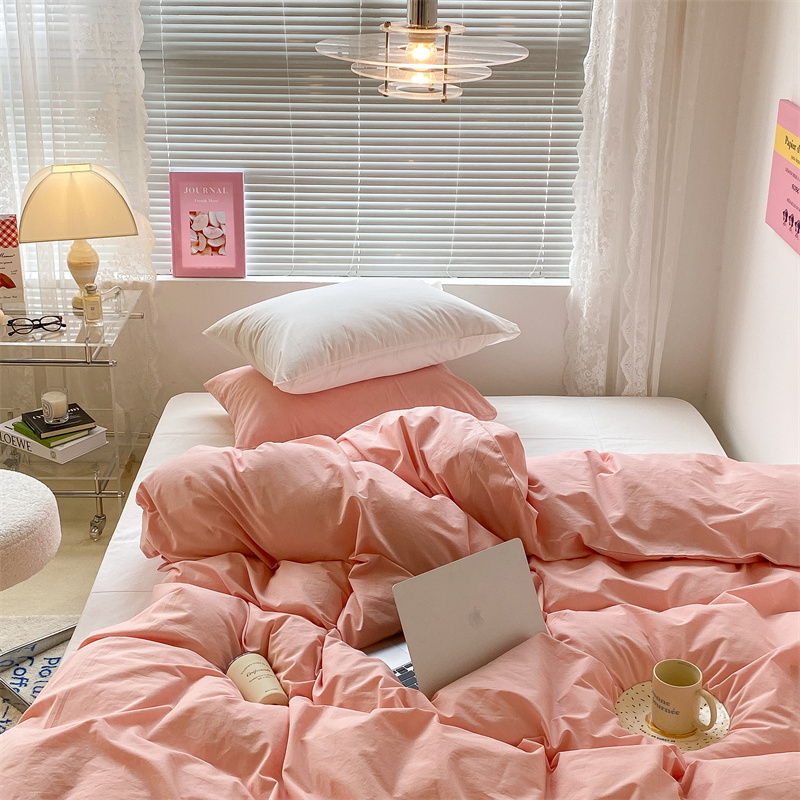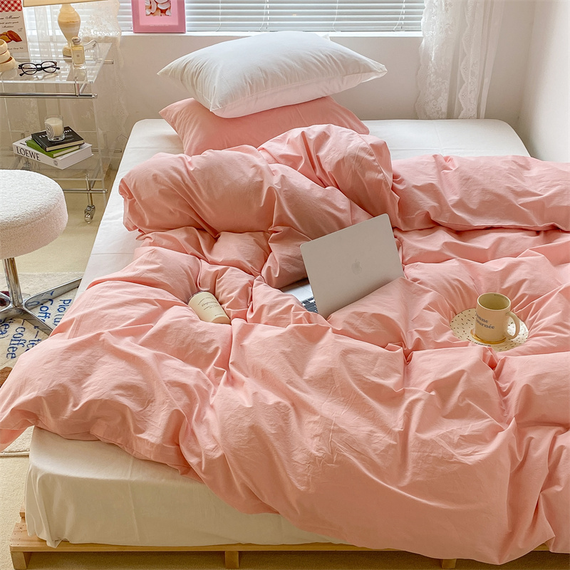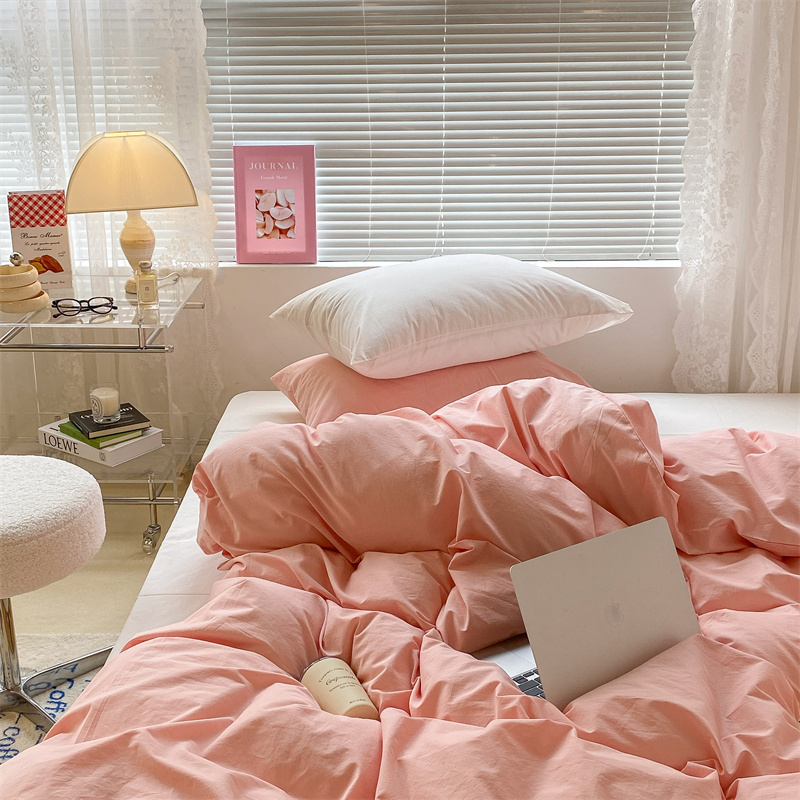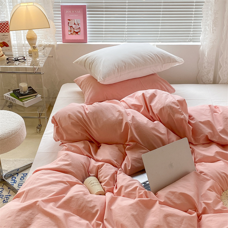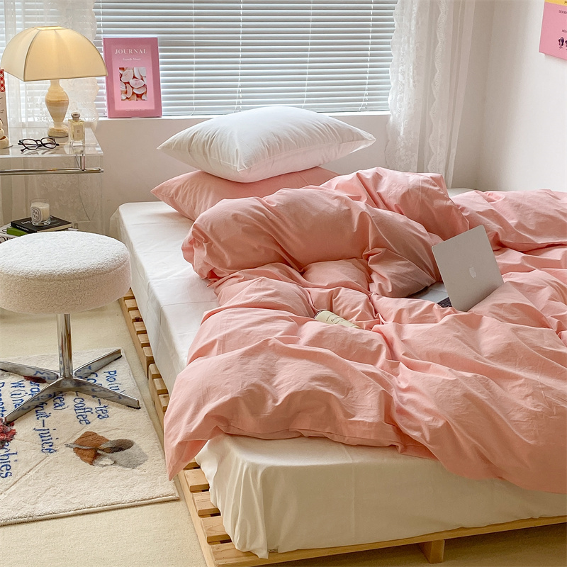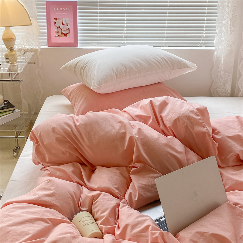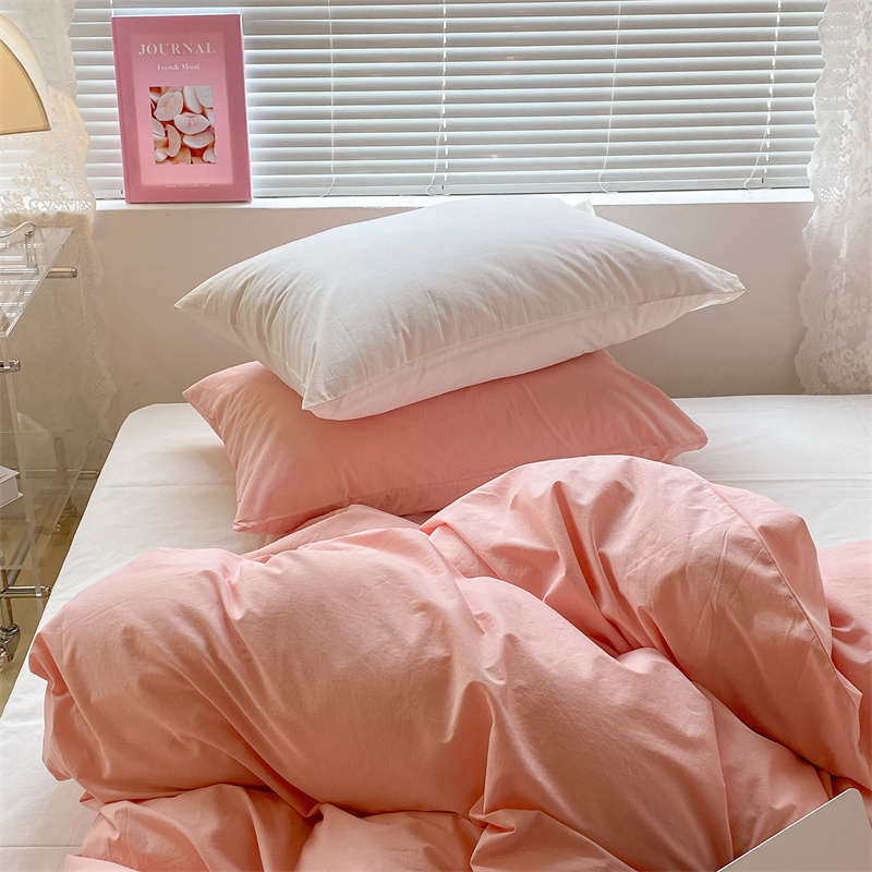 昔可 2022新款40支13372全棉水洗棉混搭四件套 璎落粉拼白
