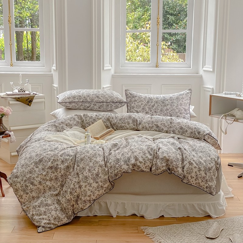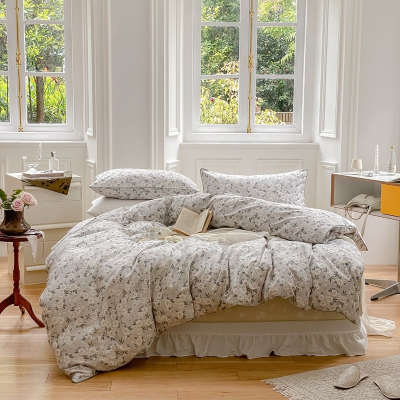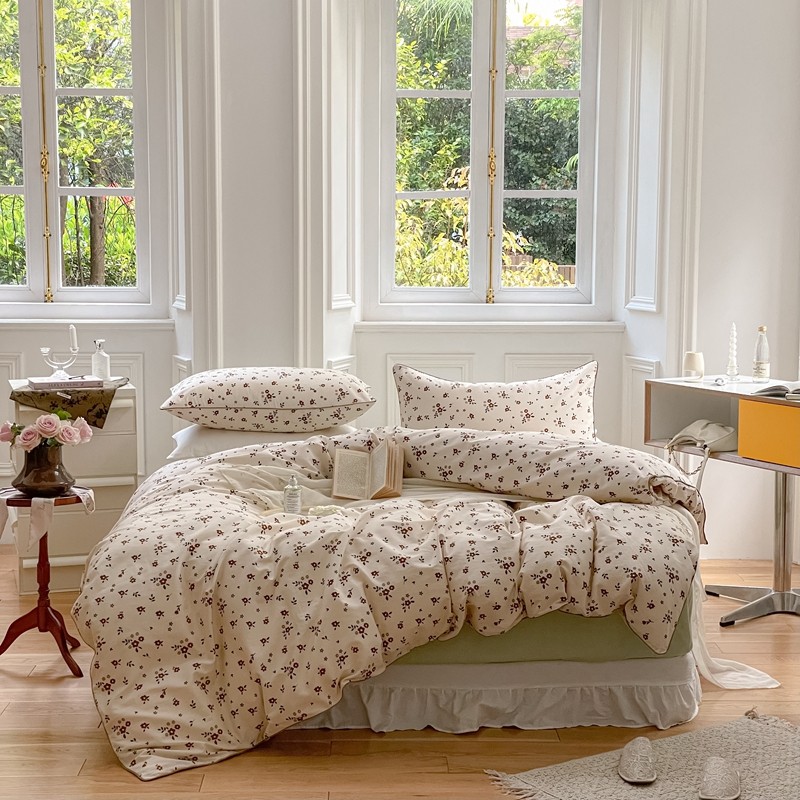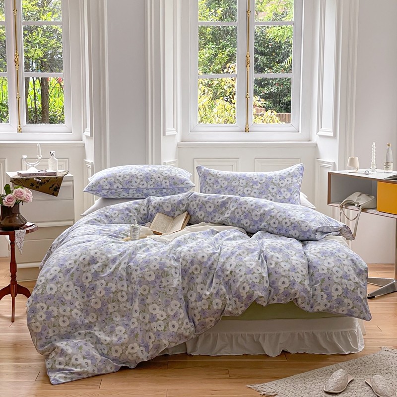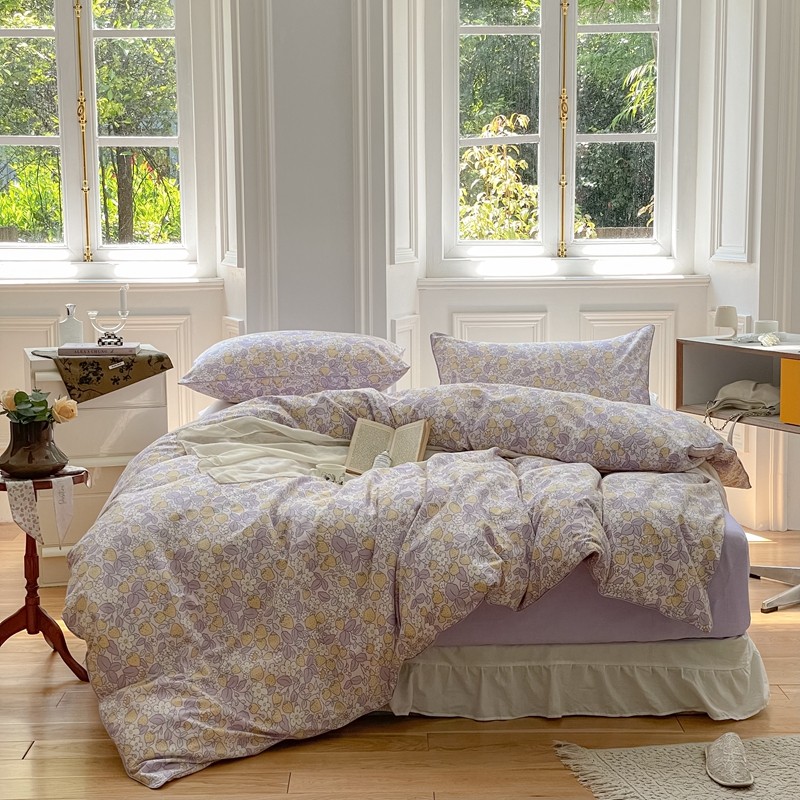 (总)昔可家纺 2023新款全棉小花系列四件套,柏林少女,小小的樱桃,紫色葡萄