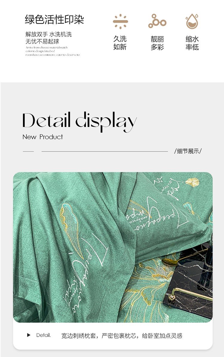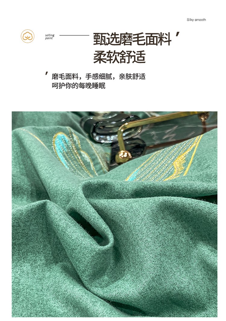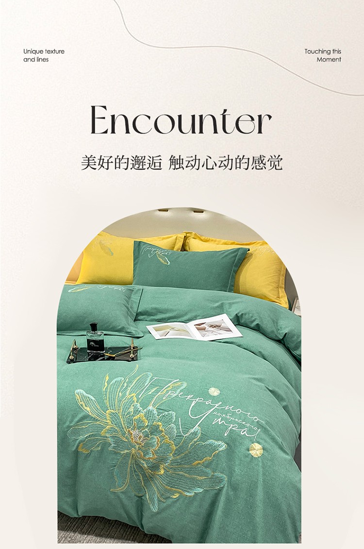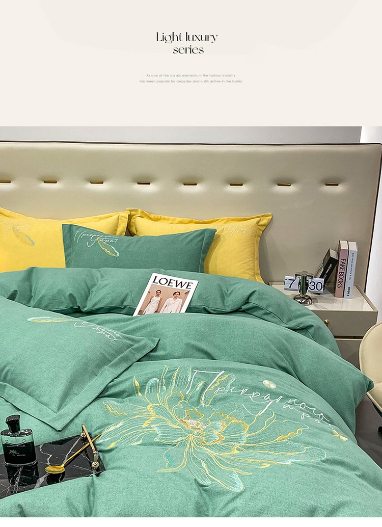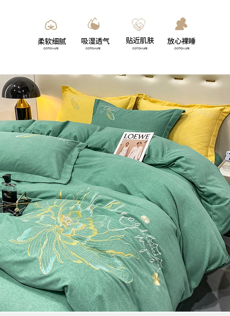 商品名称:涵宸 2022新款全棉铂金磨毛刺绣四件套-篱园系列 篱园-橄榄绿