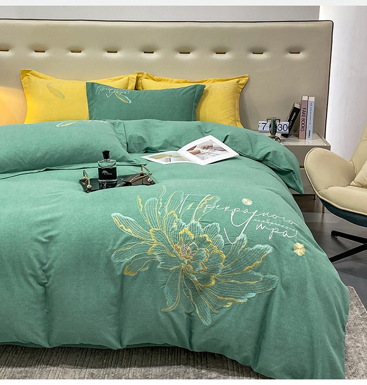 涵宸 2022新款全棉铂金磨毛刺绣四件套-篱园系列 篱园-橄榄绿