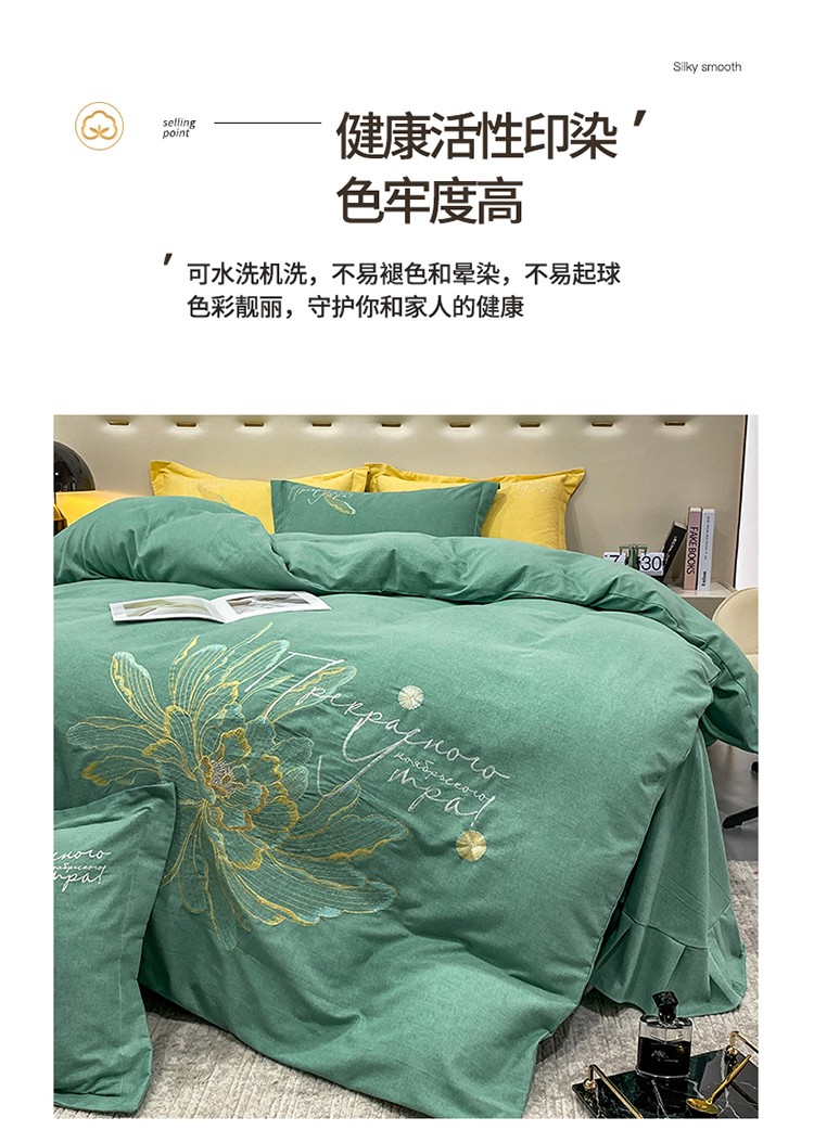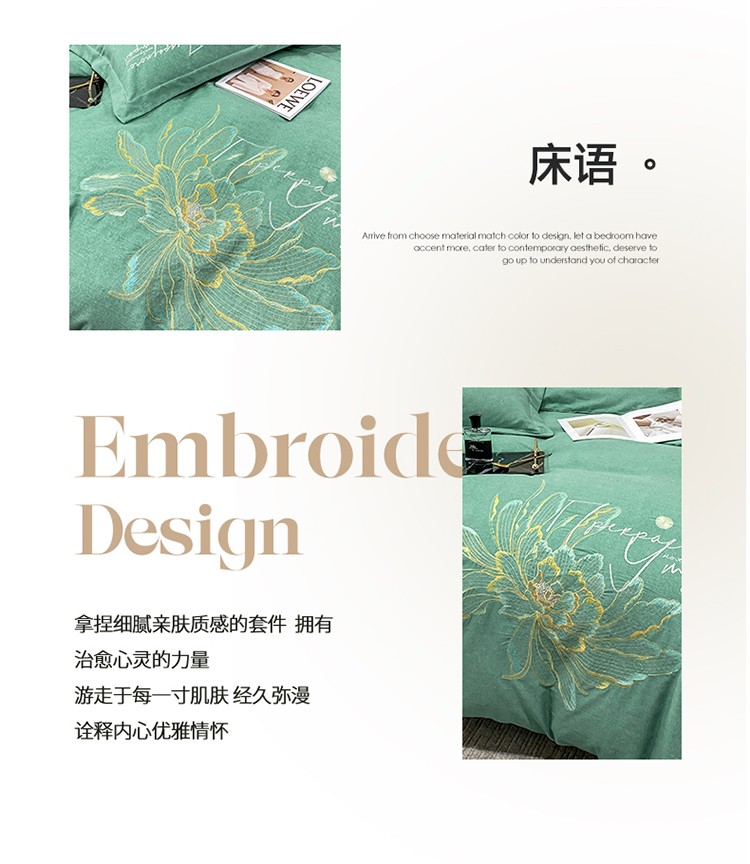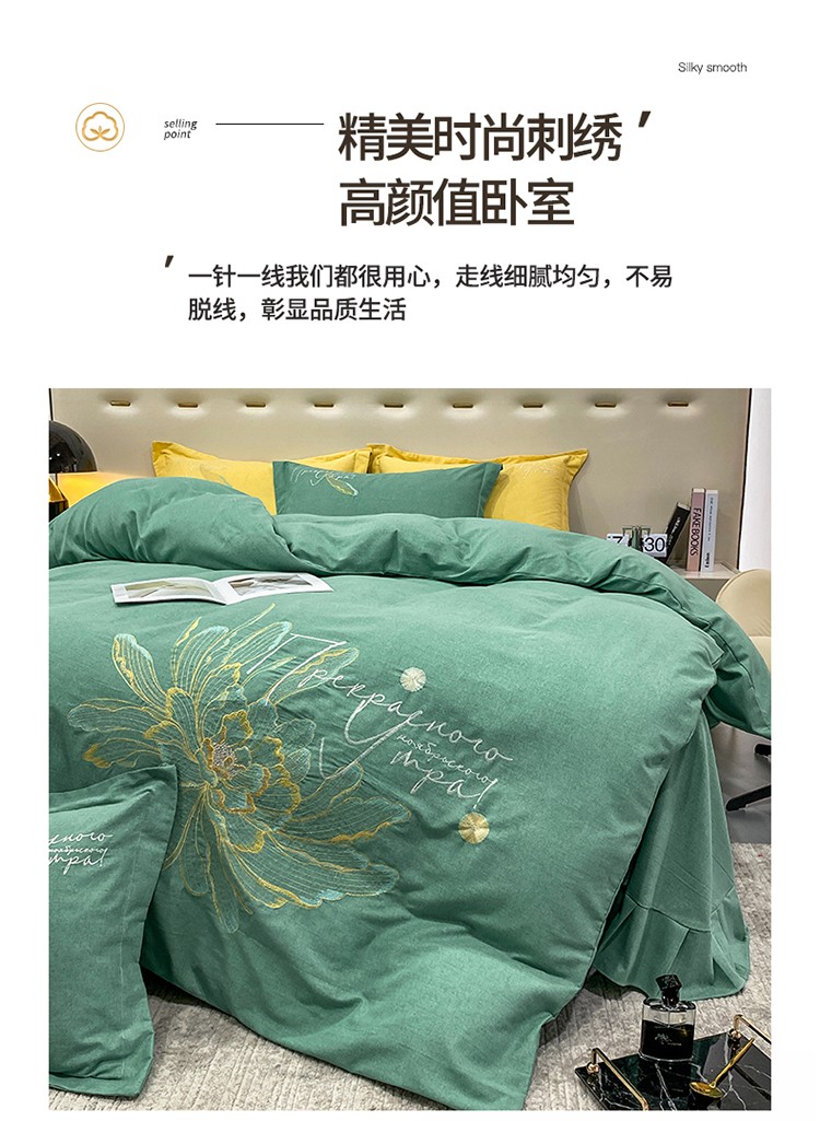 (总)涵宸家纺 2025新款全棉磨毛刺绣四件套系列-普莉,普莉-粉,普莉-绿,普莉-奶白