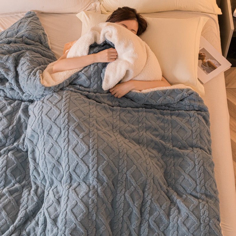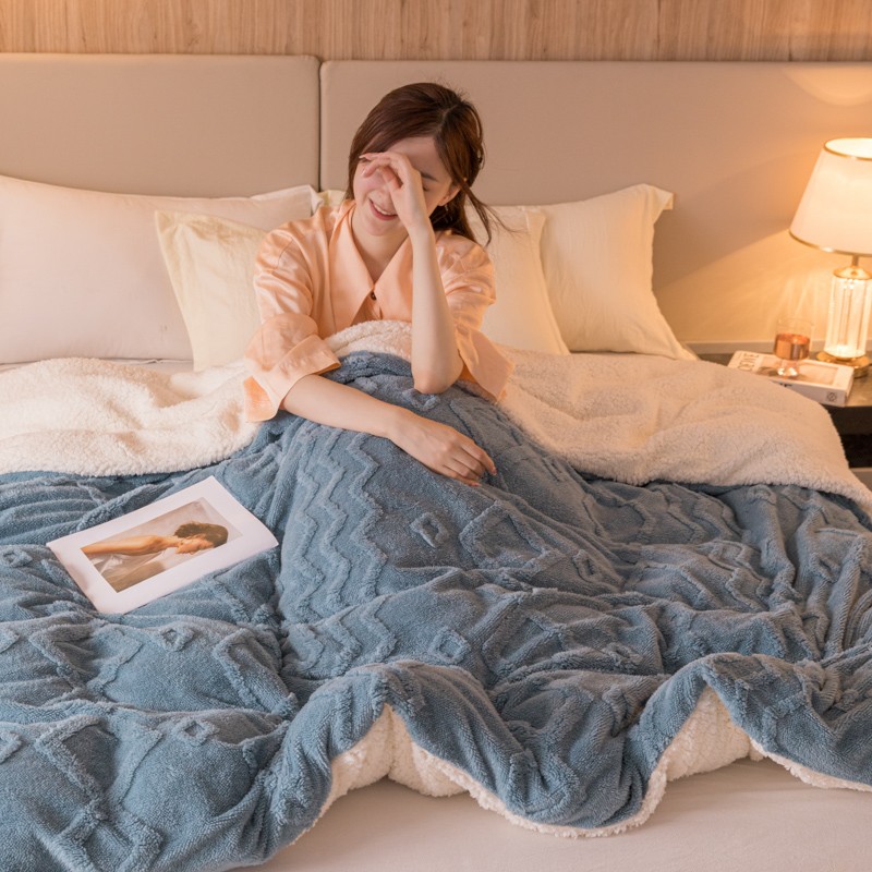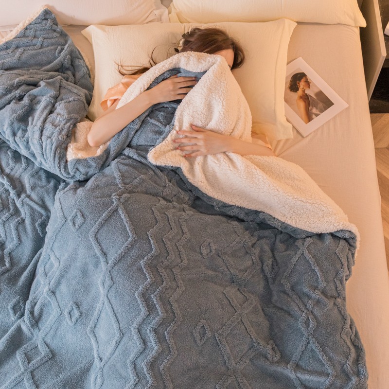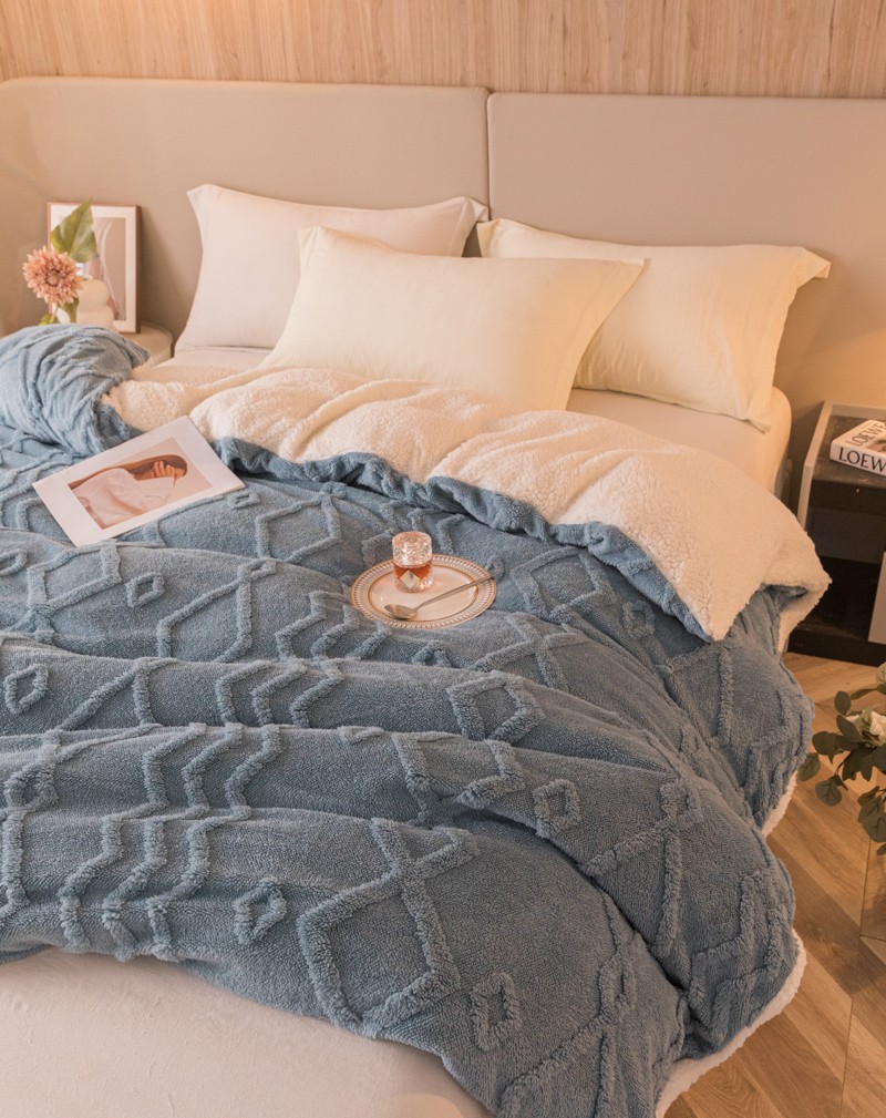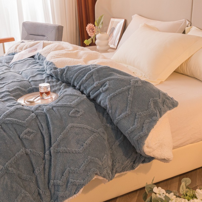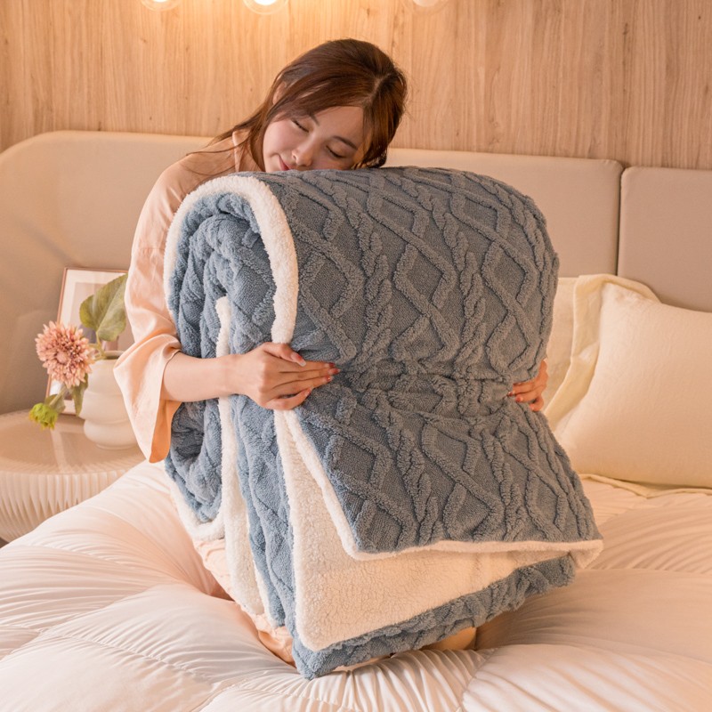 简爱-2025舒棉绒羊羔绒单被套多功能毯 纹路菱形格-暮色蓝