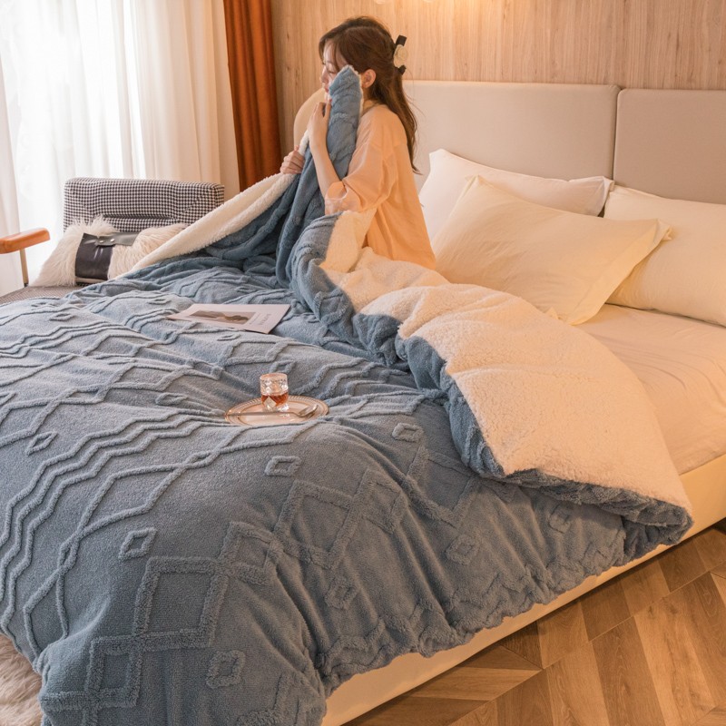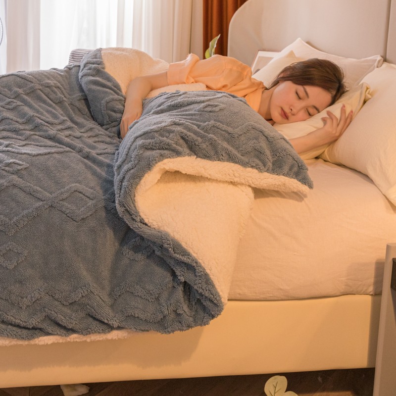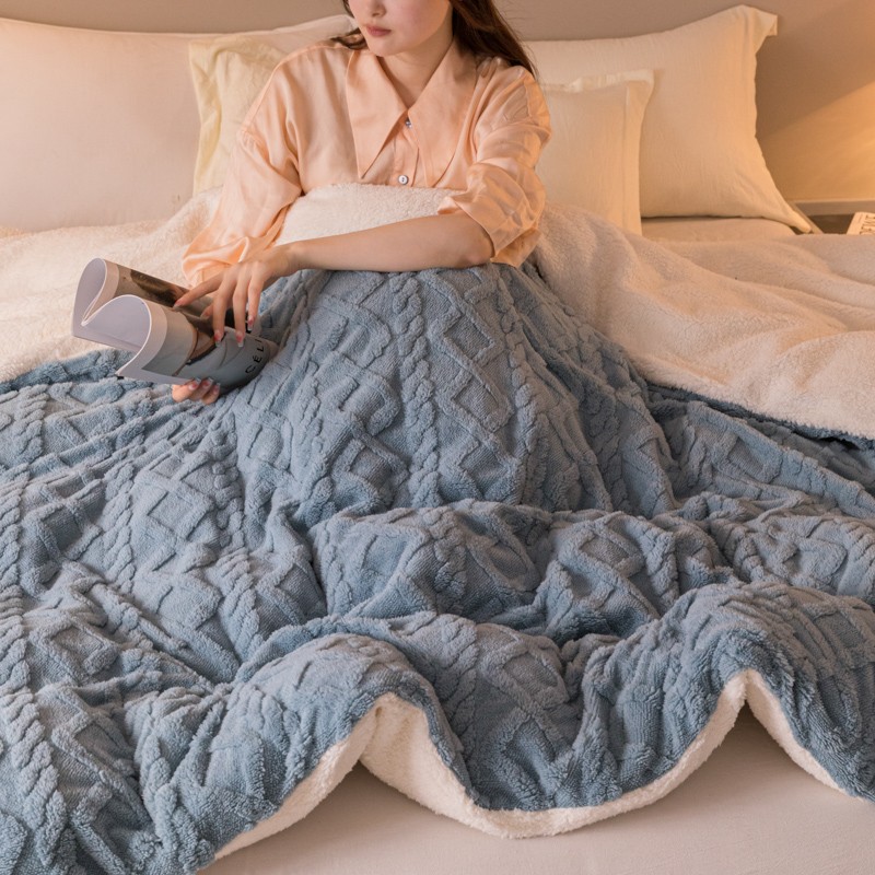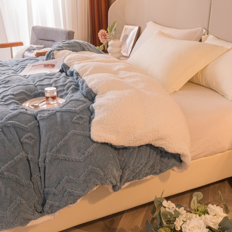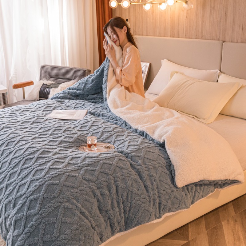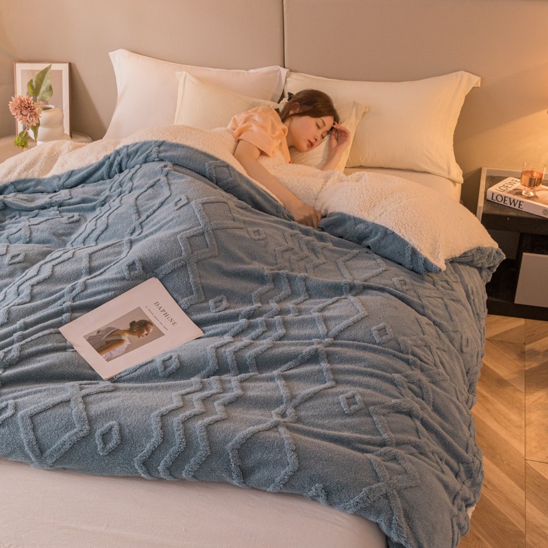 简爱-2025舒棉绒羊羔绒单被套多功能毯 纹路菱形格-暮色蓝