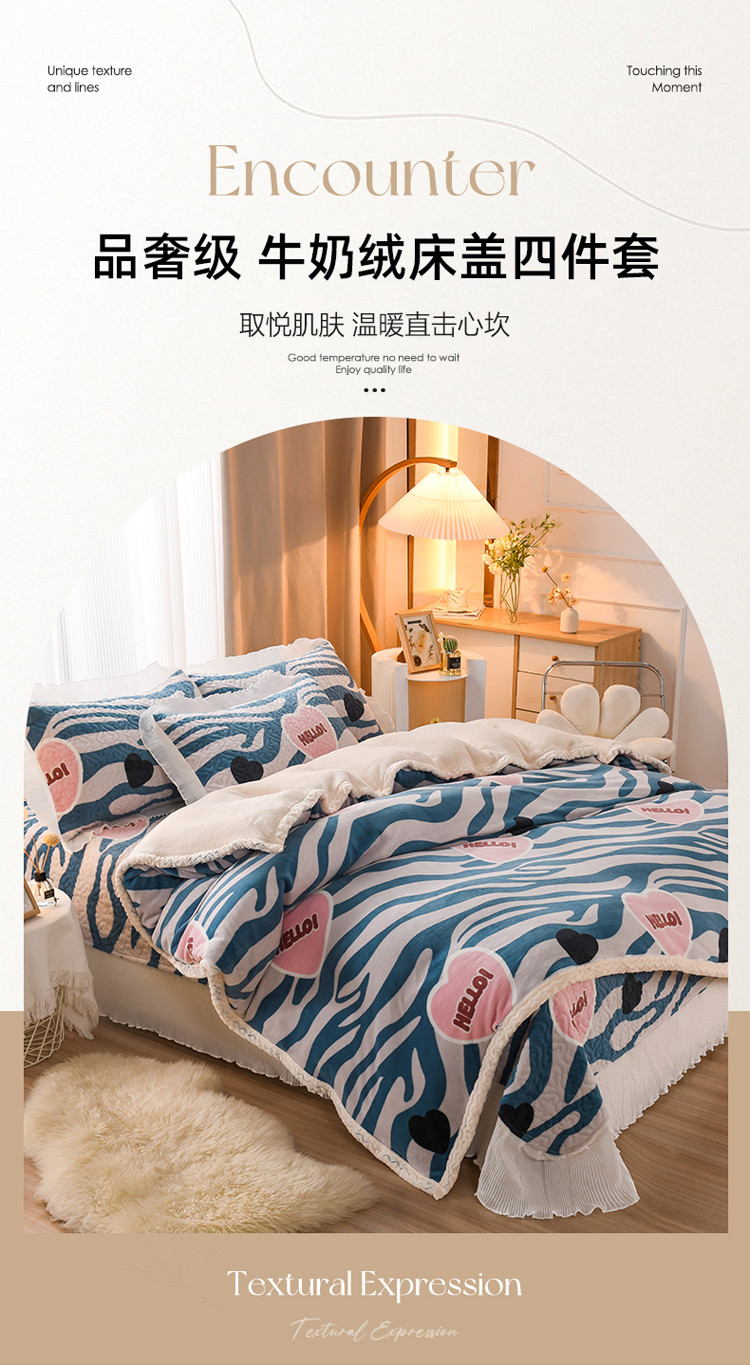 商品名称:迷仙巢 2022新款牛奶绒床盖款四件套 爱的憧憬