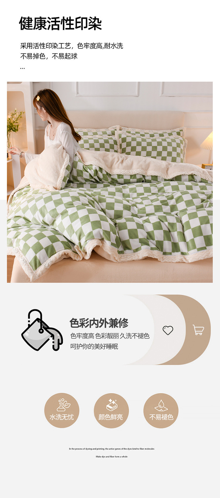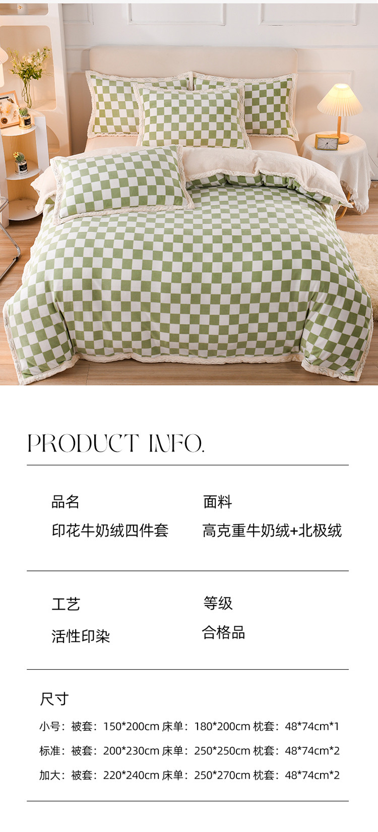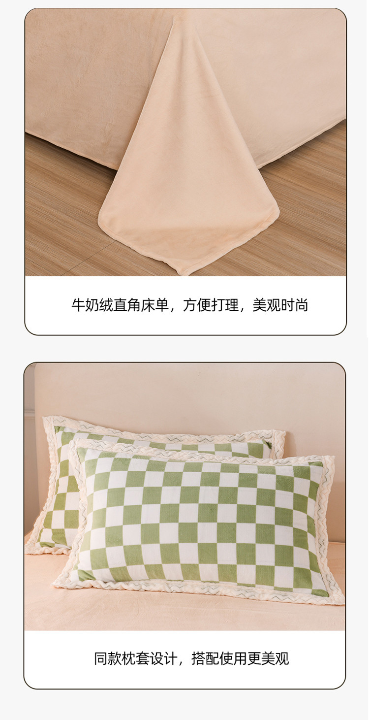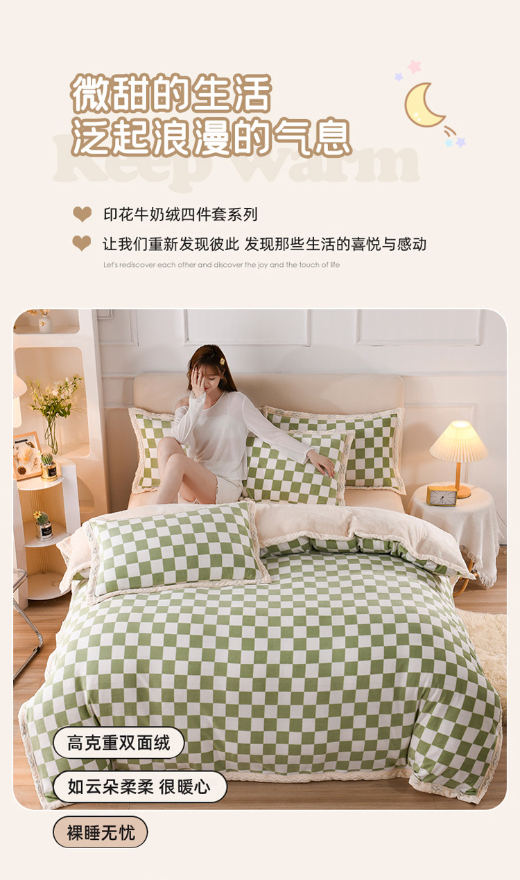 当前位置: 91家纺网 > 商品网购 > 床品套件 > 四件套 > 牛奶绒四件套 > 迷仙巢 2022新款牛奶绒拼北极绒贝贝绒包边四件套 绿白格
