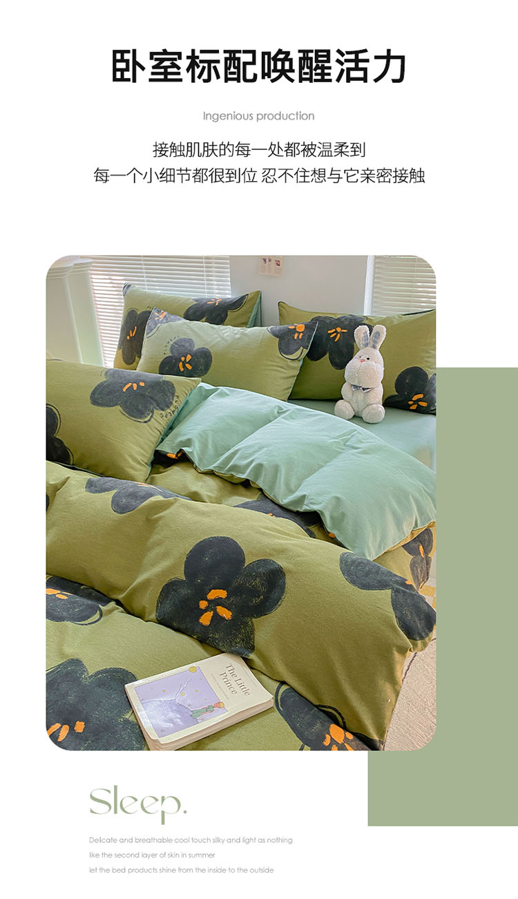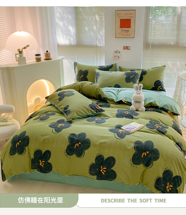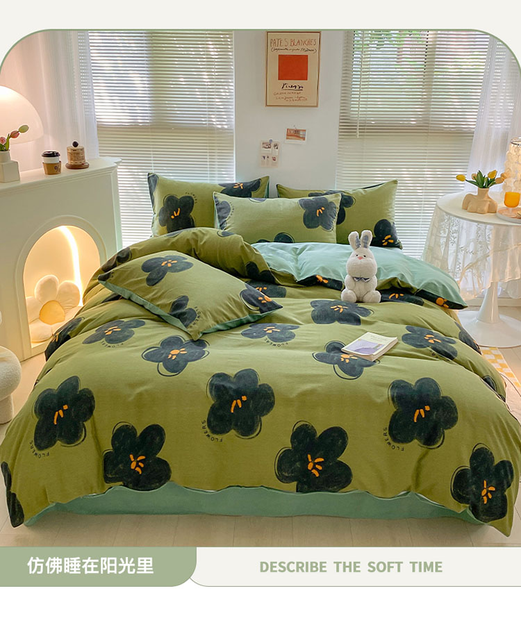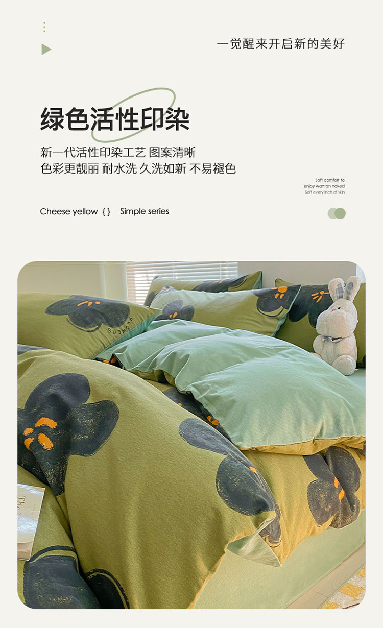 雅居纺 2022新款生态磨毛四件套 小雅绿