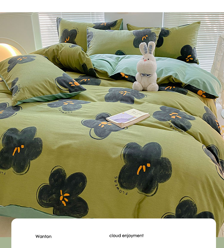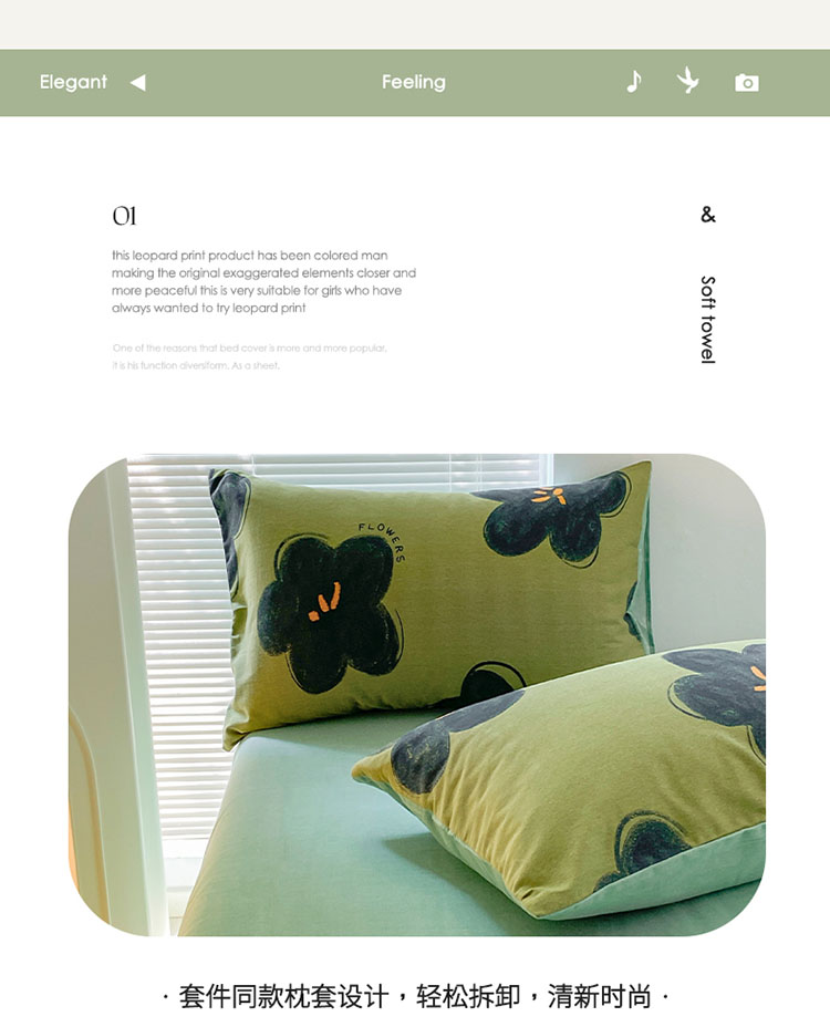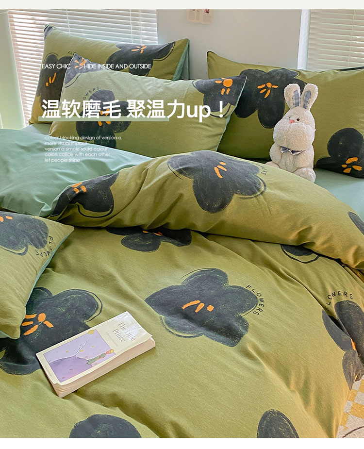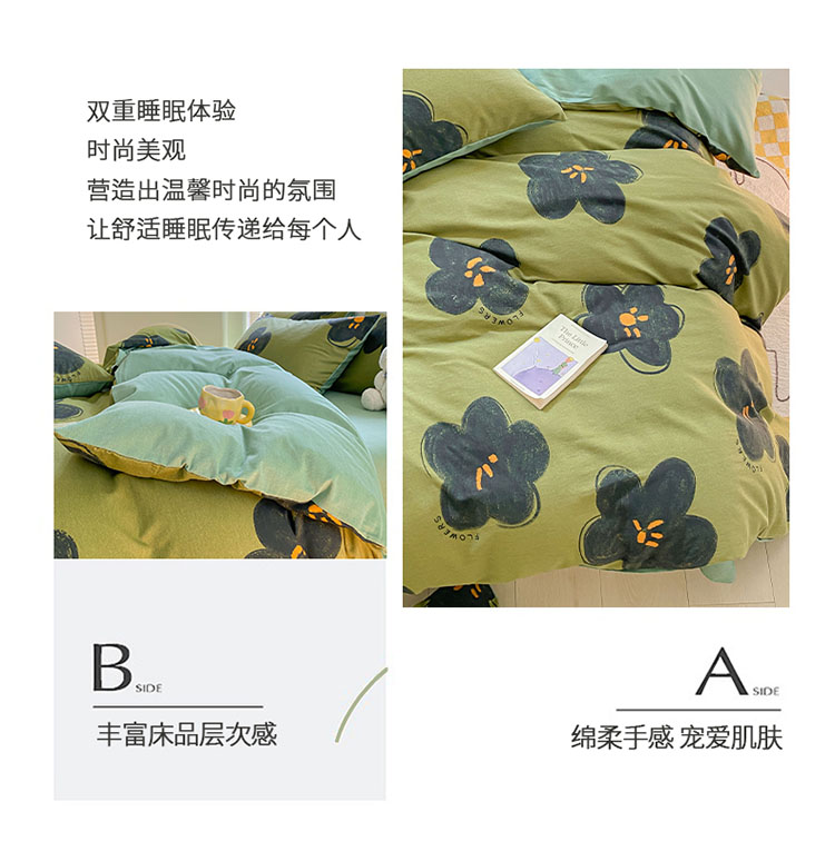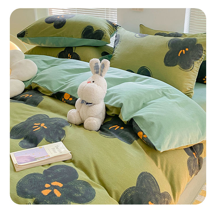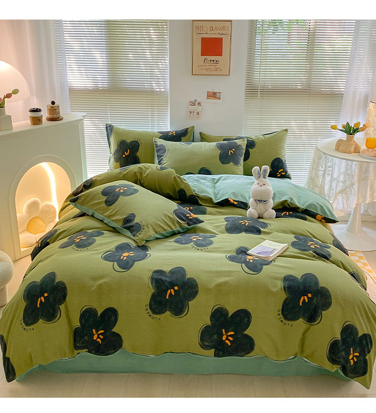 雅居纺 2022新款生态磨毛四件套 小雅绿