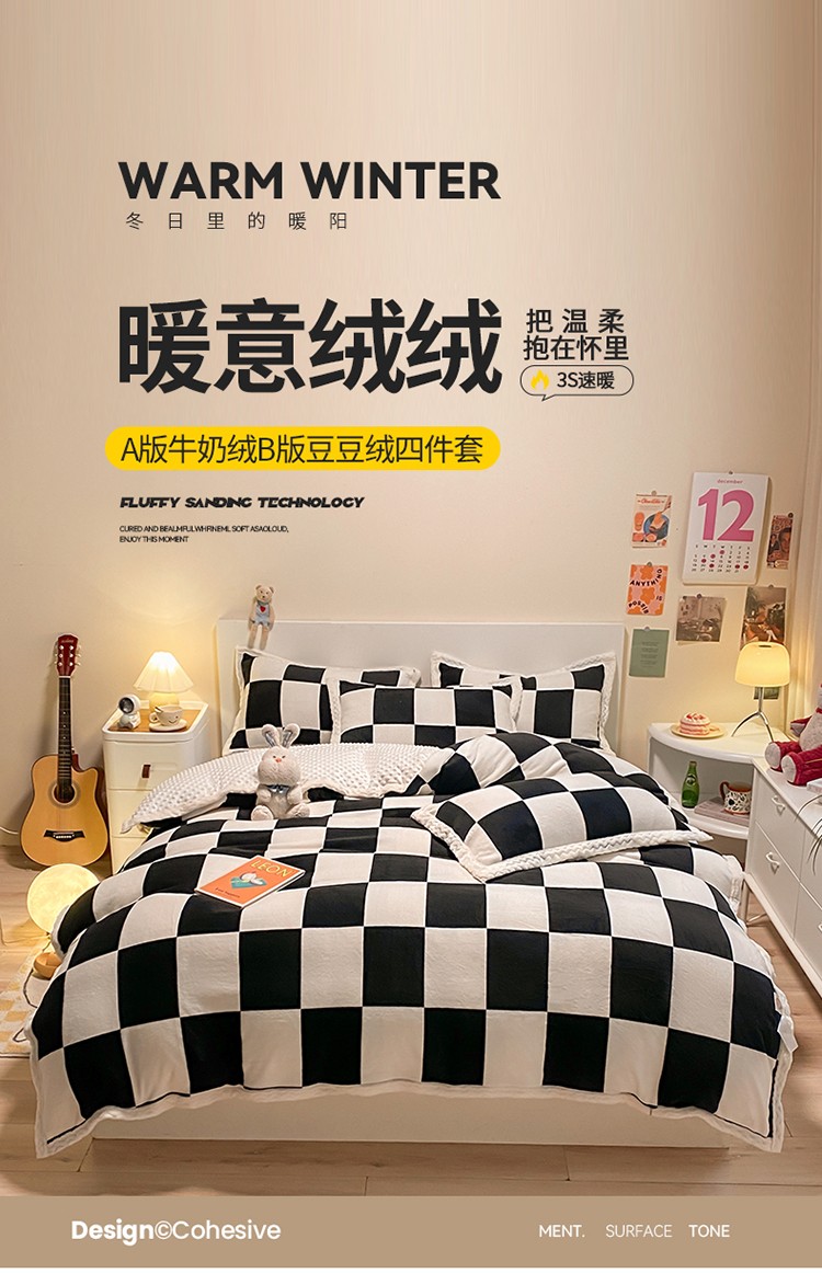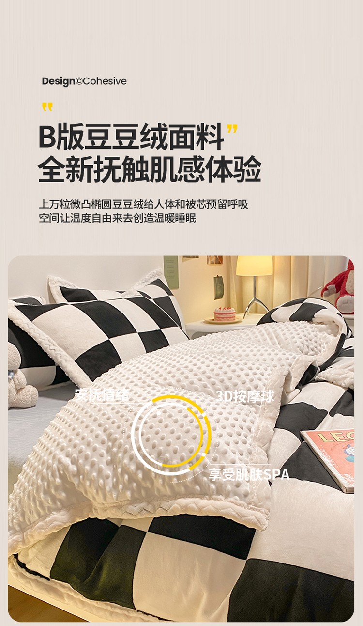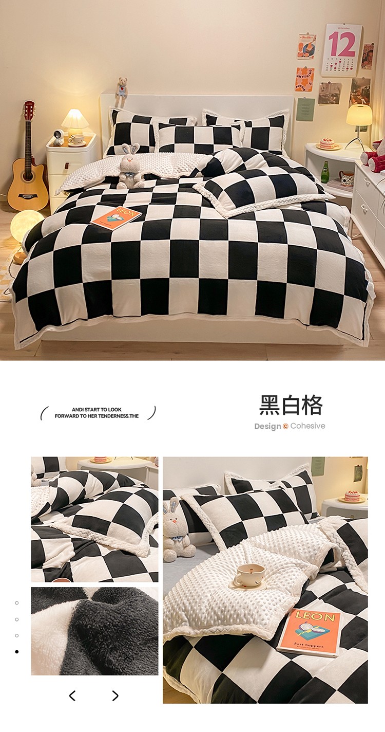 澳梵 2022新款牛奶绒豆豆绒四件套 黑白格