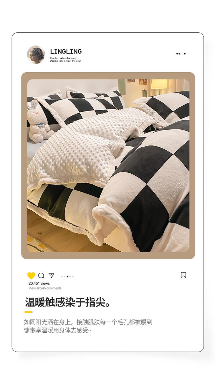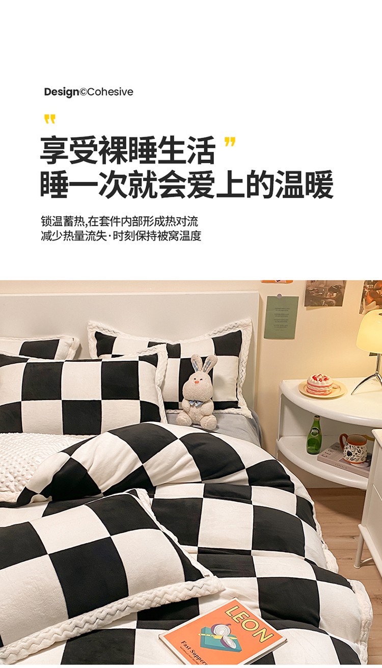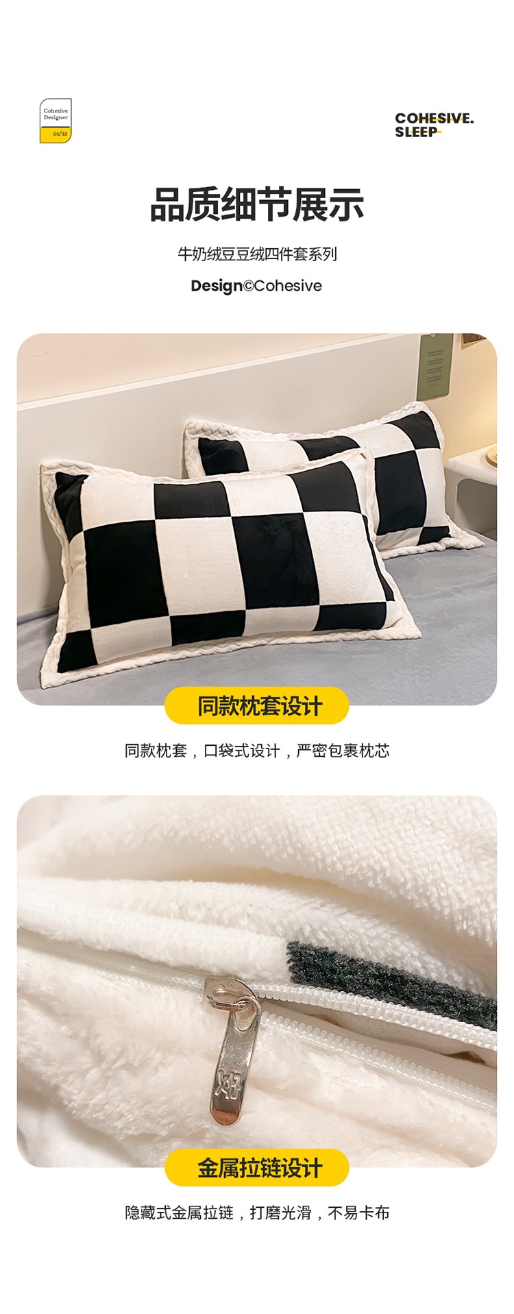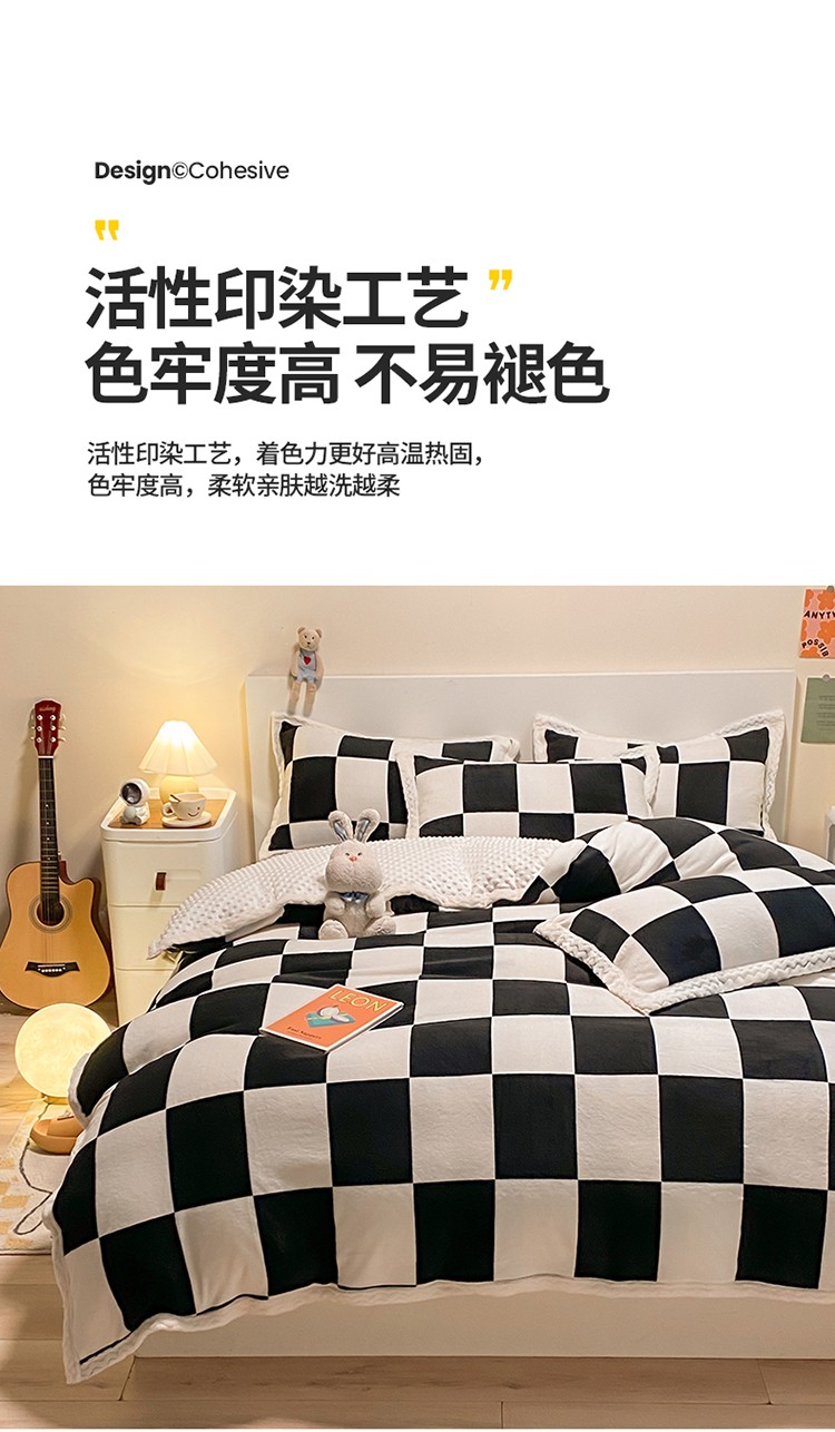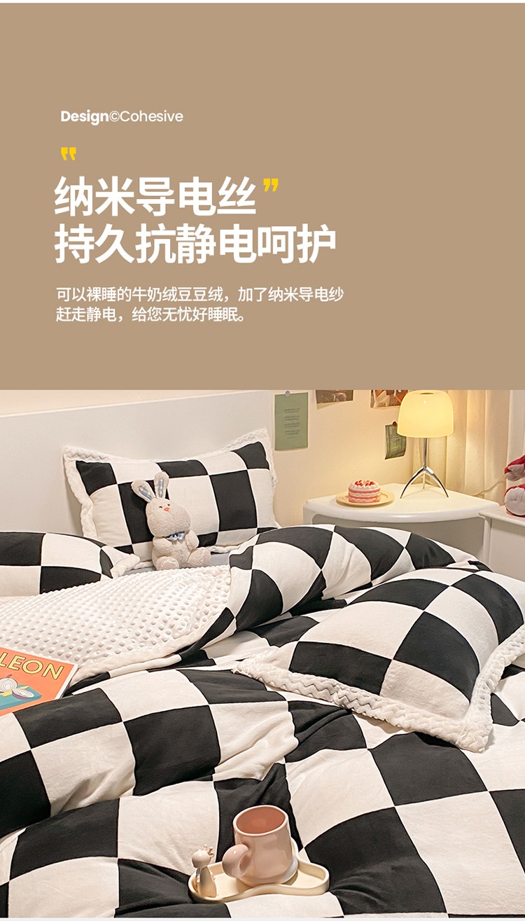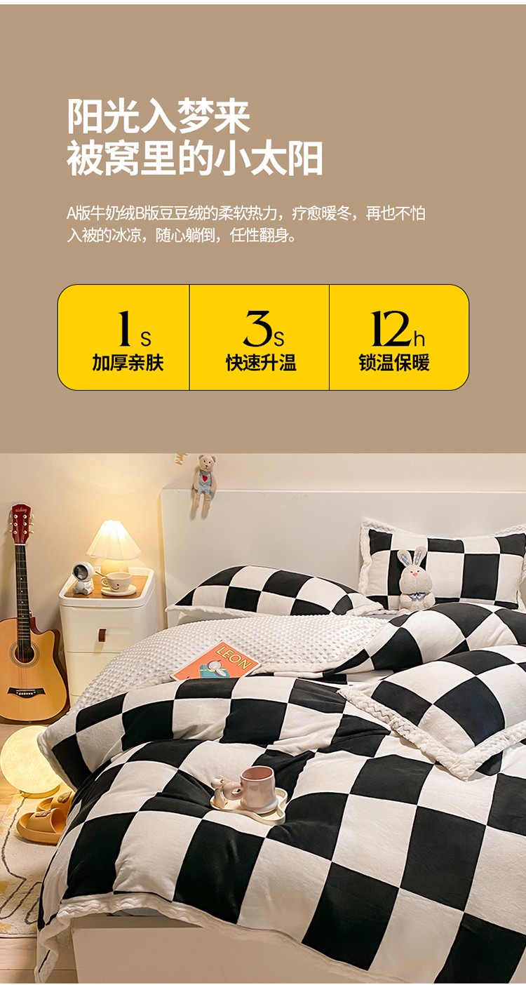 商品名称:澳梵 2022新款牛奶绒豆豆绒四件套 黑白格