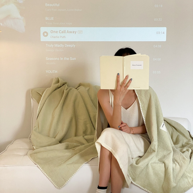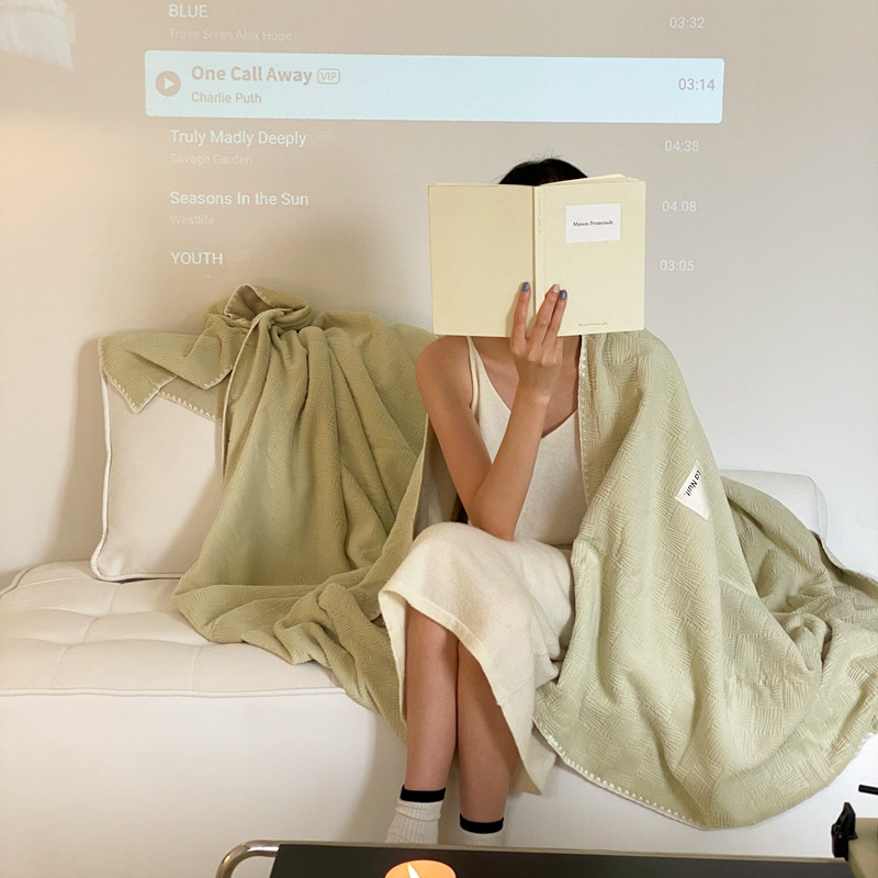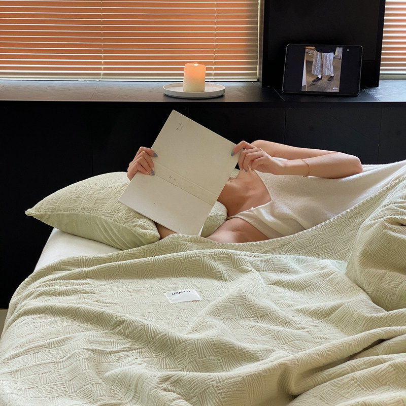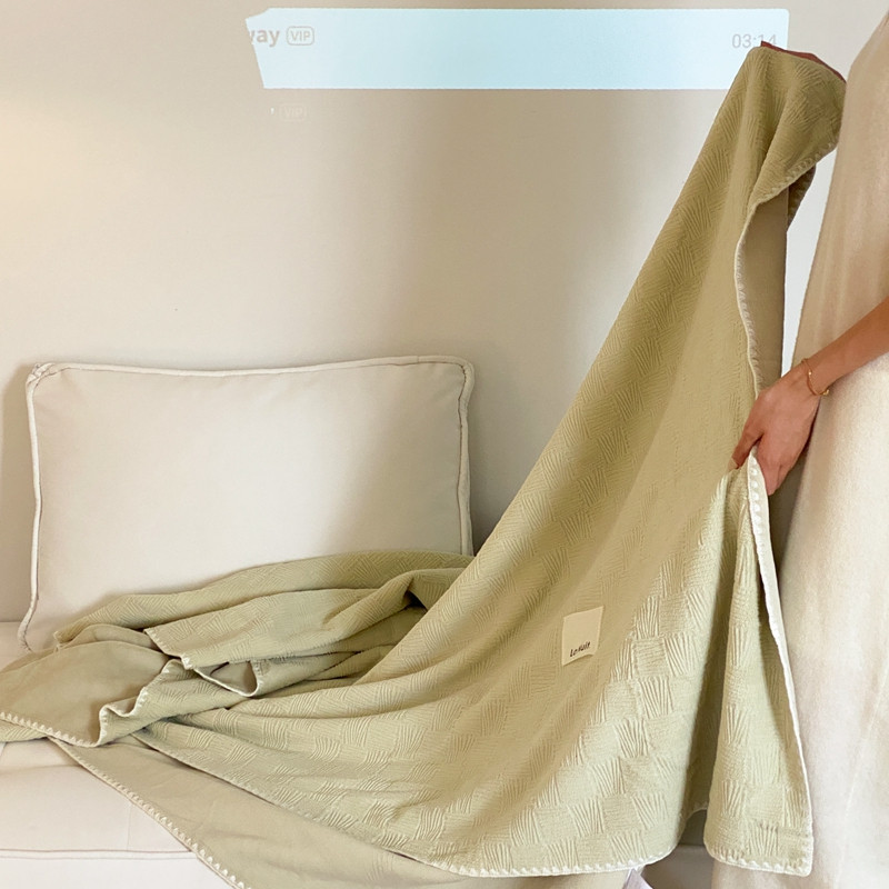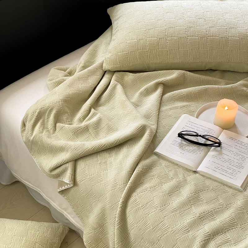 桃喜 2022新款牛奶绒提花毛毯 卡其绿