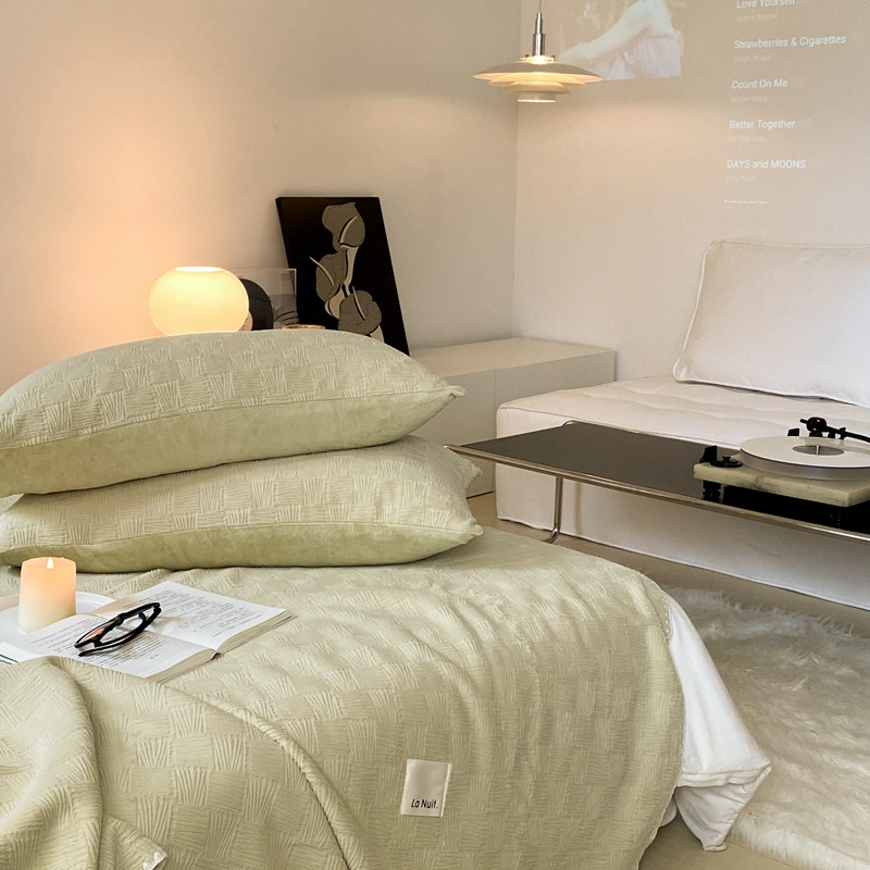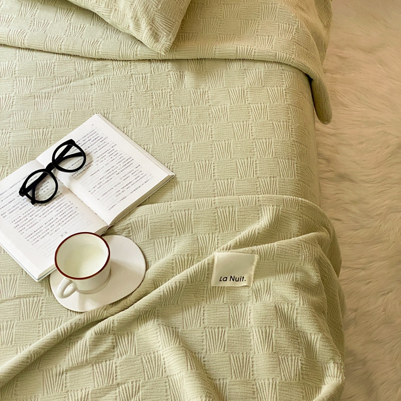 商品名称:桃喜 2022新款牛奶绒提花毛毯 卡其绿