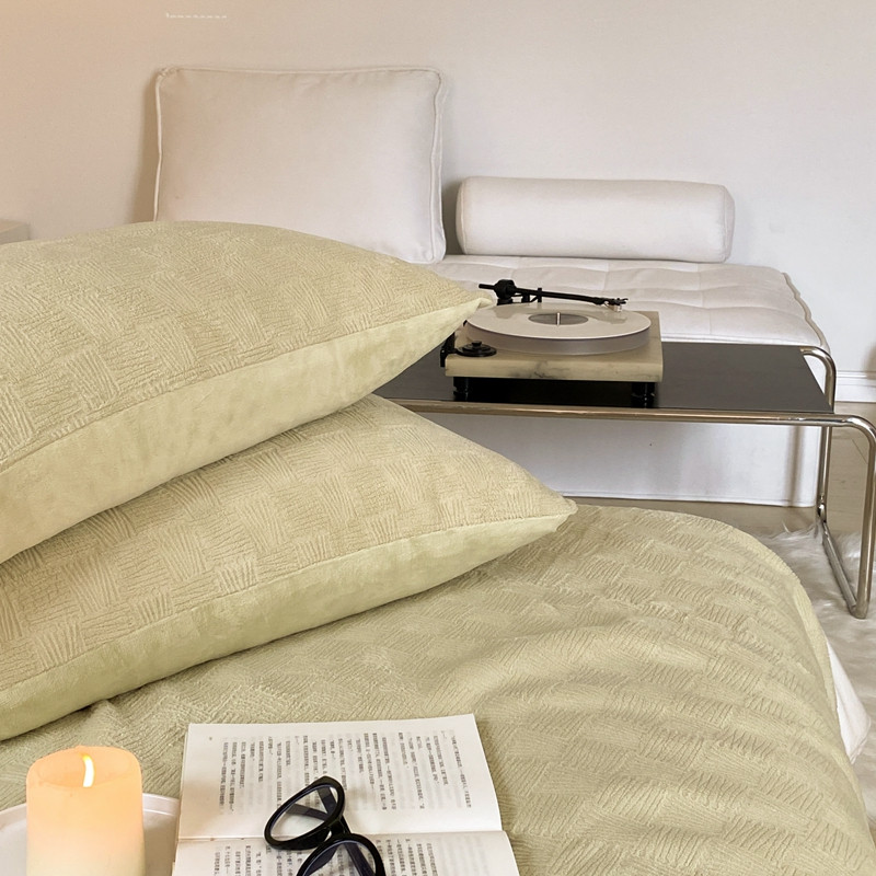 (总)桃喜 2025新款韩系纯色200g牛奶绒柔软毛巾绣刺绣四件套,黄蓝格,格调紫,红格苹果,牛油果绿,白色,咖色