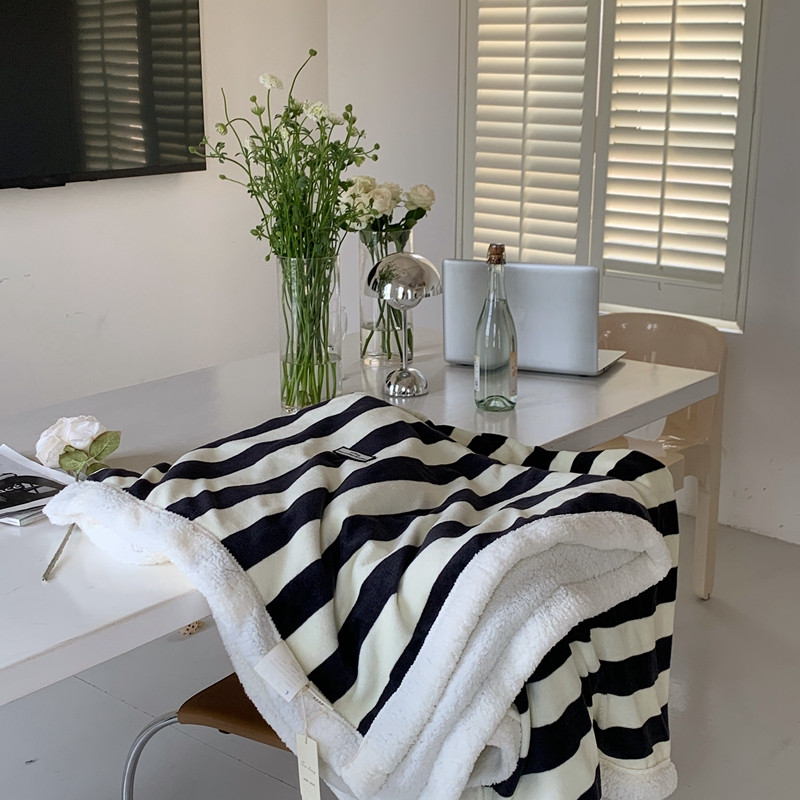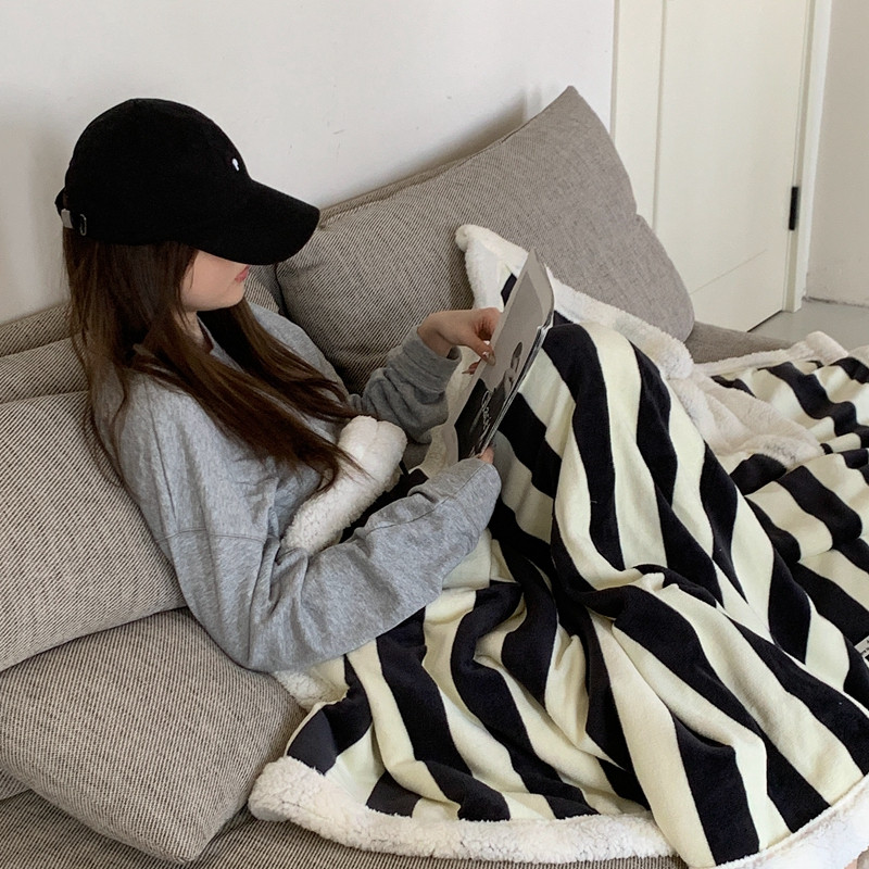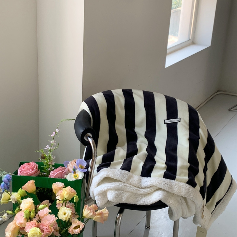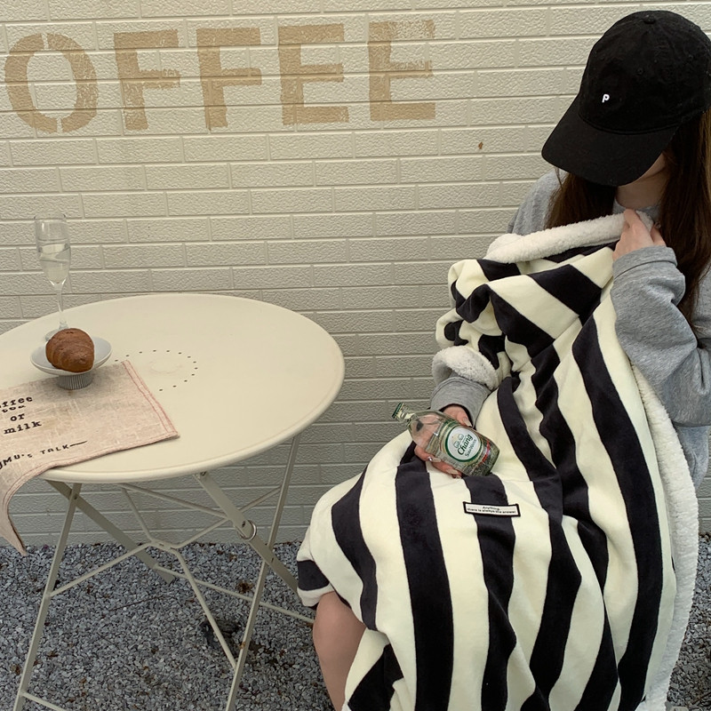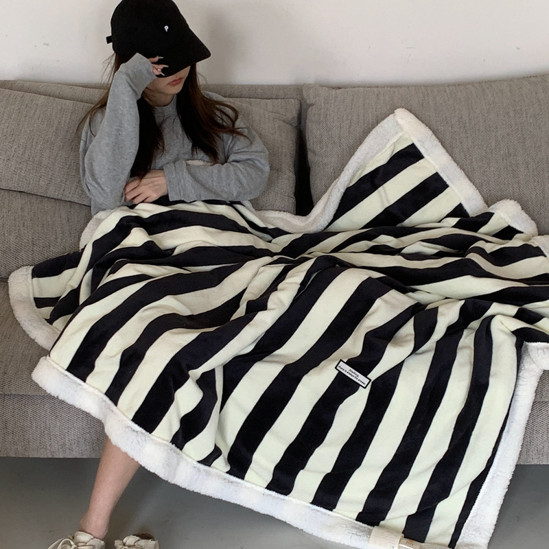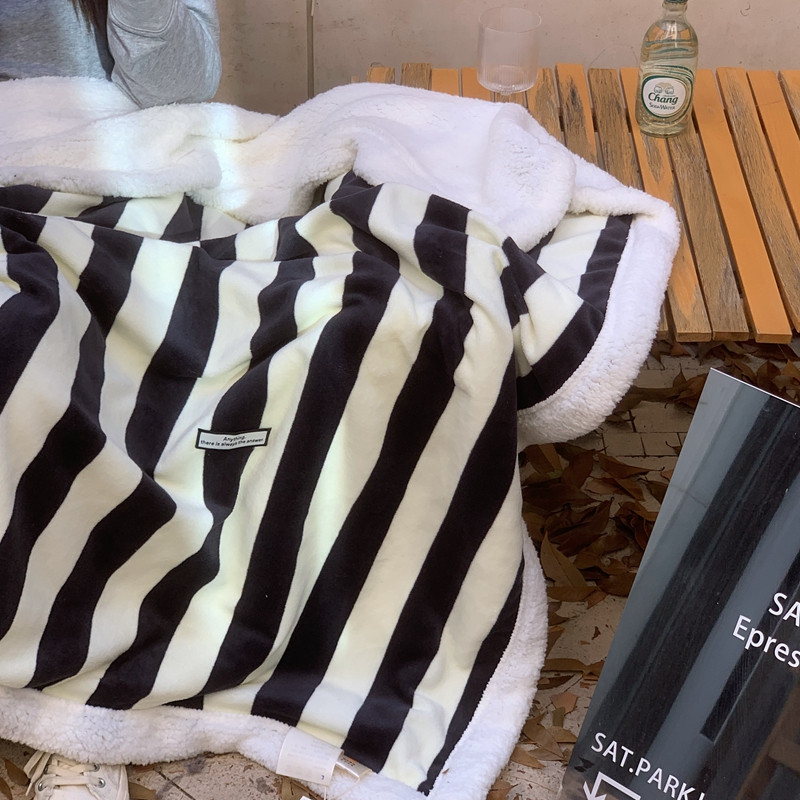 商品名称:桃喜 2022新款230g牛奶绒羊羔绒条纹毛毯 黑白奥利奥