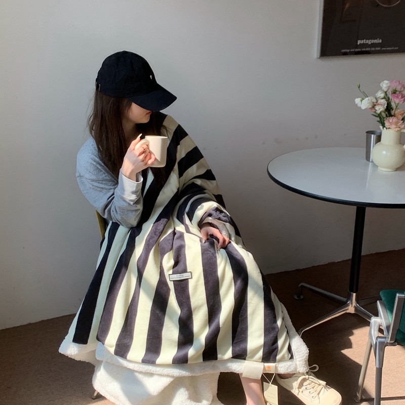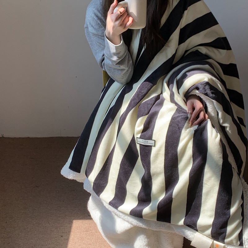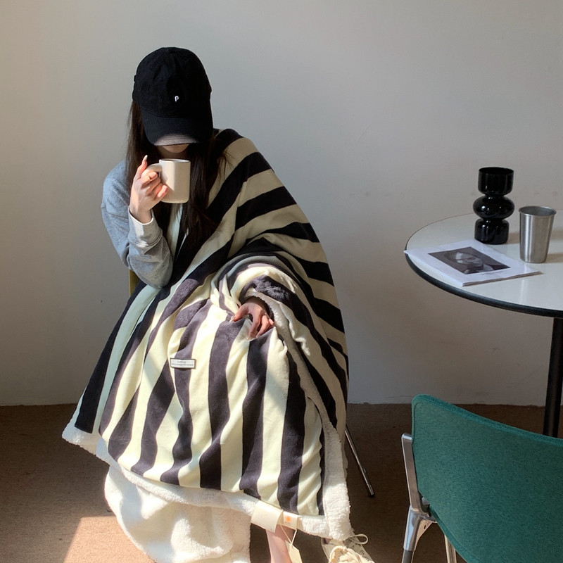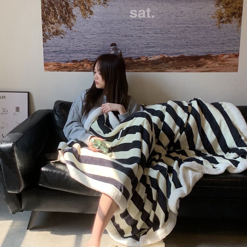 (总)桃喜 2024新款牛奶绒羊羔绒条纹系列盖绒毛毯午休毯多功能毛毯-场景二,多巴胺彩条,蓝咖条纹,栗子粉条纹,美式复古红蓝条,美式复古黄蓝条