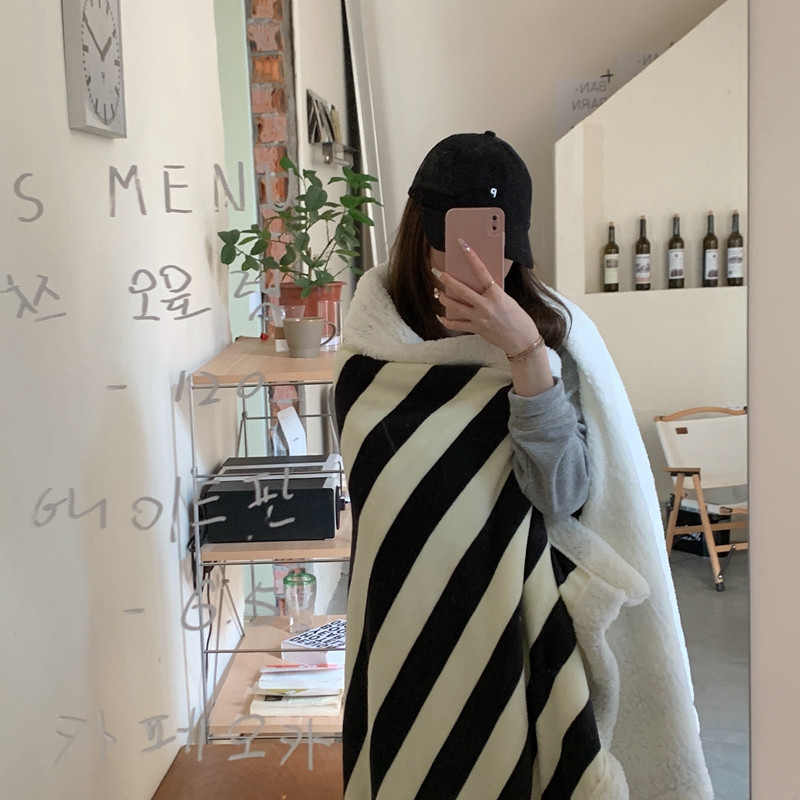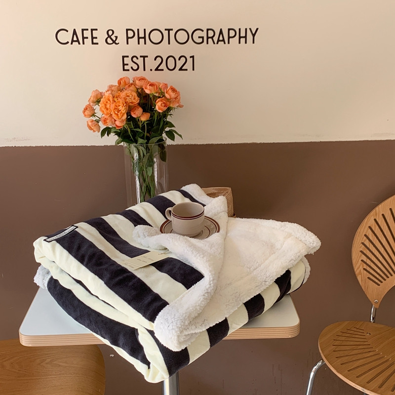 (总)桃喜 2024新款牛奶绒羊羔绒条纹系列盖绒毛毯午休毯多功能毛毯,多巴胺彩条,蓝咖条纹,栗子粉条纹,美式复古红蓝条,美式复古黄蓝条