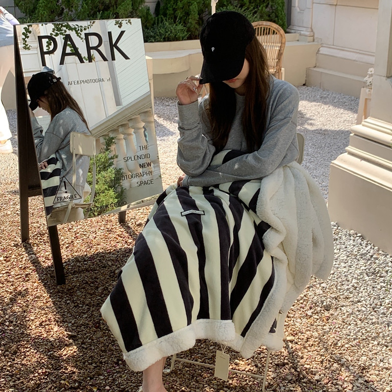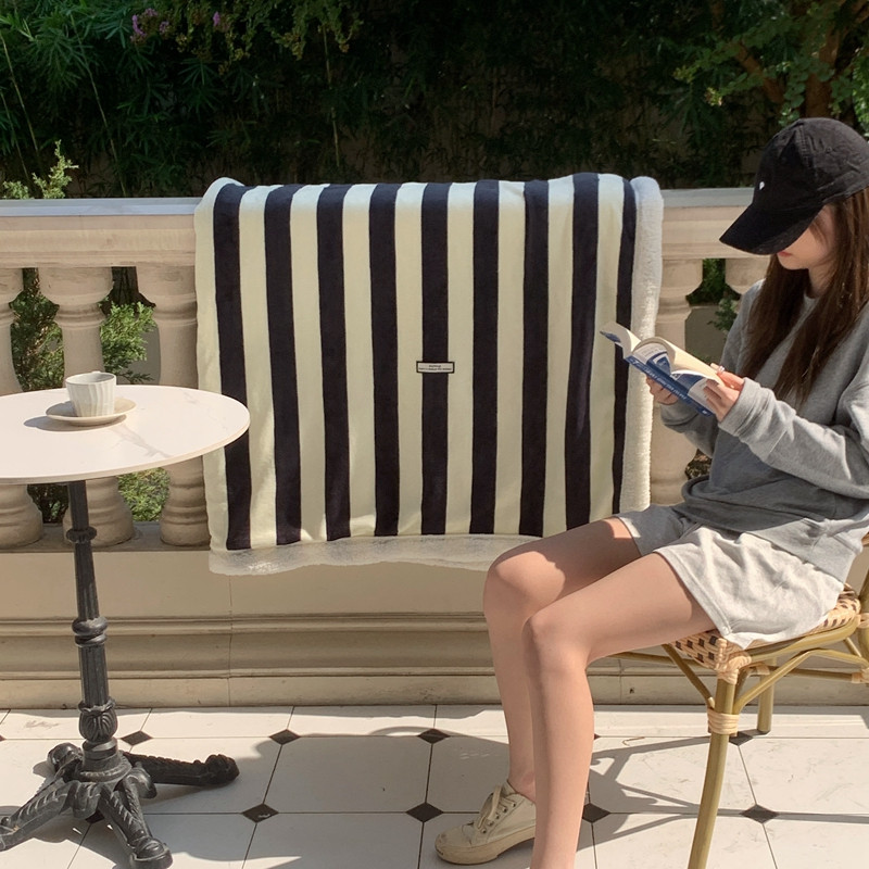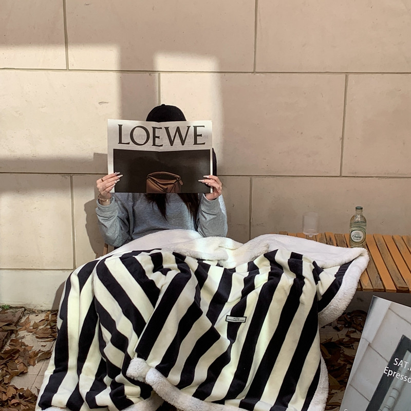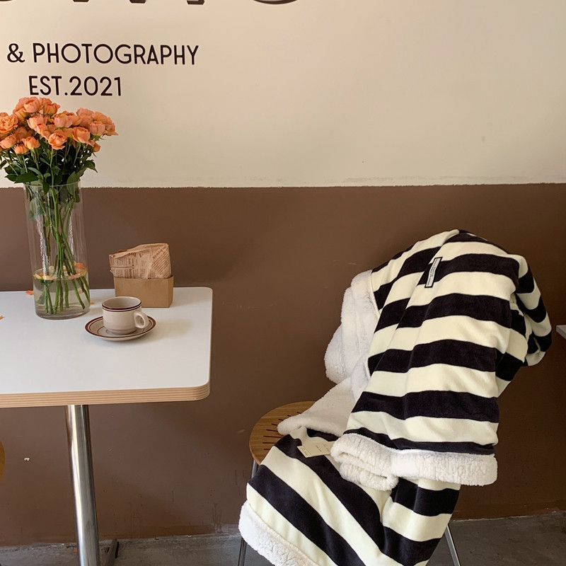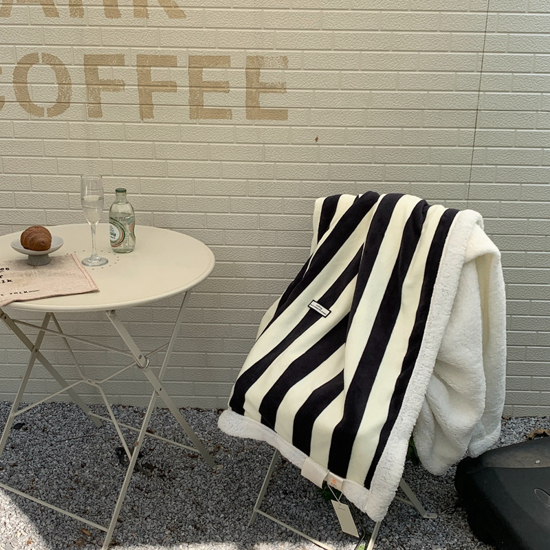 桃喜 2022新款230g牛奶绒羊羔绒条纹毛毯 黑白奥利奥