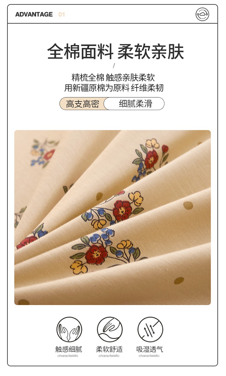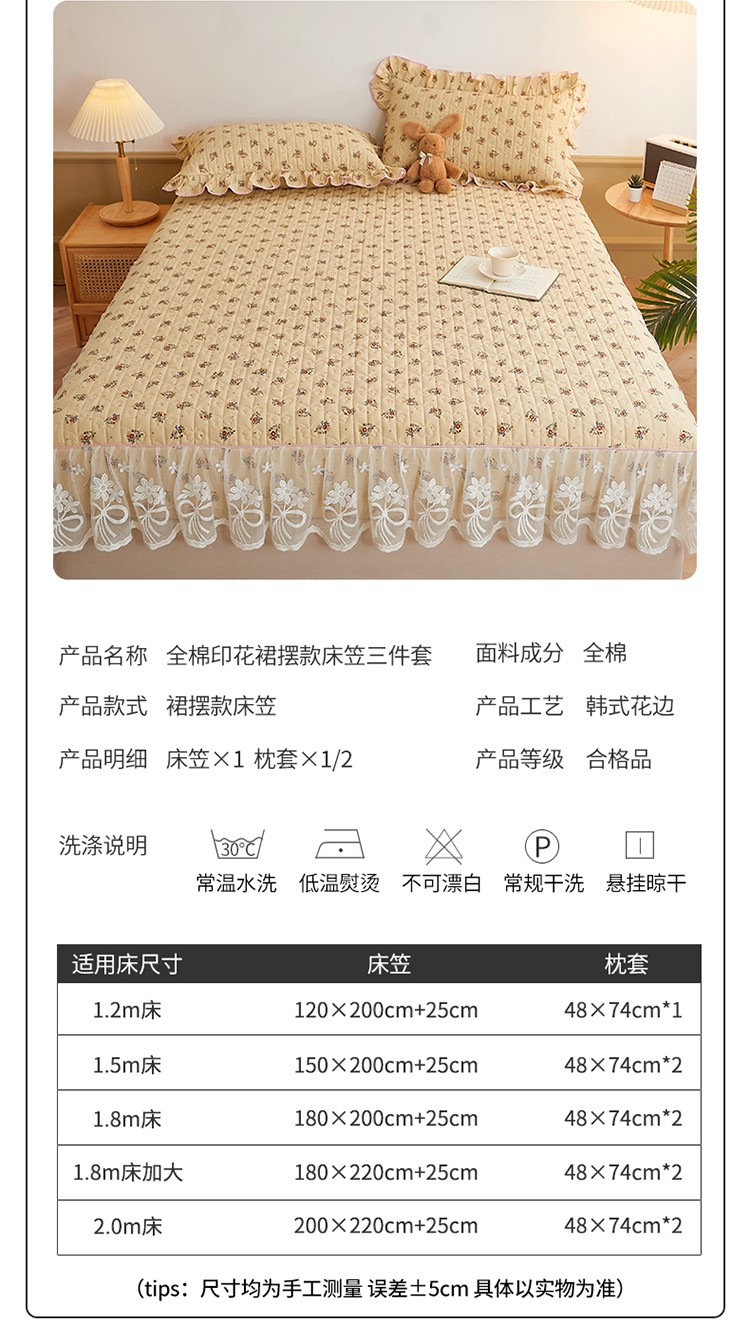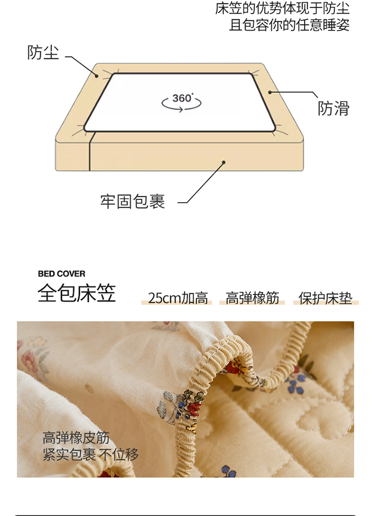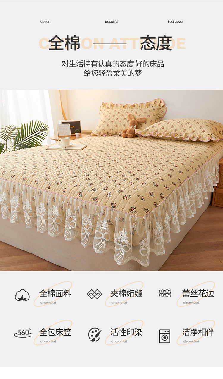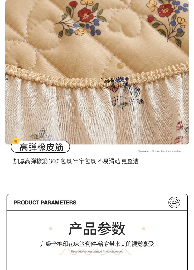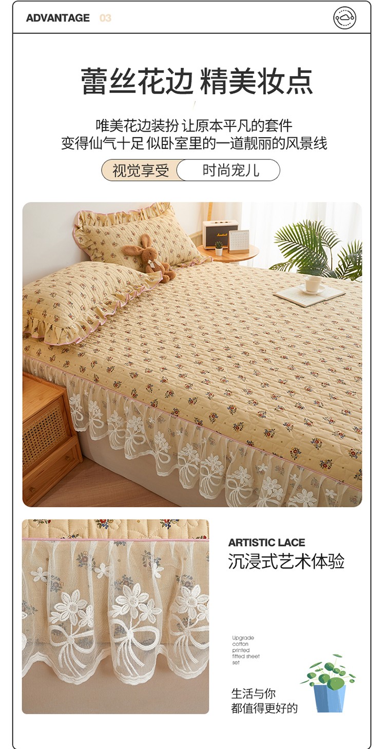 商品名称:宜凡 2023新款四季款夹棉小清新床笠三件套 花束