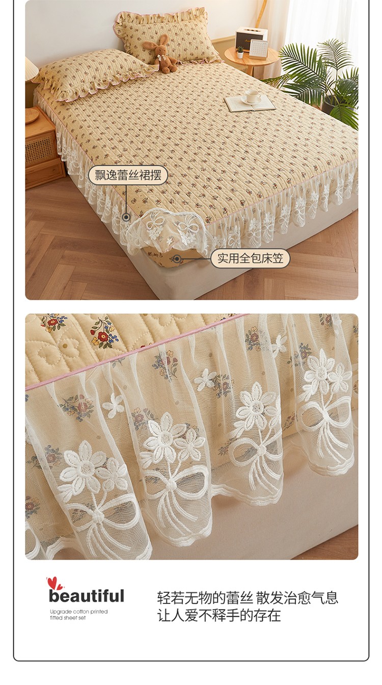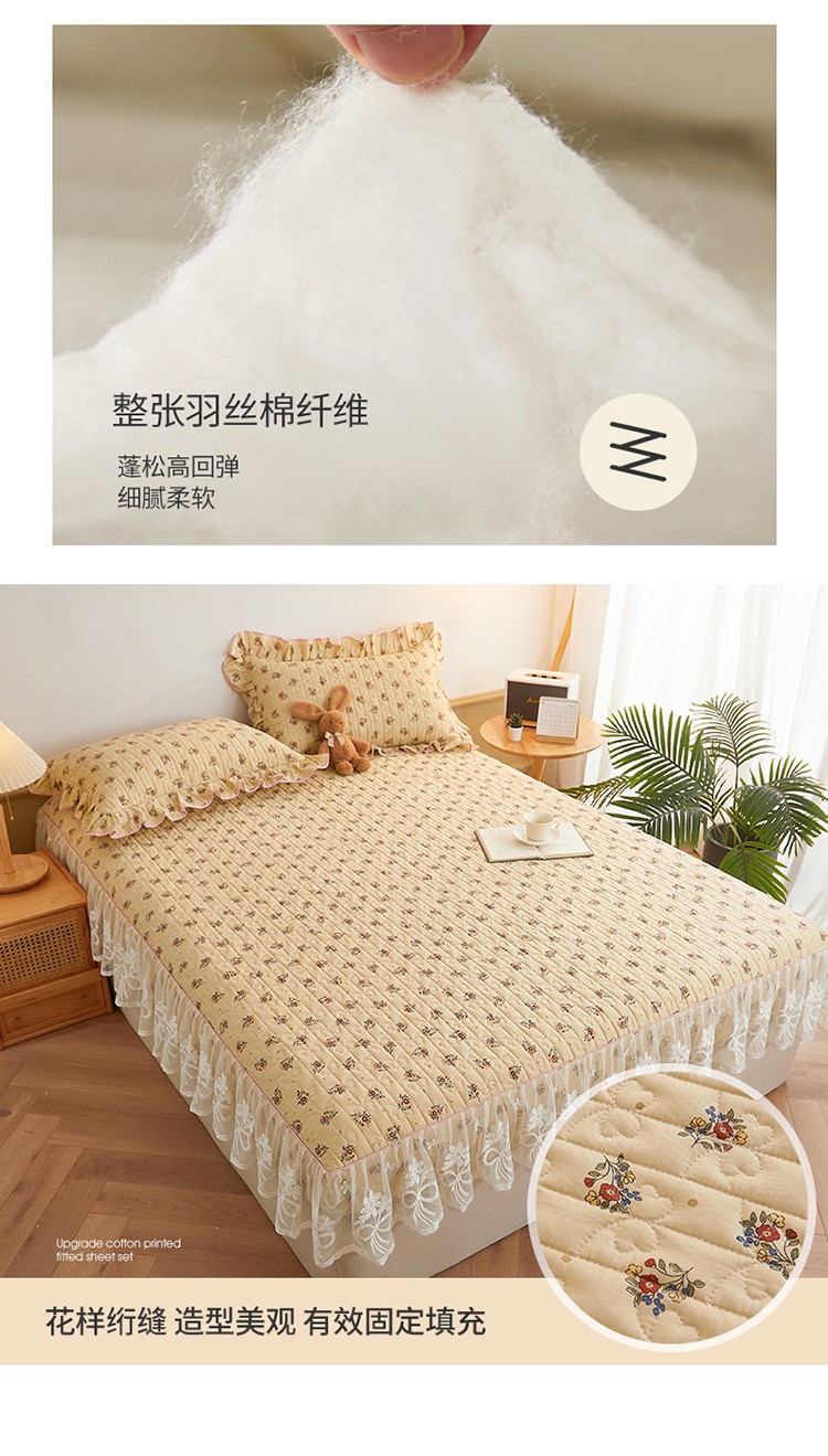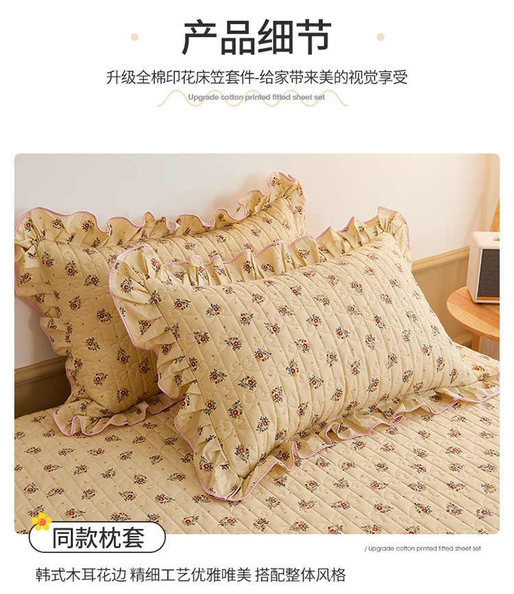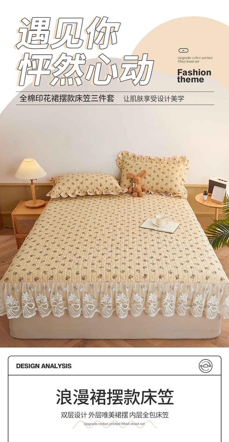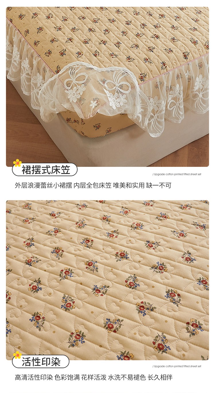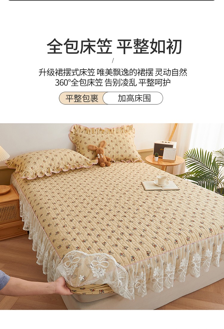 宜凡 2023新款四季款夹棉小清新床笠三件套 花束