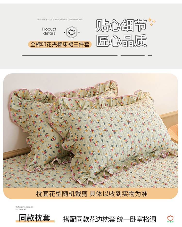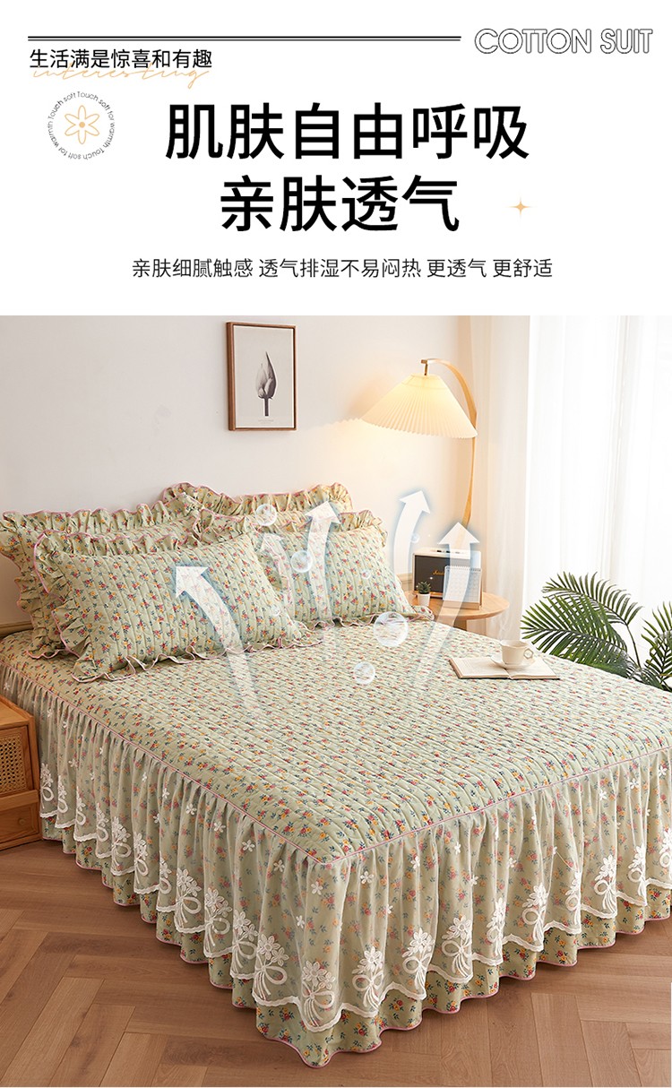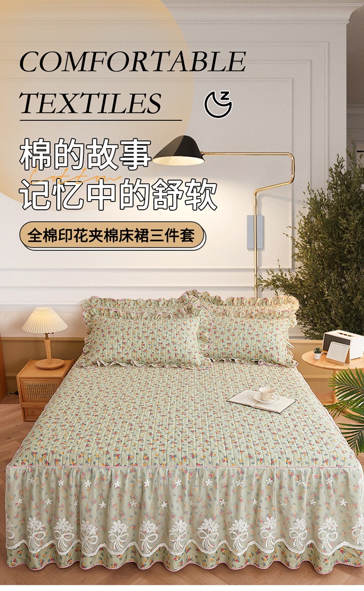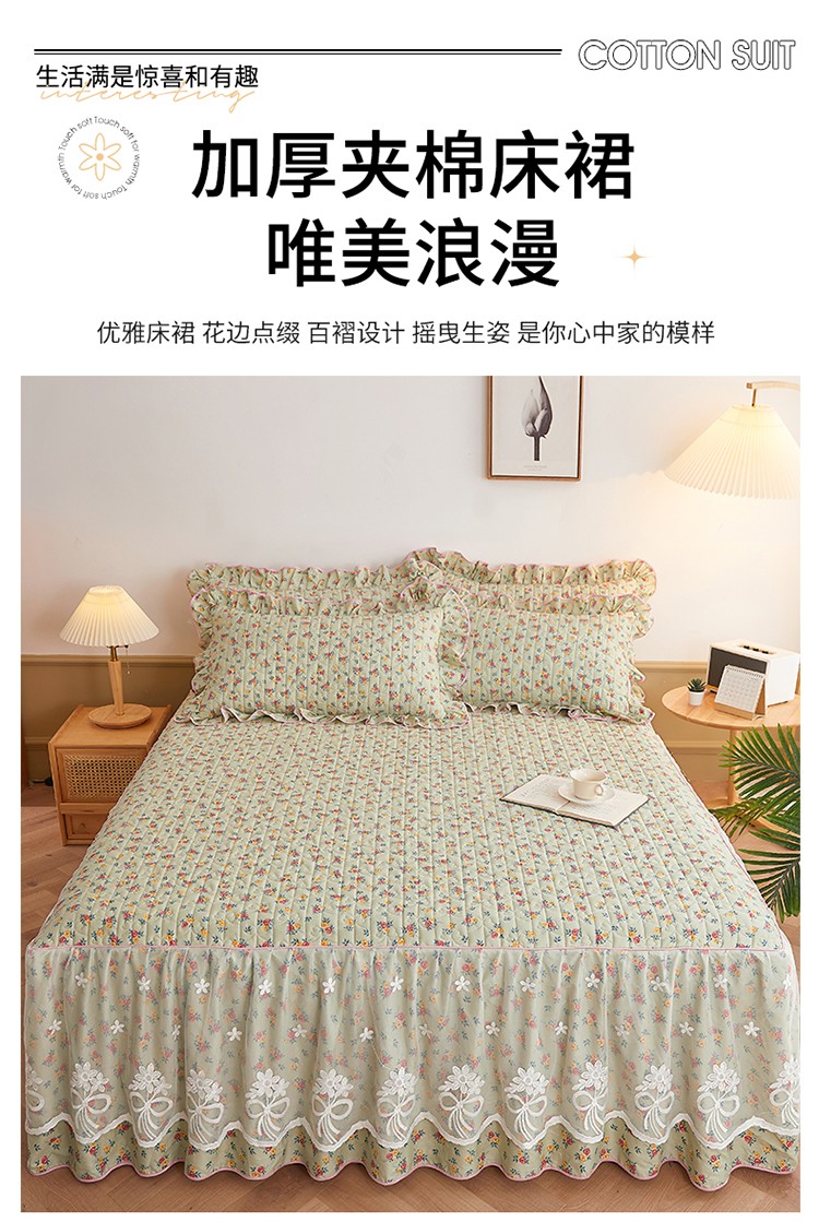 宜凡 2023新款四季款全棉夹棉床裙三件套 浮生