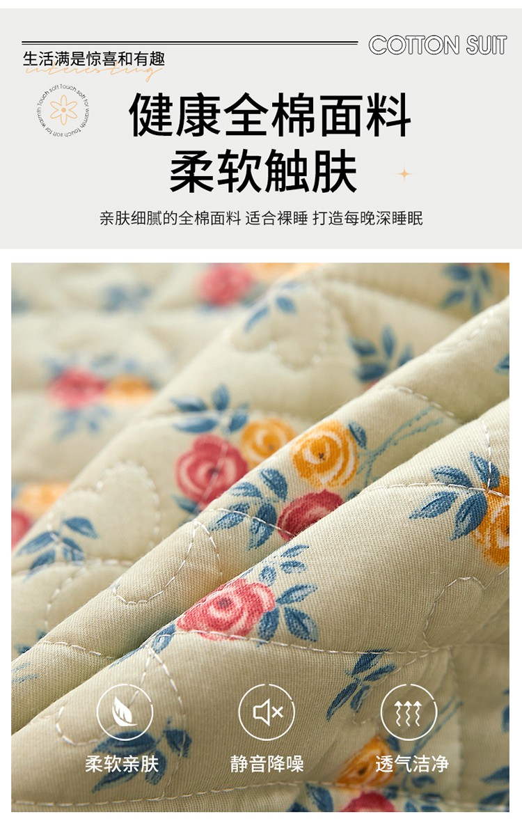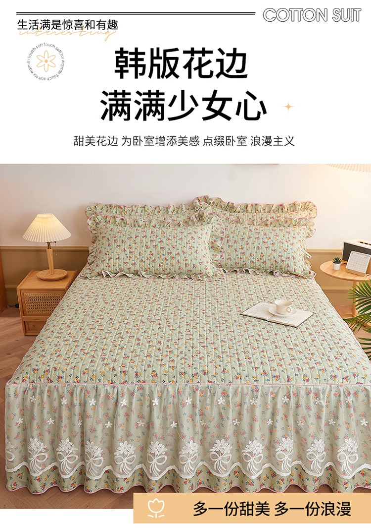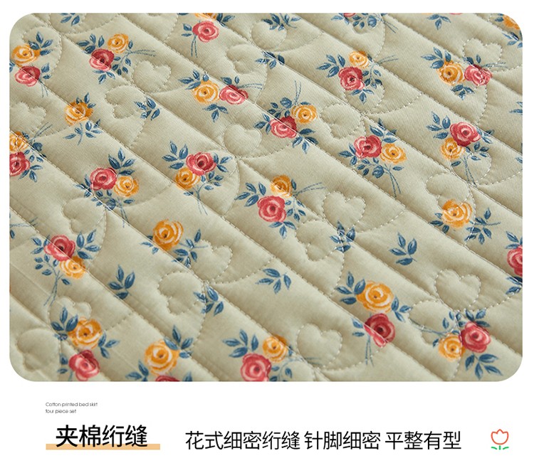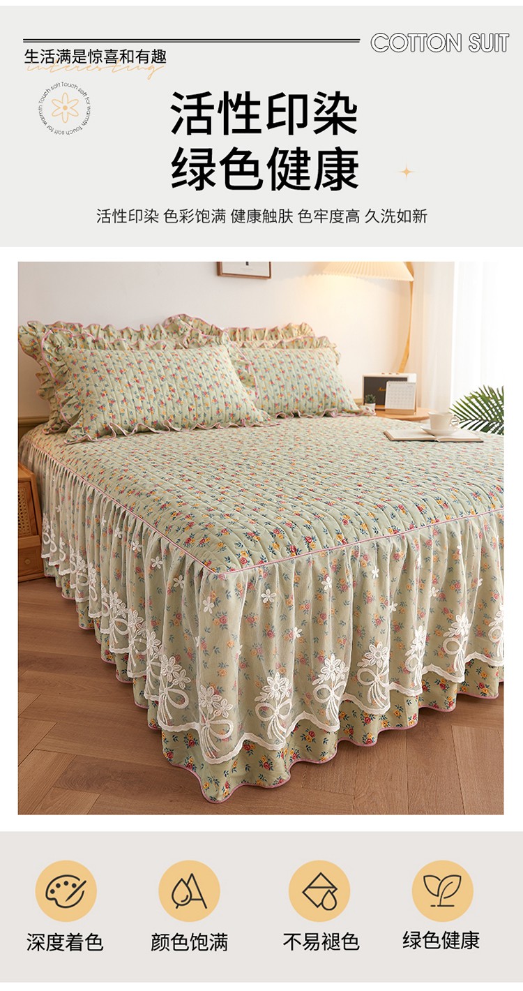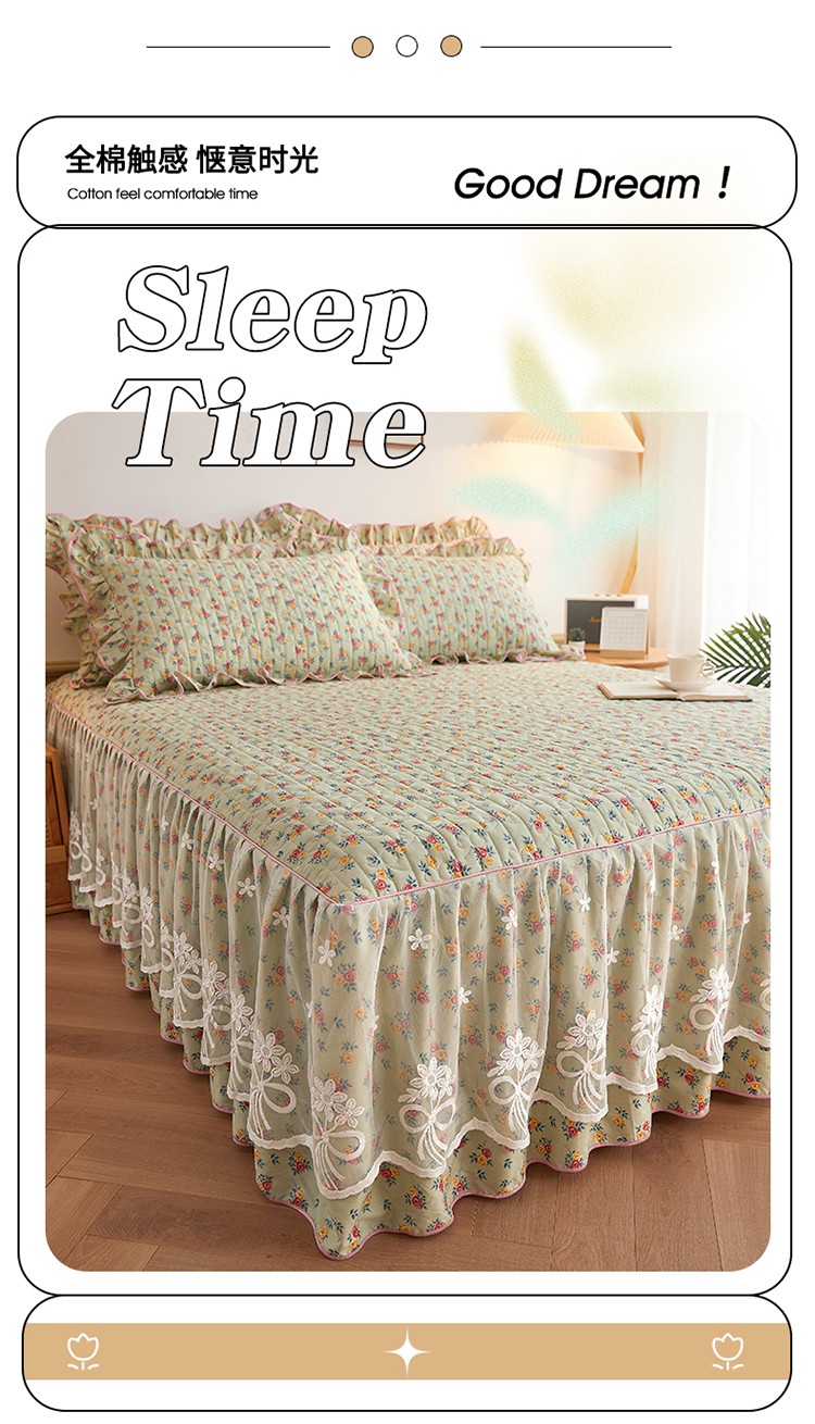 宜凡 2023新款四季款全棉夹棉床裙三件套 浮生