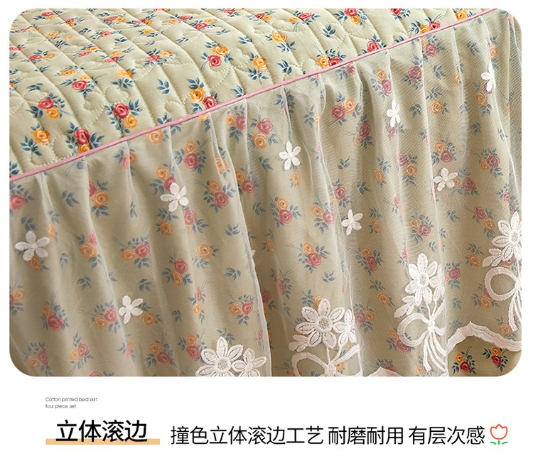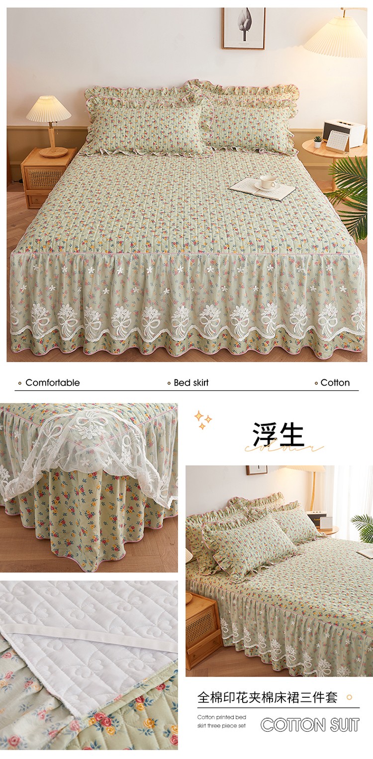 商品名称:宜凡 2023新款四季款全棉夹棉床裙三件套 浮生