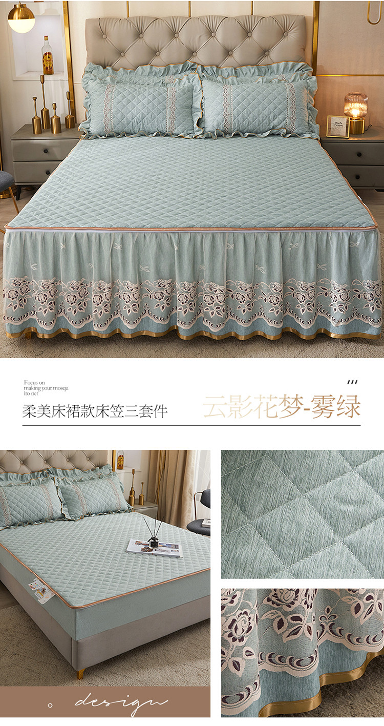 (总)网红馆 2025新款云影花梦脱卸床笠式床裙三件套