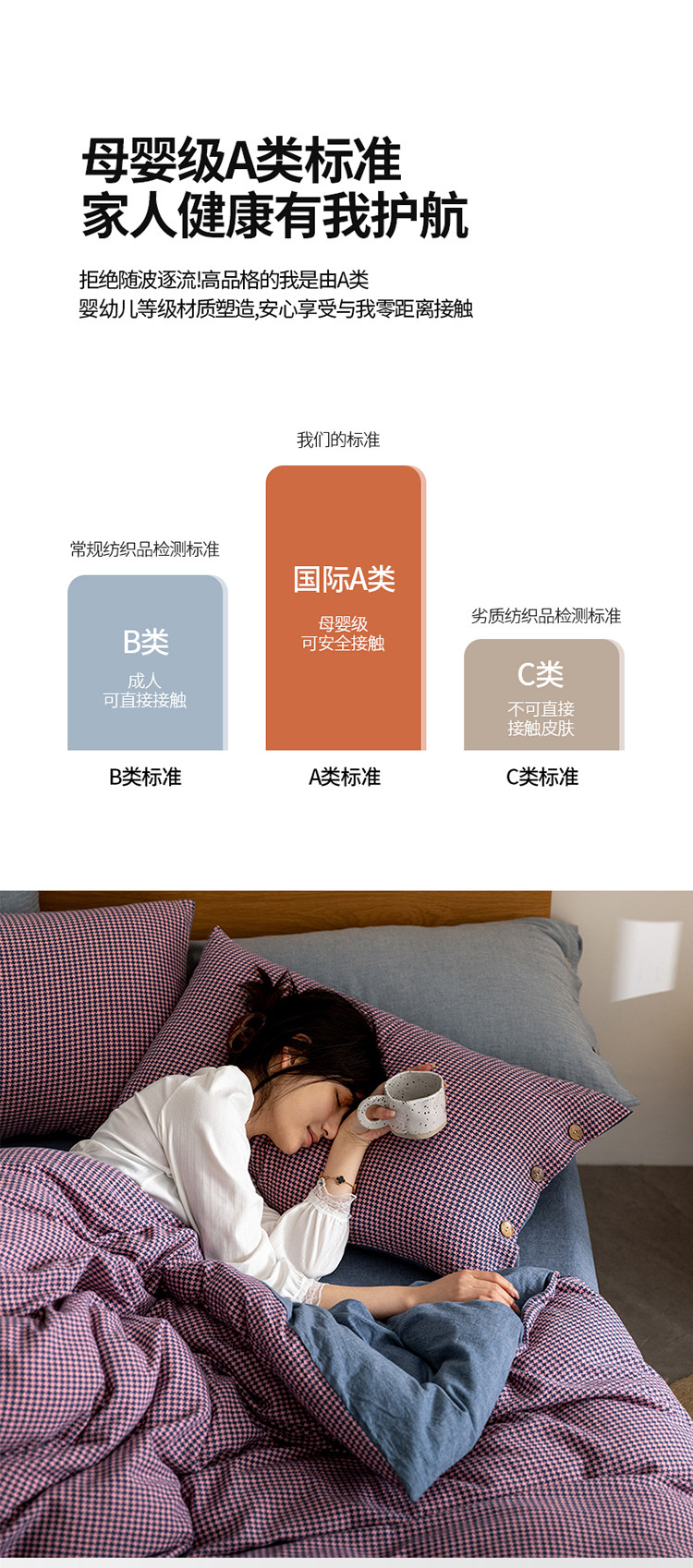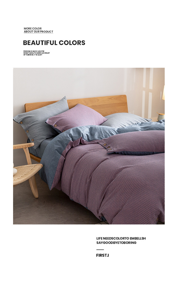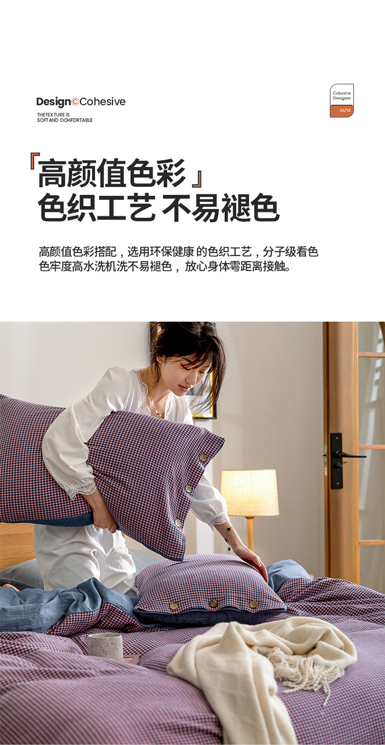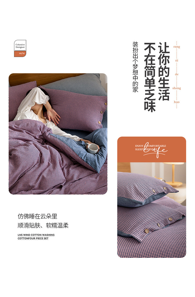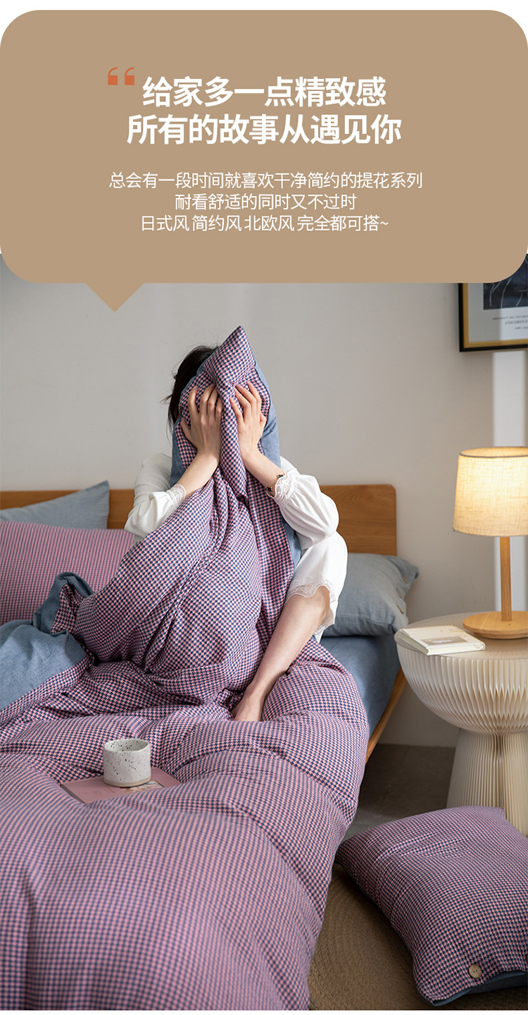商品名称:寐眠 2022新款A类全棉水洗棉提花四件套 千鸟格紫