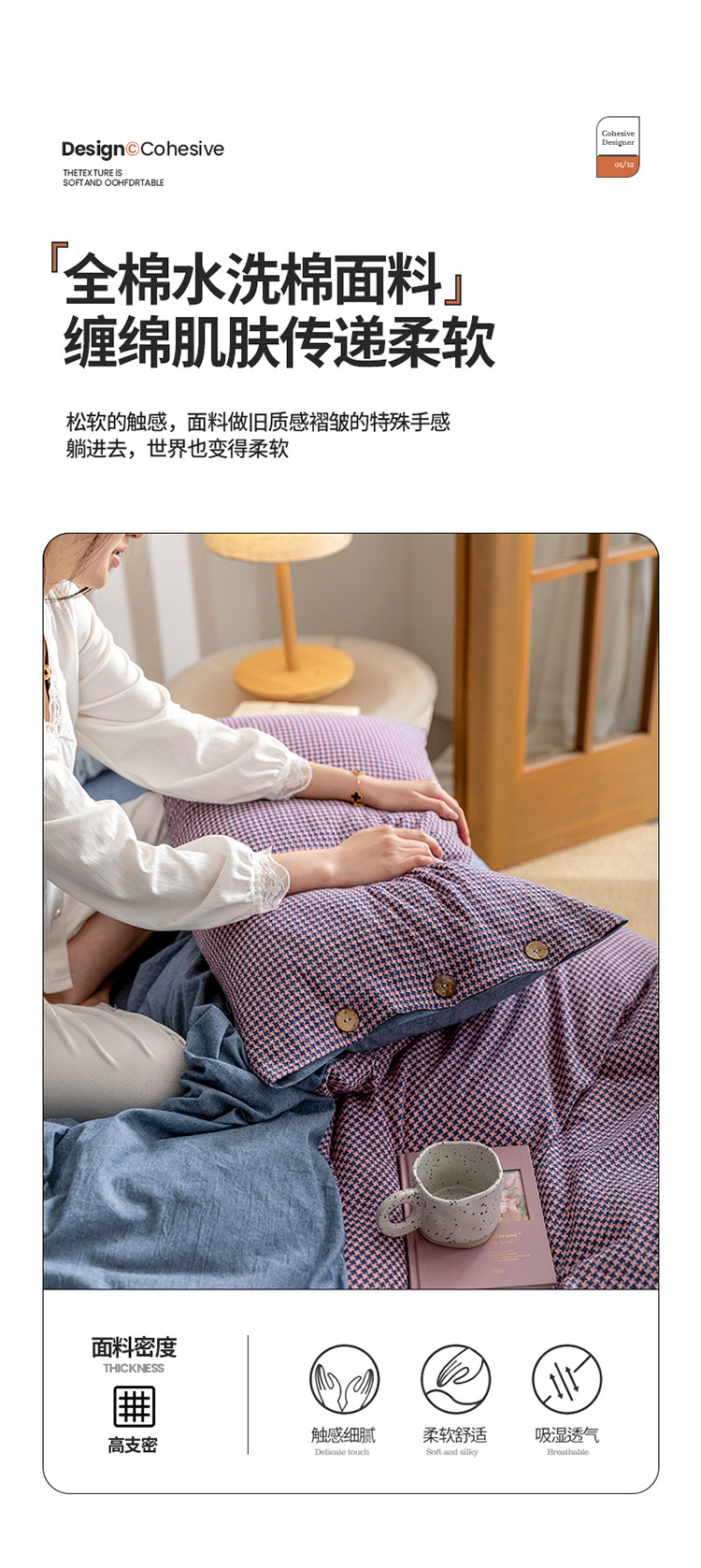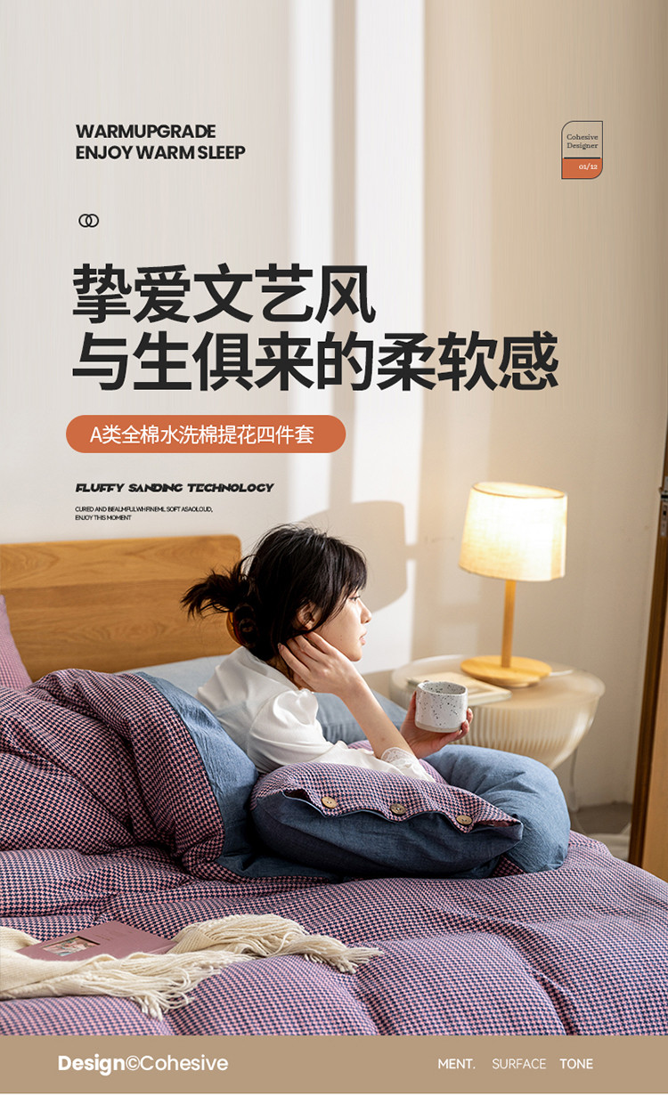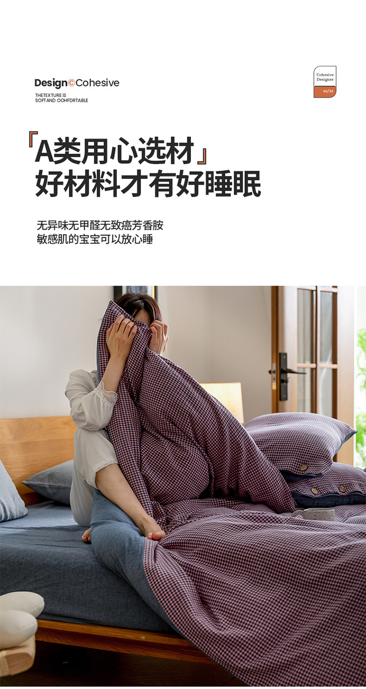 (总)寐眠 2025新款印花牛奶绒三角针贝壳款四件套,红蓝律动,黄绿森语,米韵红痕,墨格独白,暖黄千鸟,桃粉千鸟,雾灰千鸟,棕格时光