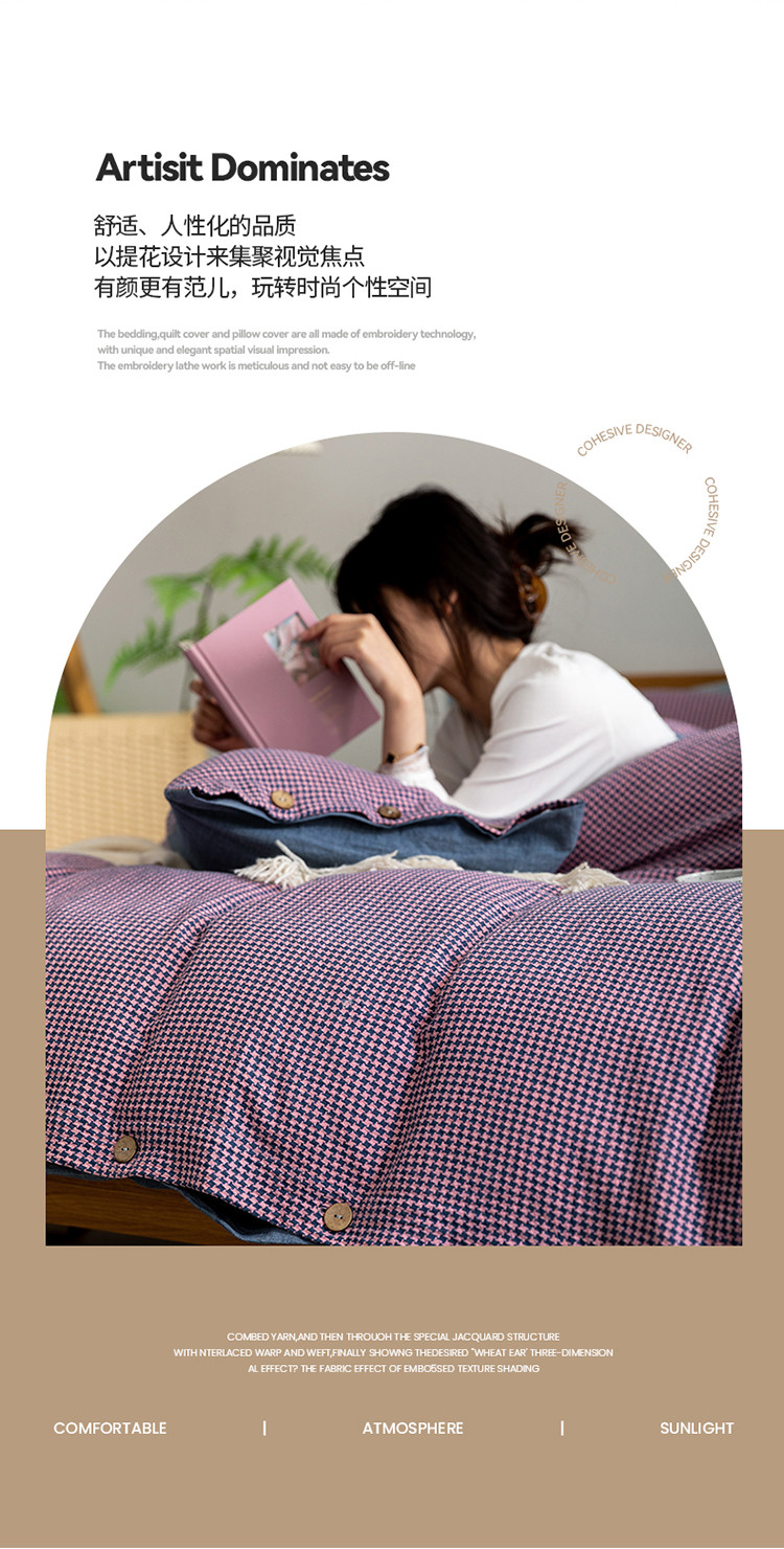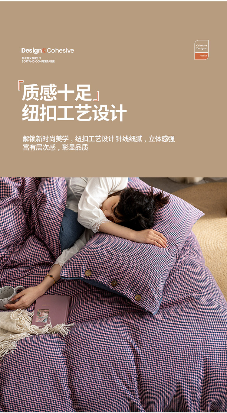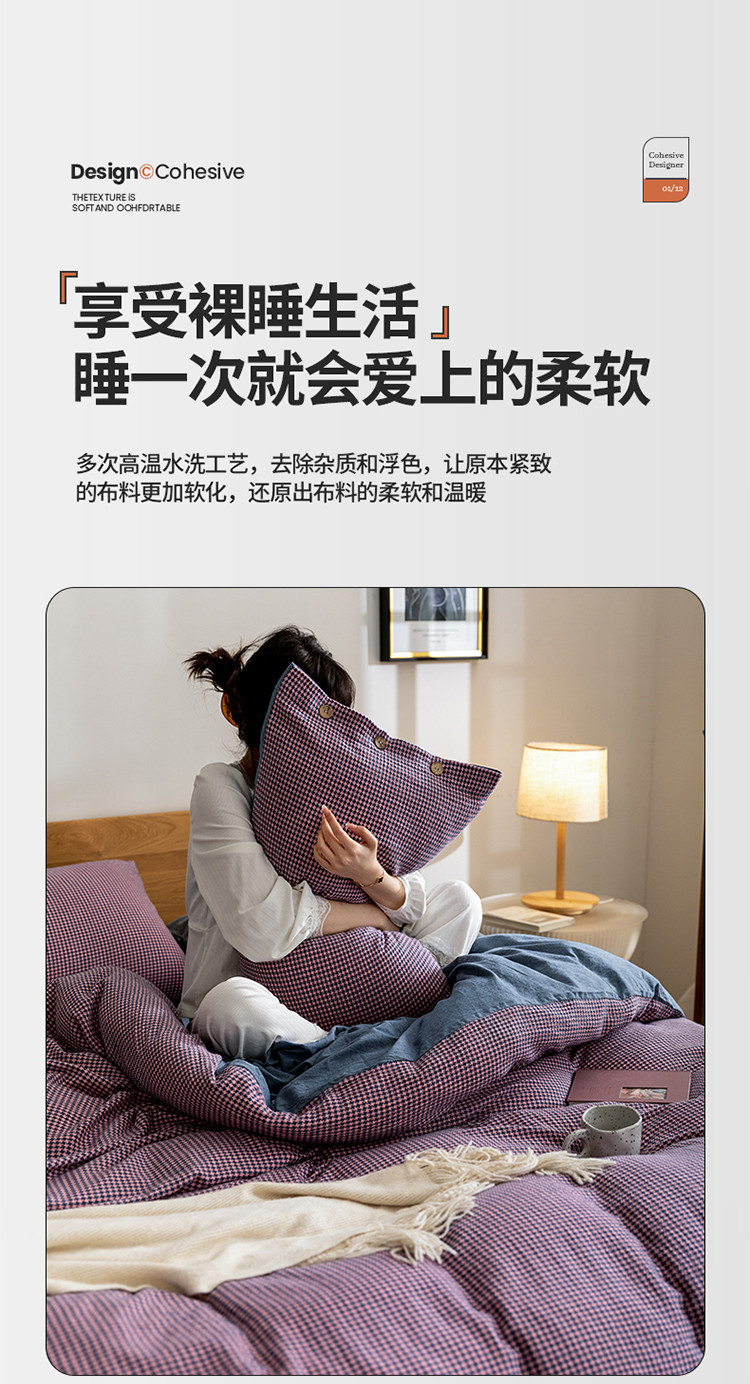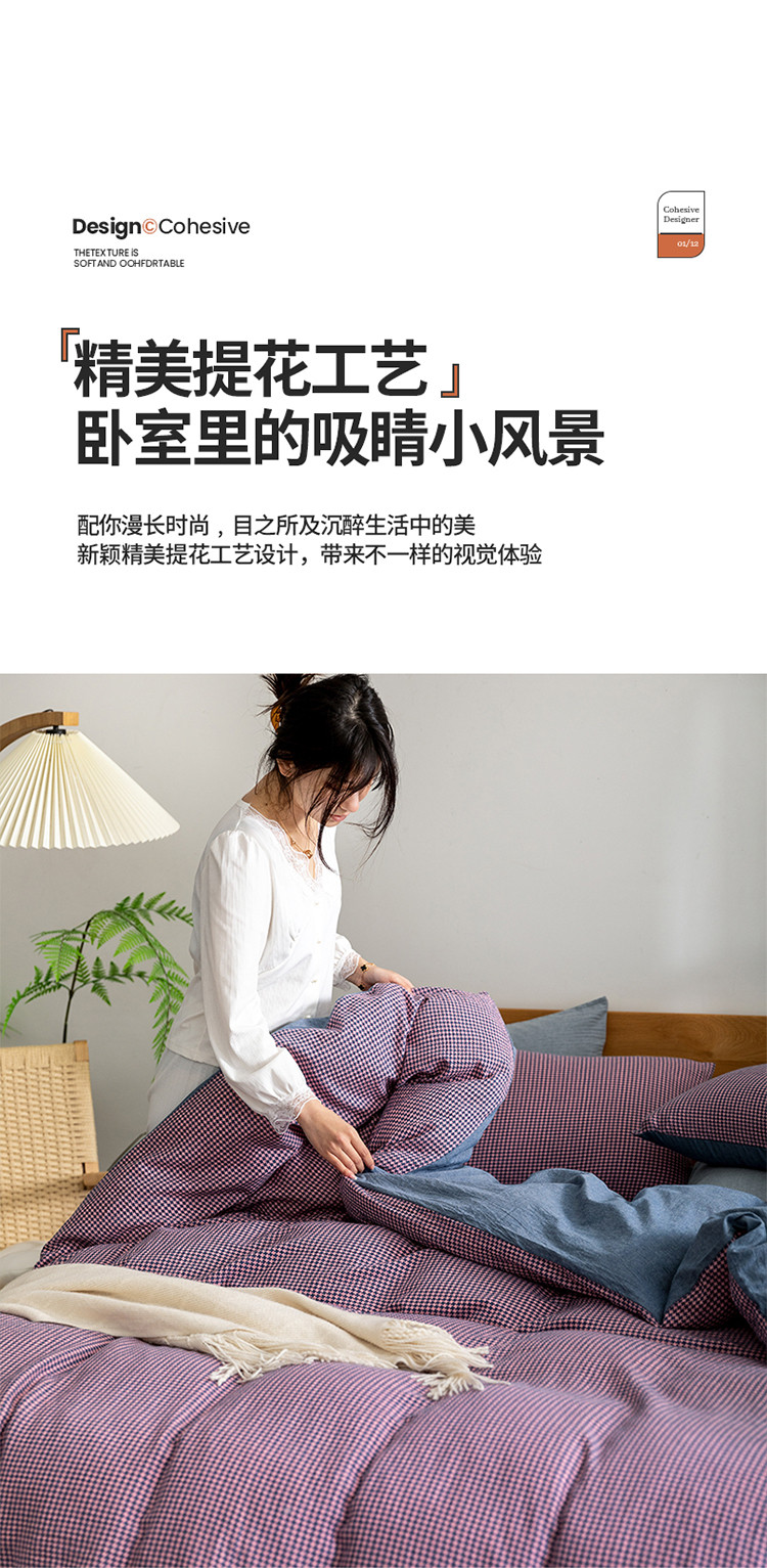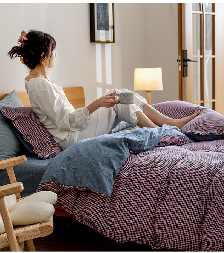 寐眠 2022新款A类全棉水洗棉提花四件套 千鸟格紫