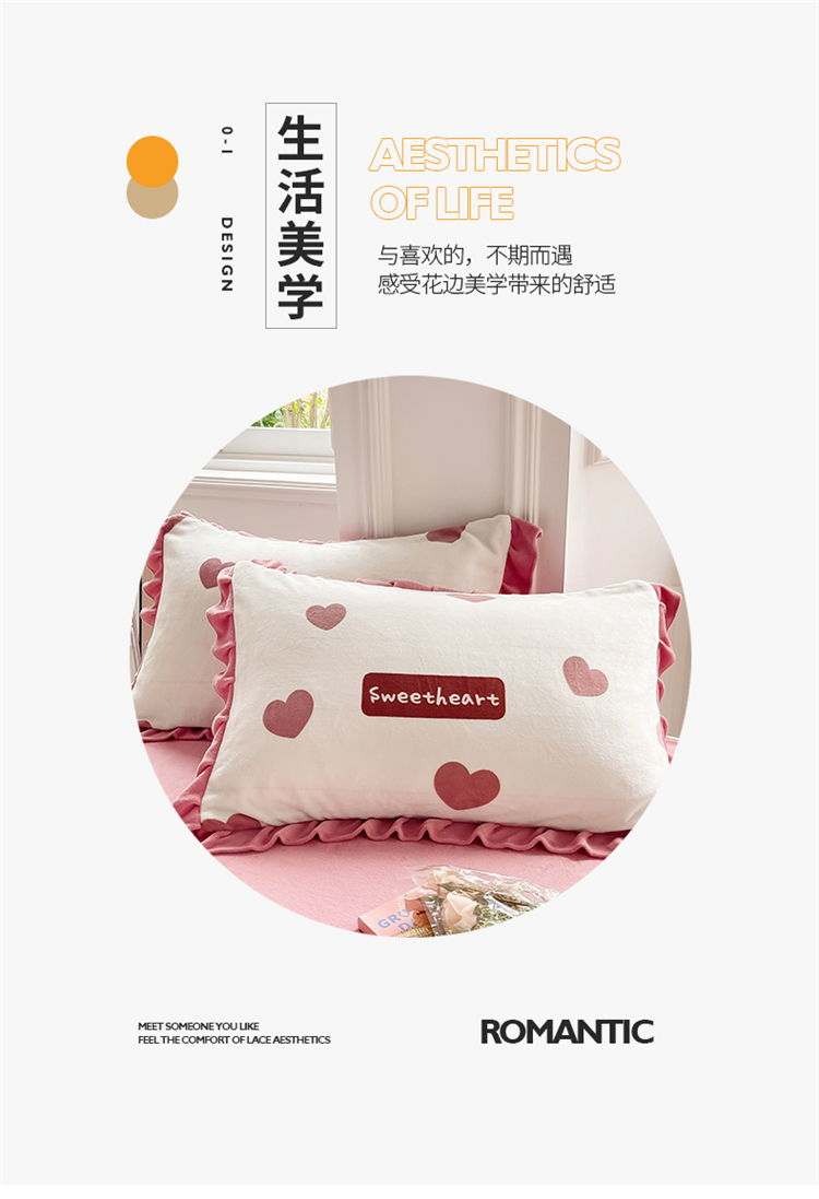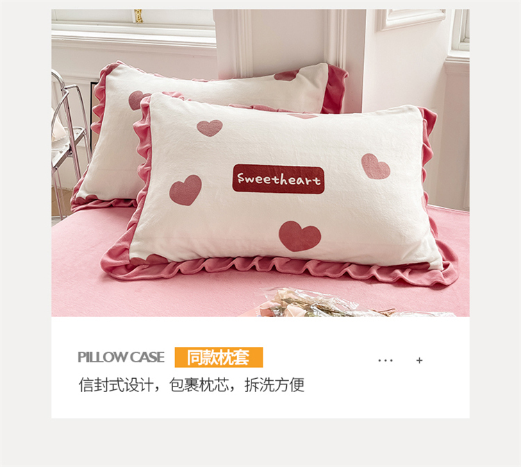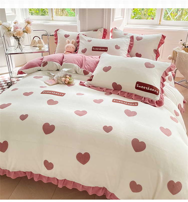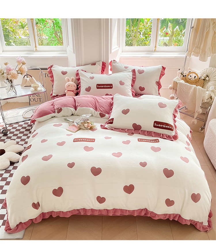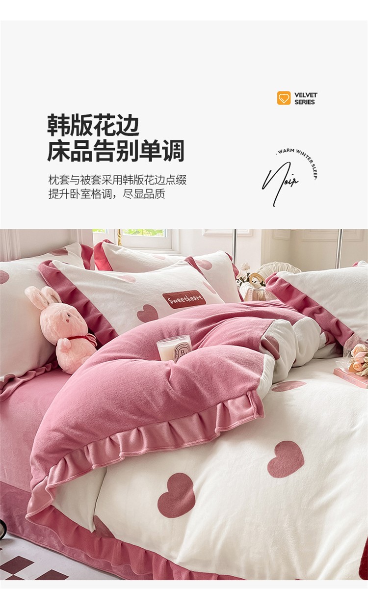 当前位置: 91家纺网 > 商品网购 > 床品套件 > 四件套 > 牛奶绒四件套 > 懒猫 2022新款韩版牛奶绒花边款四件套 甜蜜爱心
