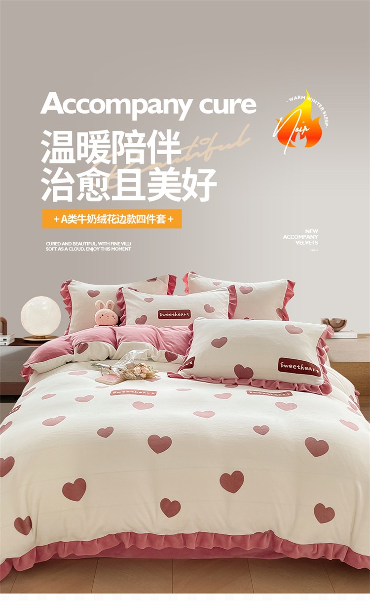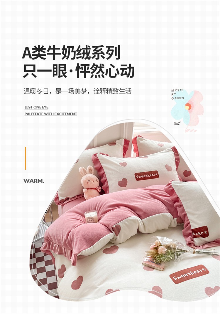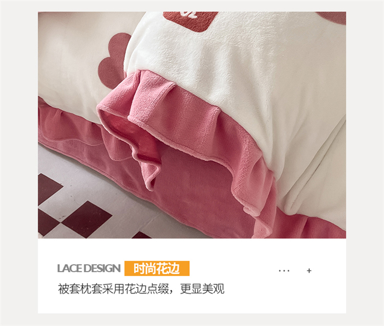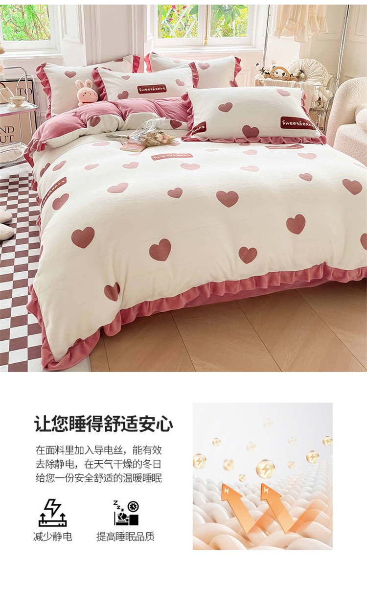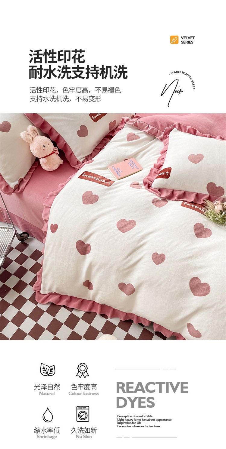 当前位置: 91家纺网 > 商品网购 > 床品套件 > 四件套 > 牛奶绒四件套 > 懒猫 2022新款韩版牛奶绒花边款四件套 甜蜜爱心