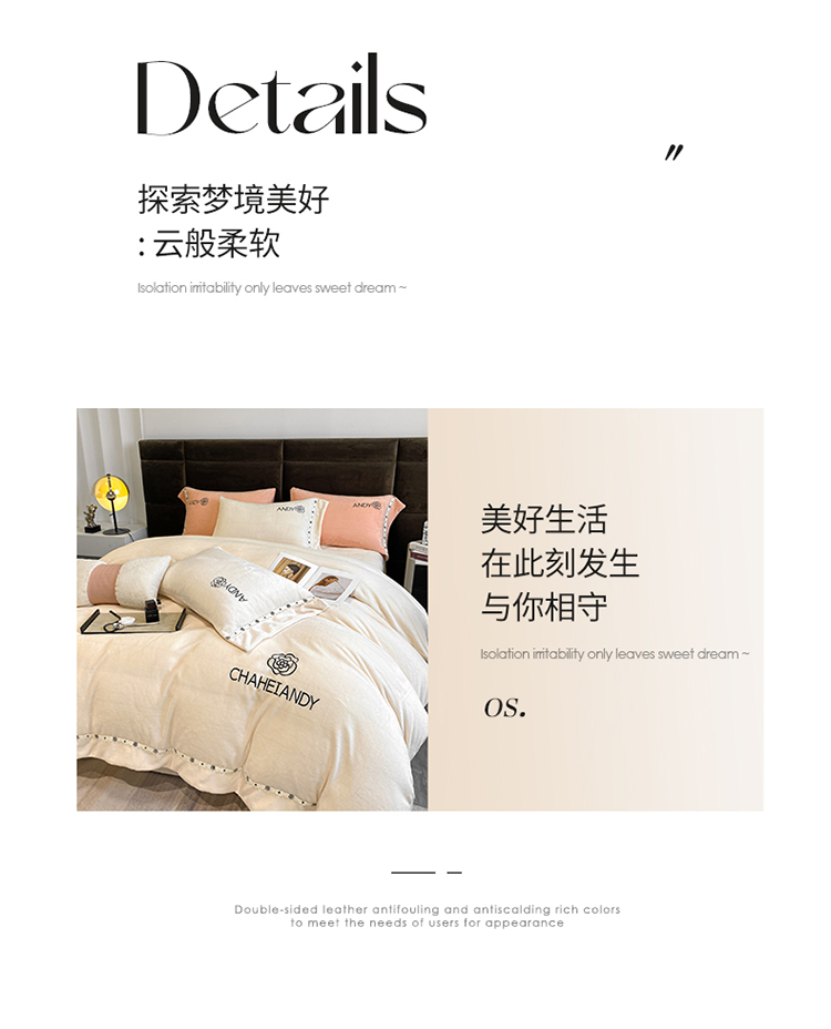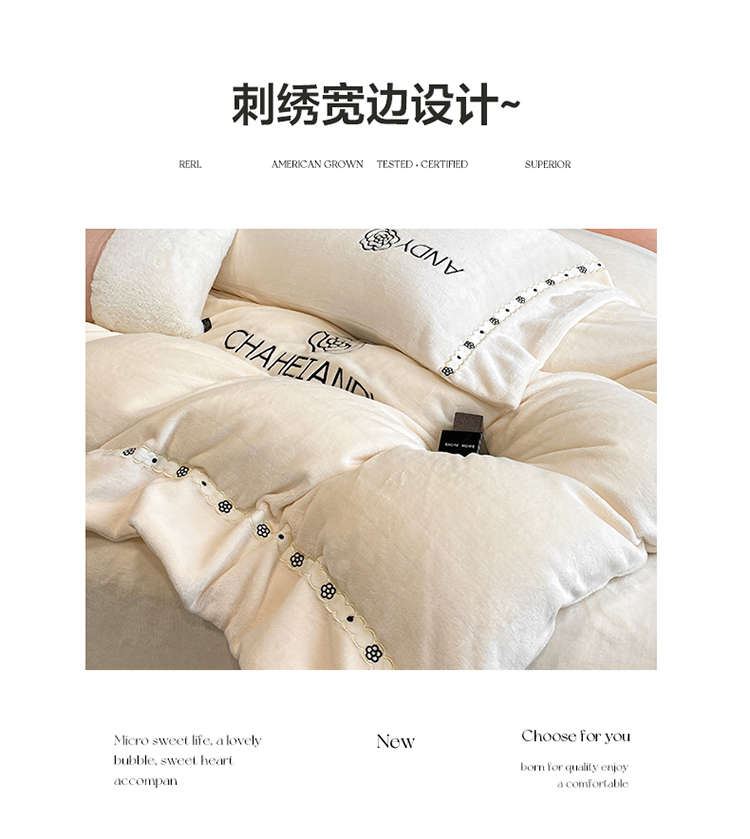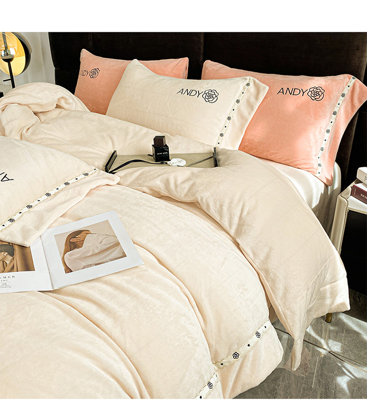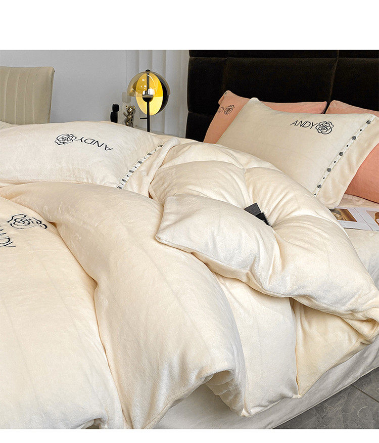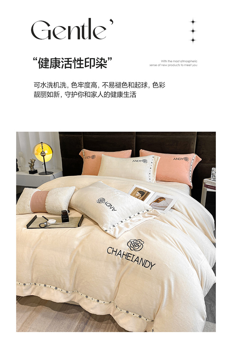 商品名称:米彩2023年高克重纯色牛奶绒刺绣四件套安迪系列 米月白