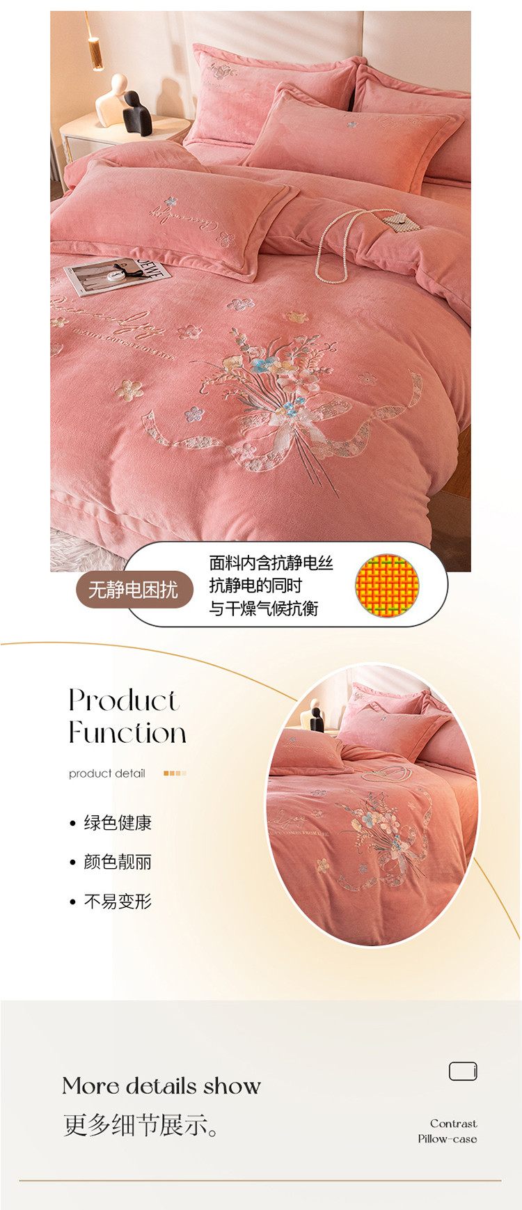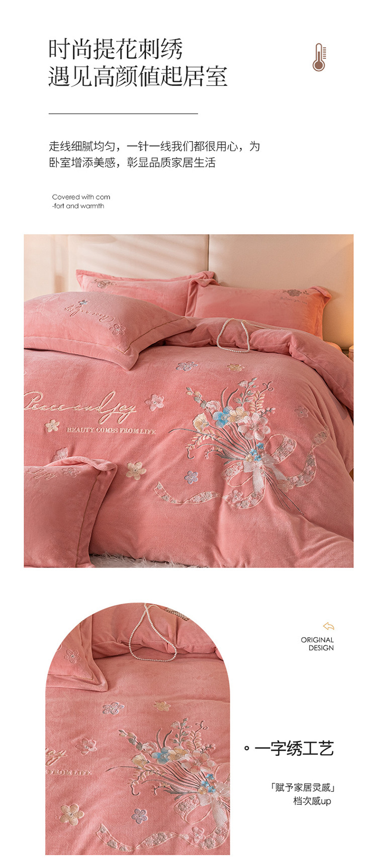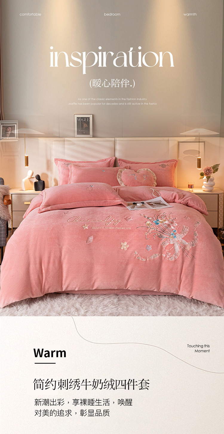 商品名称:宅家居 2023新款蒂娜系列加厚牛奶绒刺绣四件套 蒂娜-粉色