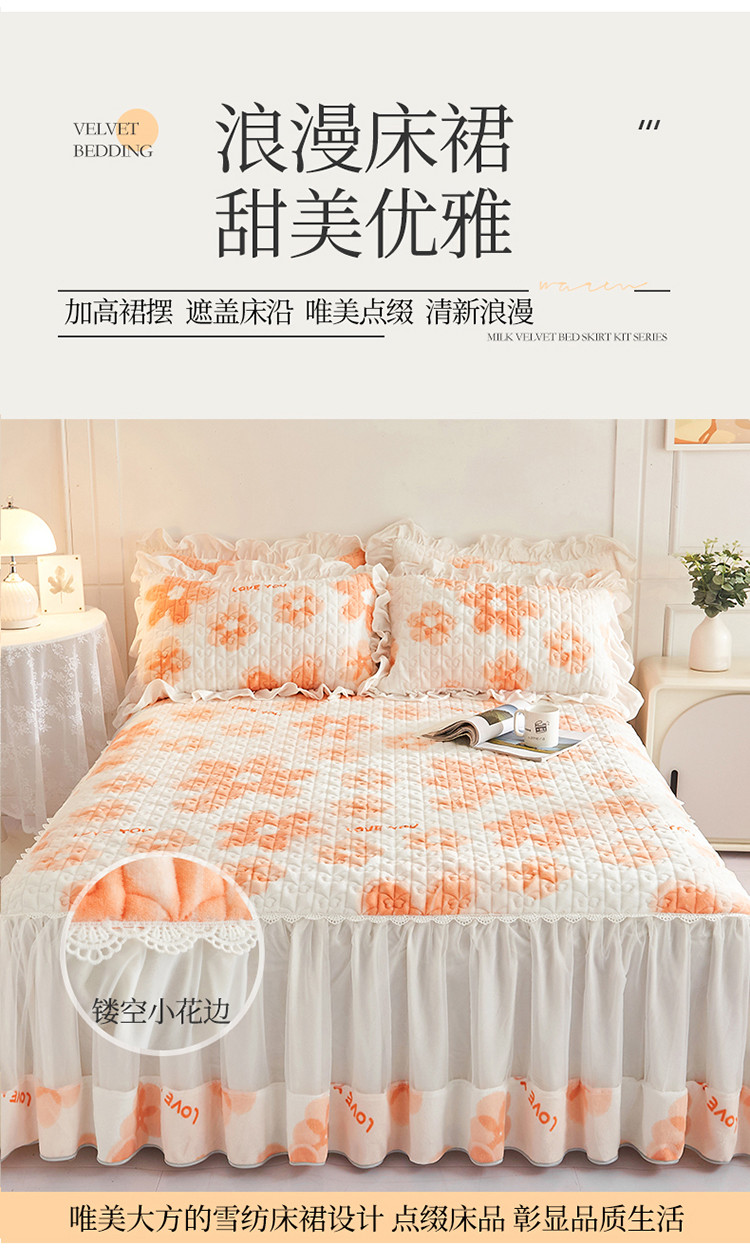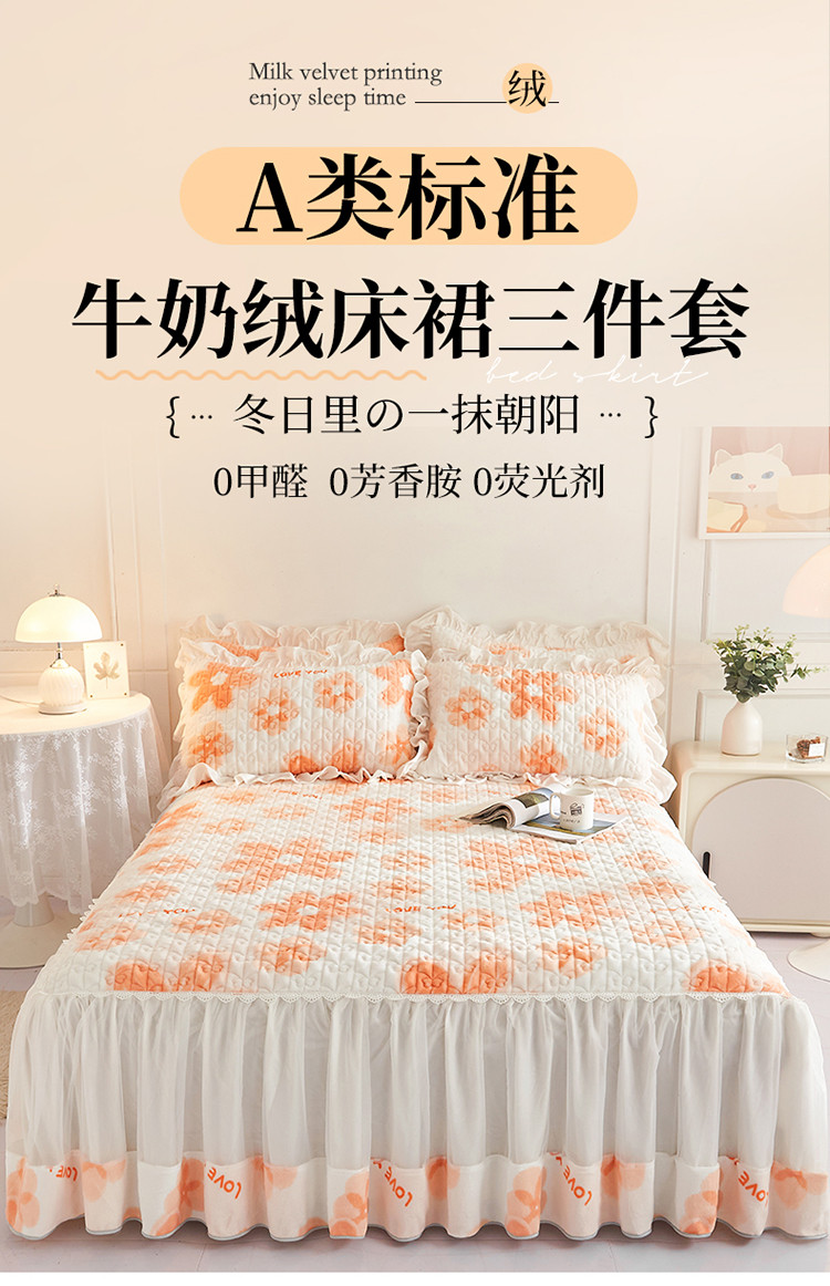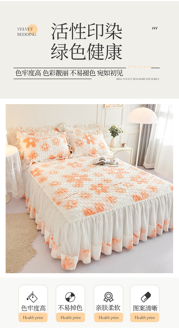 • 91家纺网 家纺一手货源 找家纺 宜凡 2022新款A类牛奶绒印花床裙三件套 陌颜花恋