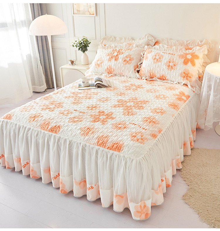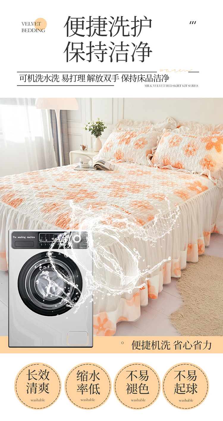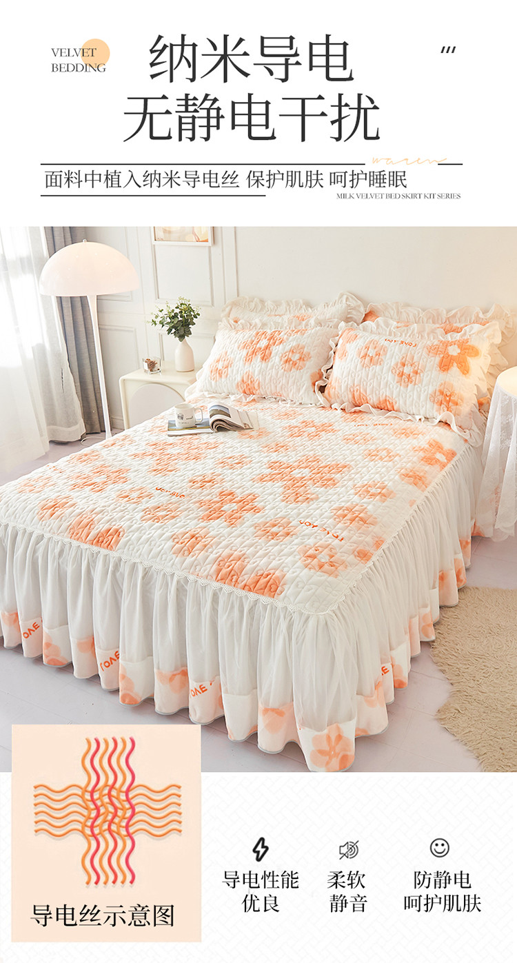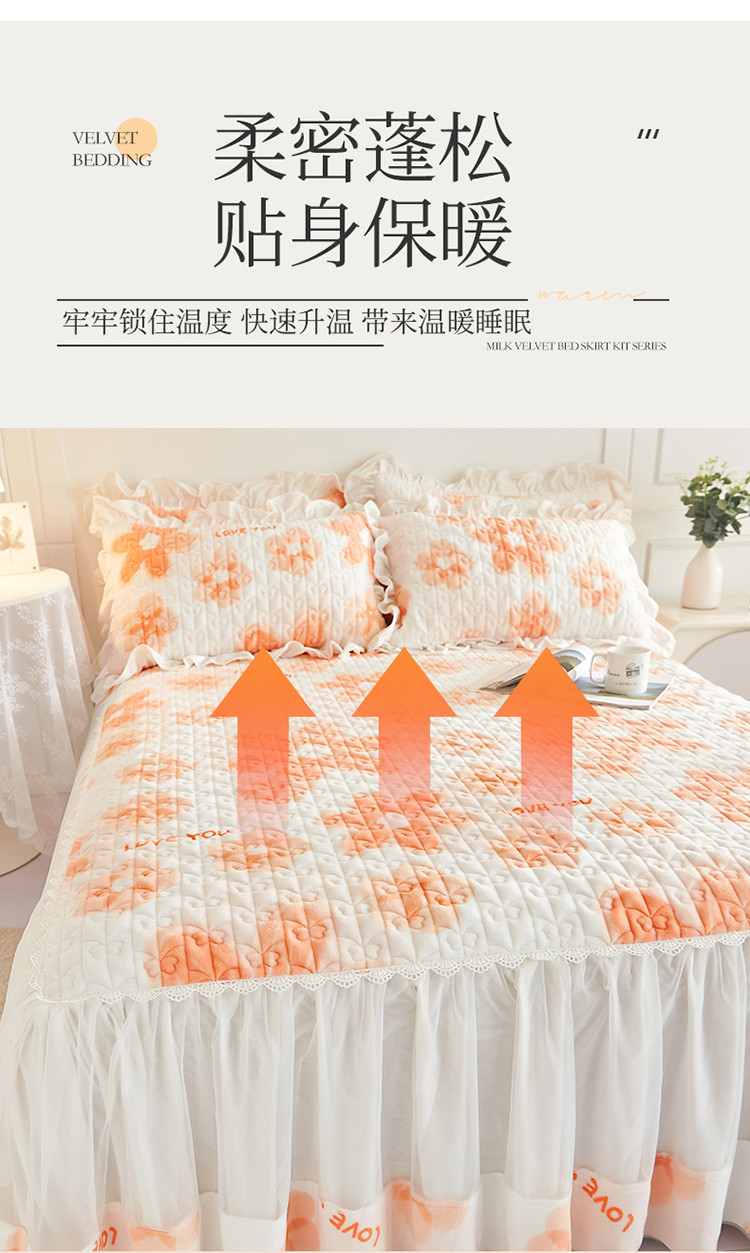 • 91家纺网 家纺一手货源 找家纺 宜凡 2022新款A类牛奶绒印花床裙三件套 陌颜花恋