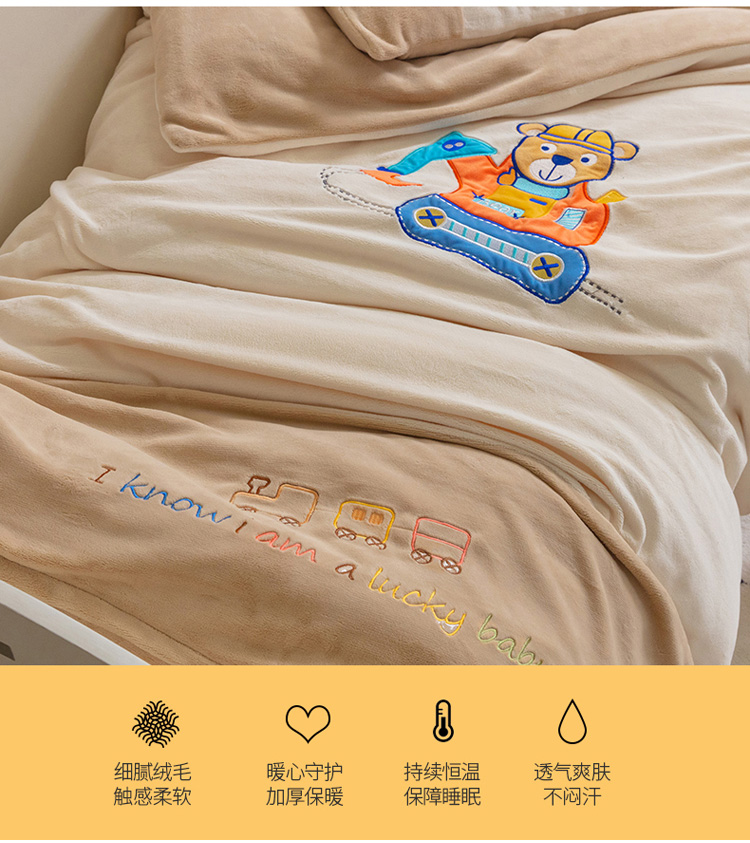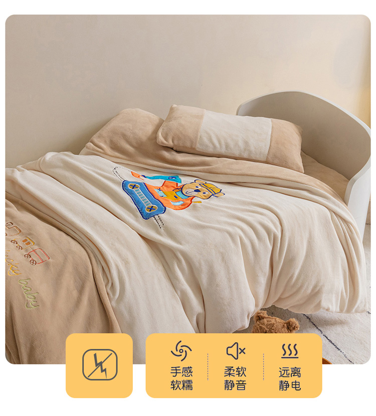 商品名称:喜多兔 2022新款全消光牛奶绒幼儿园三件套-小伙伴 米色快乐挖掘机