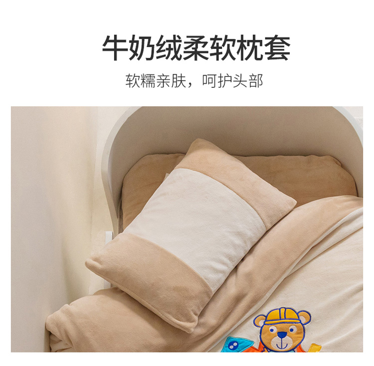喜多兔 2022新款全消光牛奶绒幼儿园三件套-小伙伴 米色快乐挖掘机