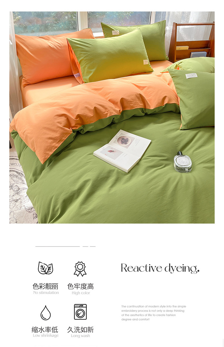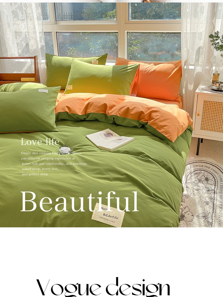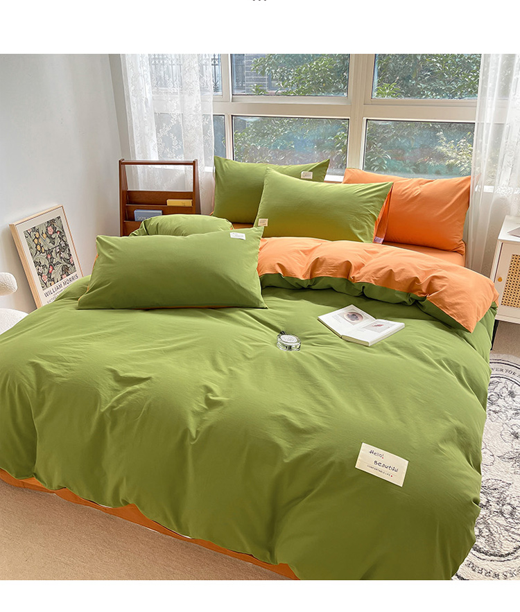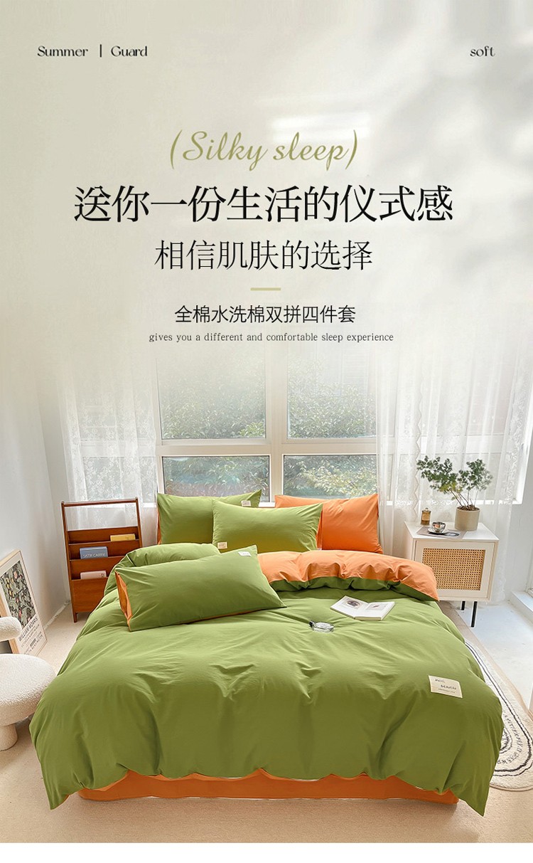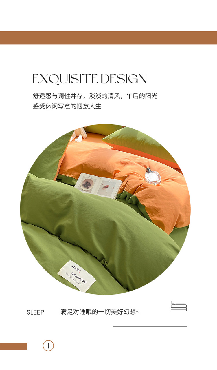 当前位置: 91家纺网 > 商品网购 > 床品套件 > 四件套 > 全棉普通四件套 > 寐居 2023新款双拼全棉水洗棉纯色四件套 军绿+焦糖